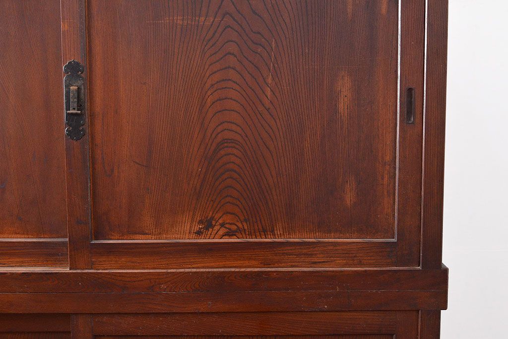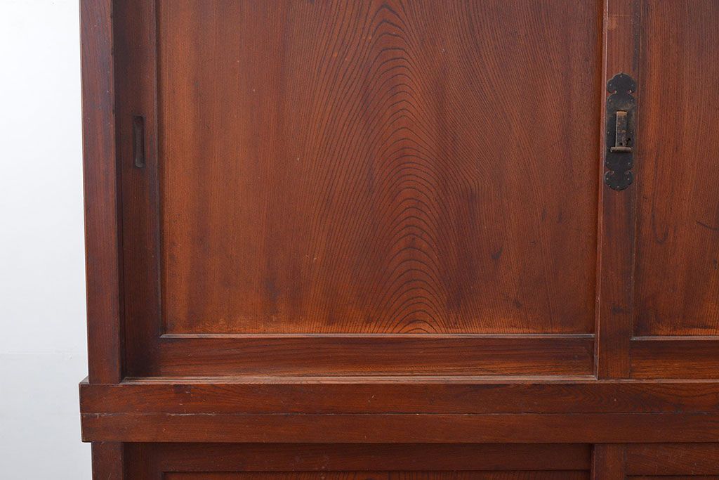 和箪笥> 水屋箪笥 > 和製アンティーク 前面ケヤキ材 重厚感のある佇まいが魅力的なシンプルなつくりの収納棚(水屋箪笥、収納箪笥、サイドボード)(R-040763)