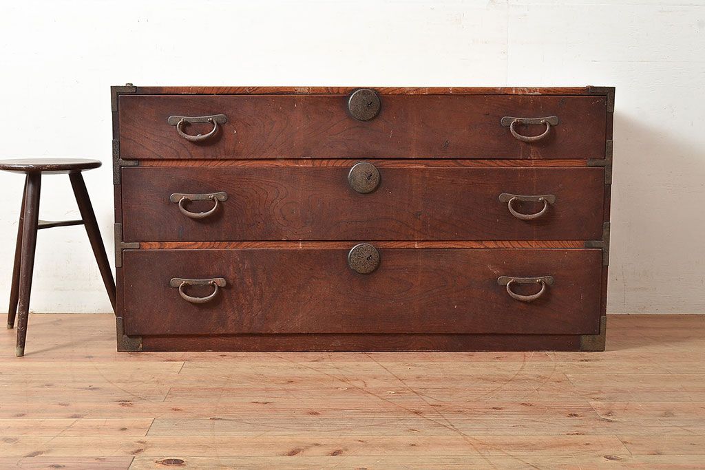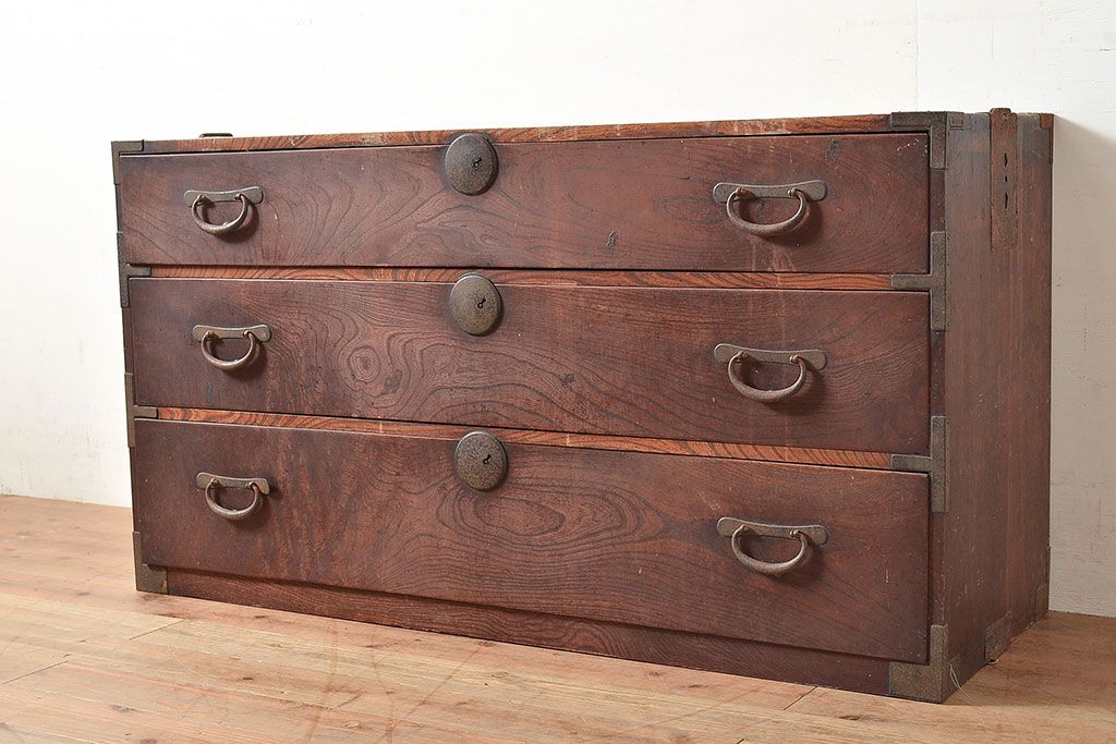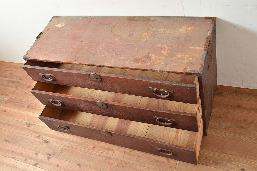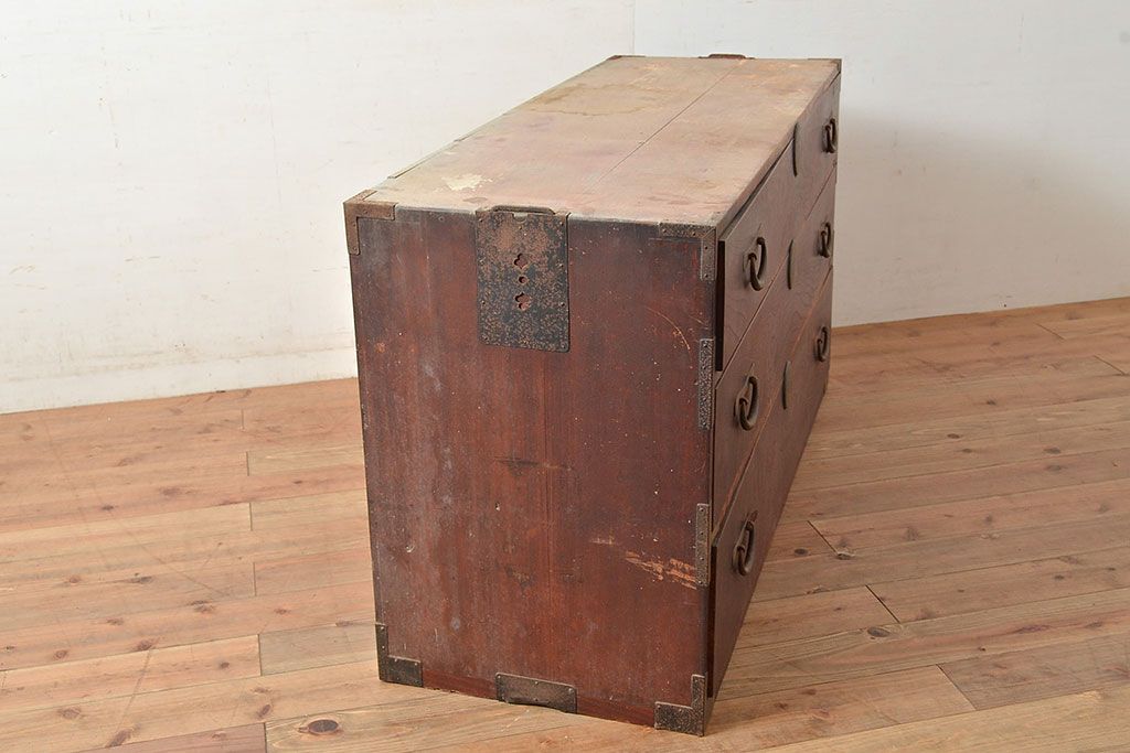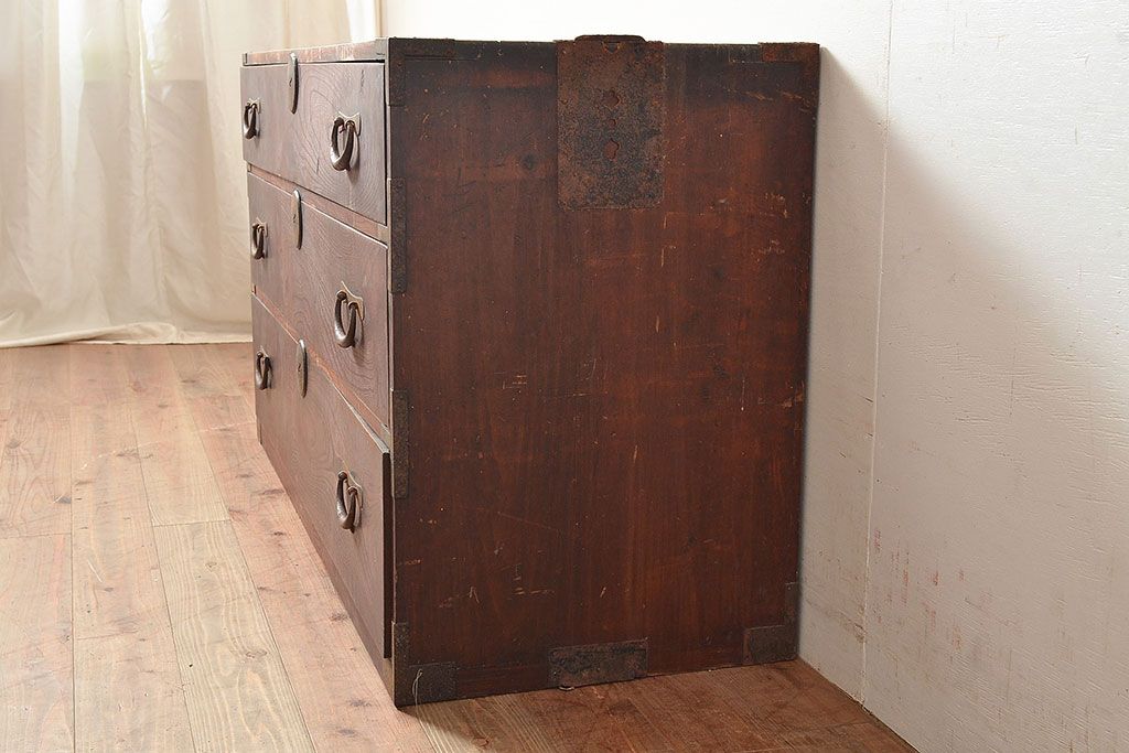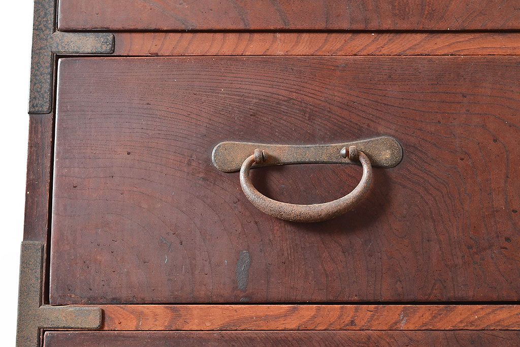 和製アンティーク ケヤキの木目が和の趣を演出する仙台箪笥(重ね箪笥、時代箪笥、衣装箪笥)(R-047602)