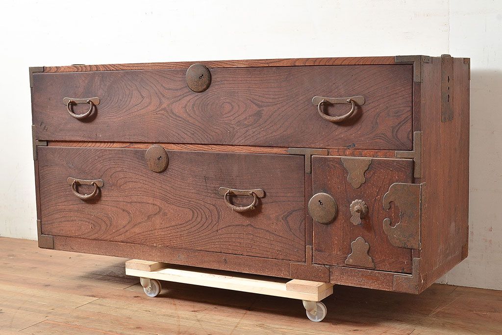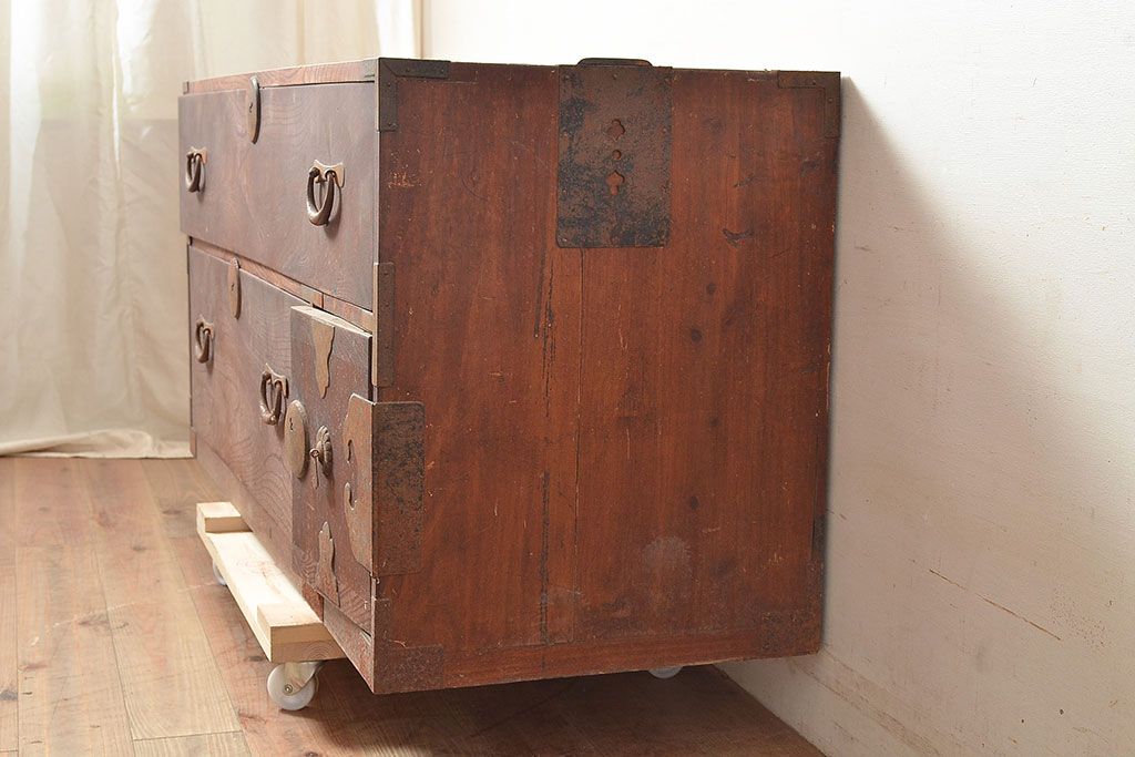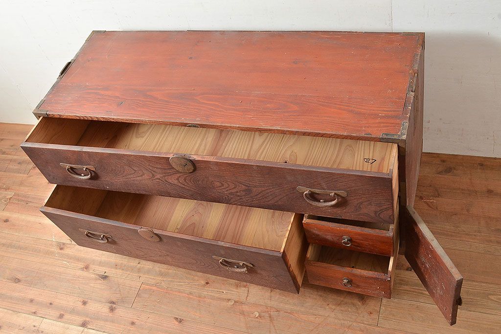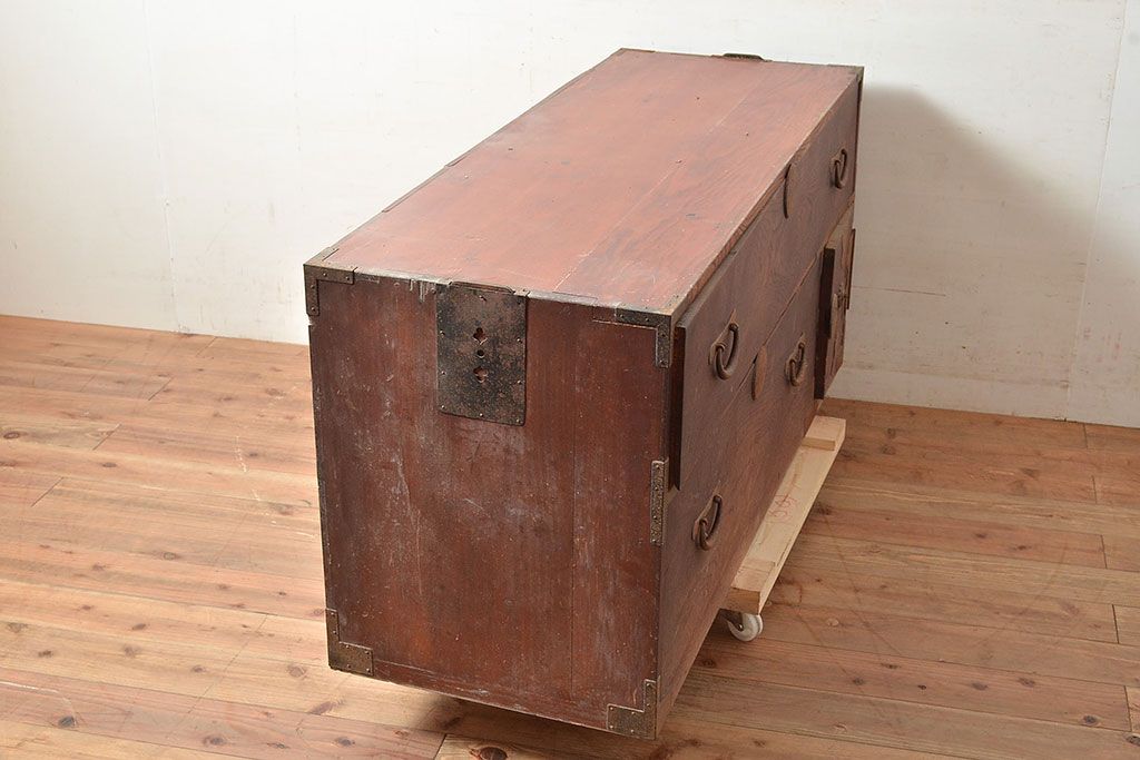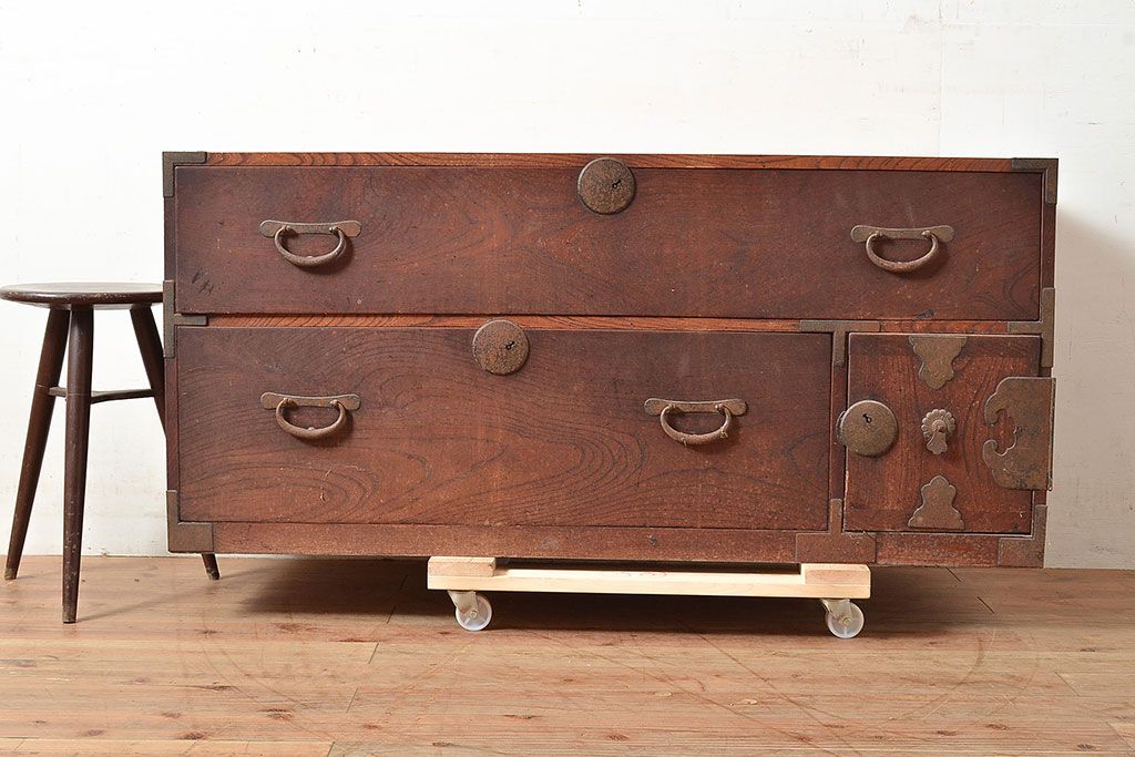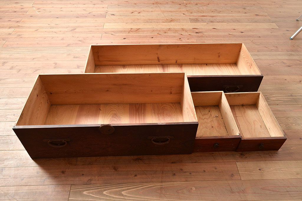 和製アンティーク ケヤキの木目が和の趣を演出する仙台箪笥(重ね箪笥、時代箪笥、衣装箪笥)(R-047603)