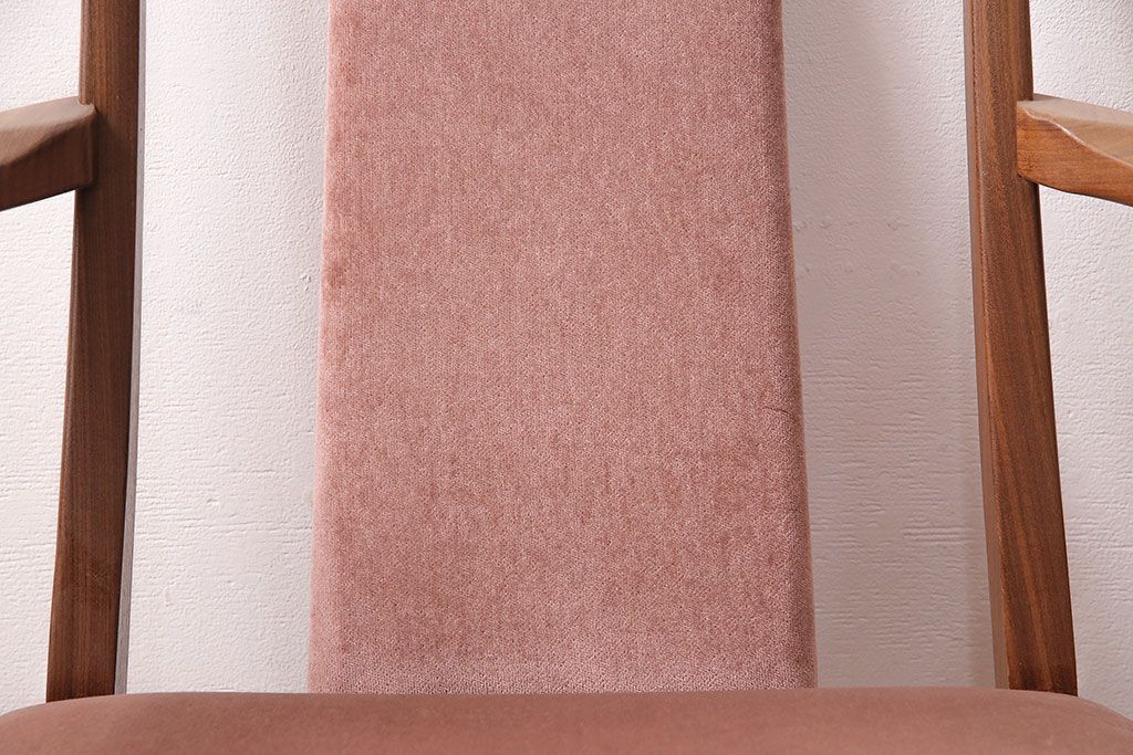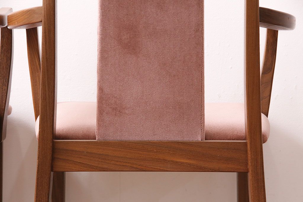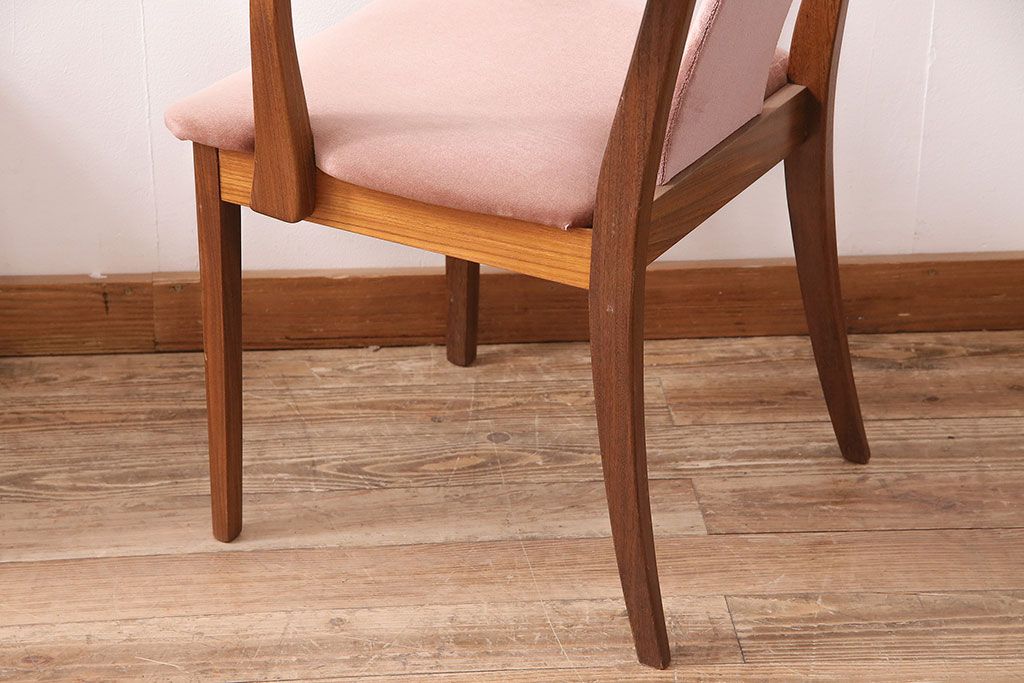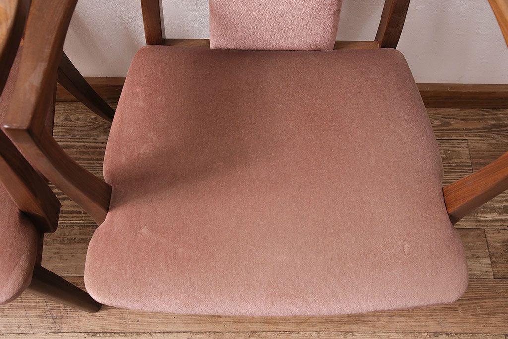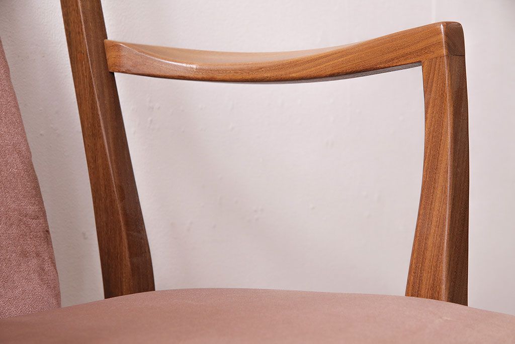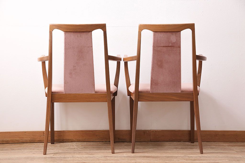 状態が気になる方には現状販売はおすすめできませんので、慎重なご検討をお願いいたします。イギリスビンテージ 人気のG-PLAN!背もたれにもファブリックが使われている、アーム付きのチェア2脚セット(ダイニングチェア、椅子、アームチェア、バラ売り可能)(R-047846)です。