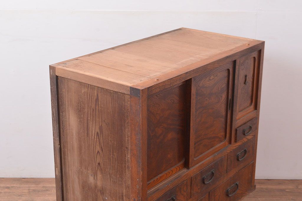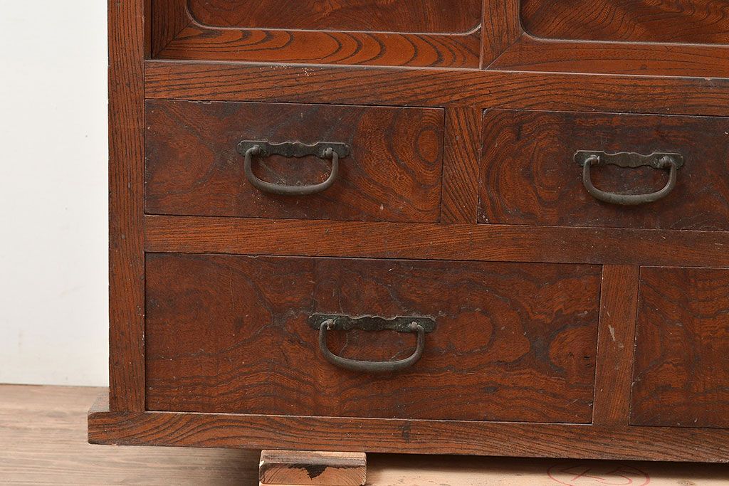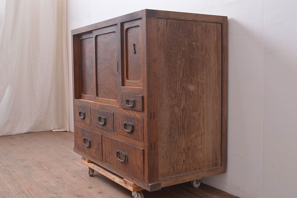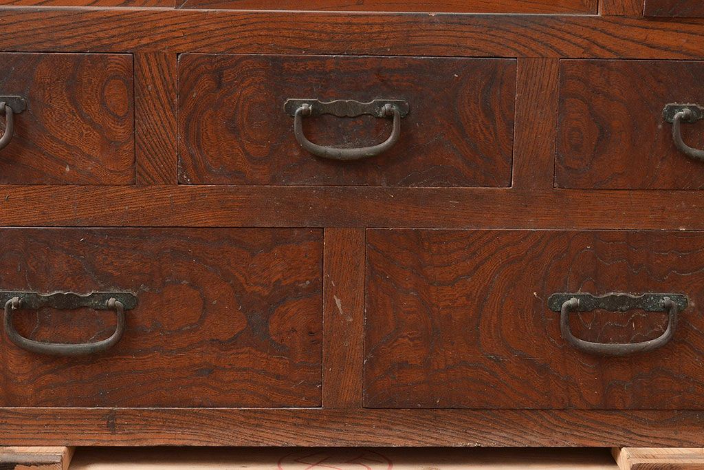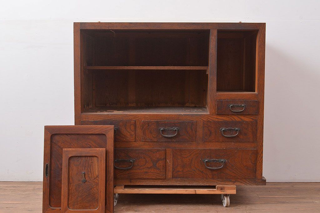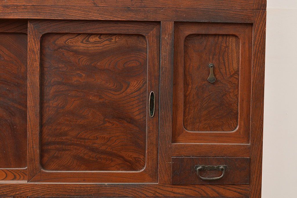和箪笥> 茶箪笥・茶棚 > 和製アンティーク ケヤキの木目が上質な空間づくりを叶える関東水屋箪笥(茶箪笥、収納棚、キャビネット)(R-047226)