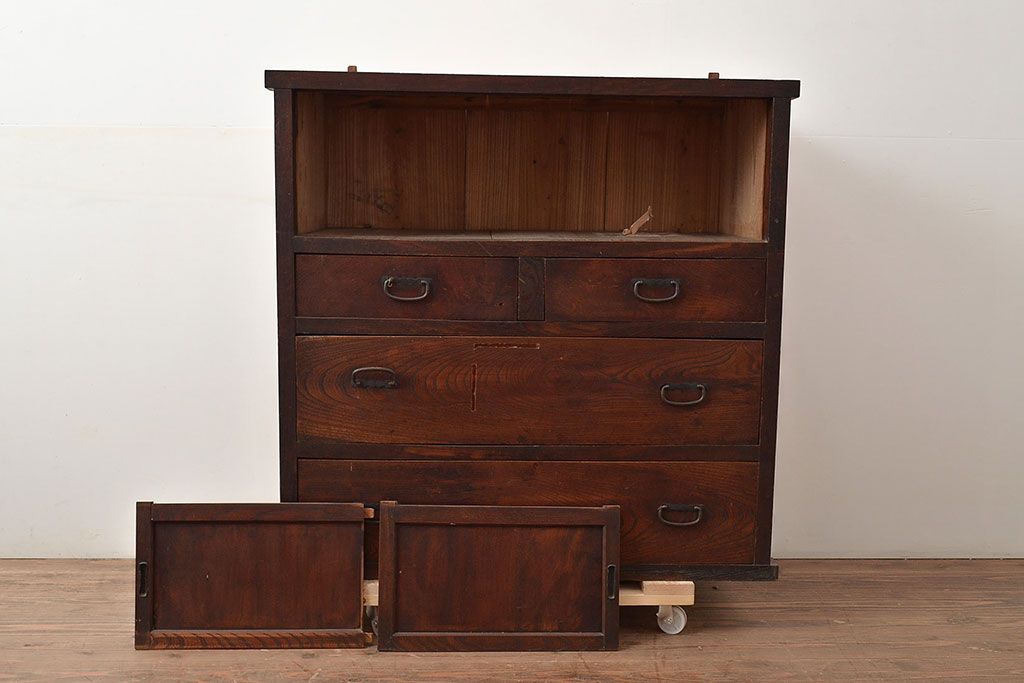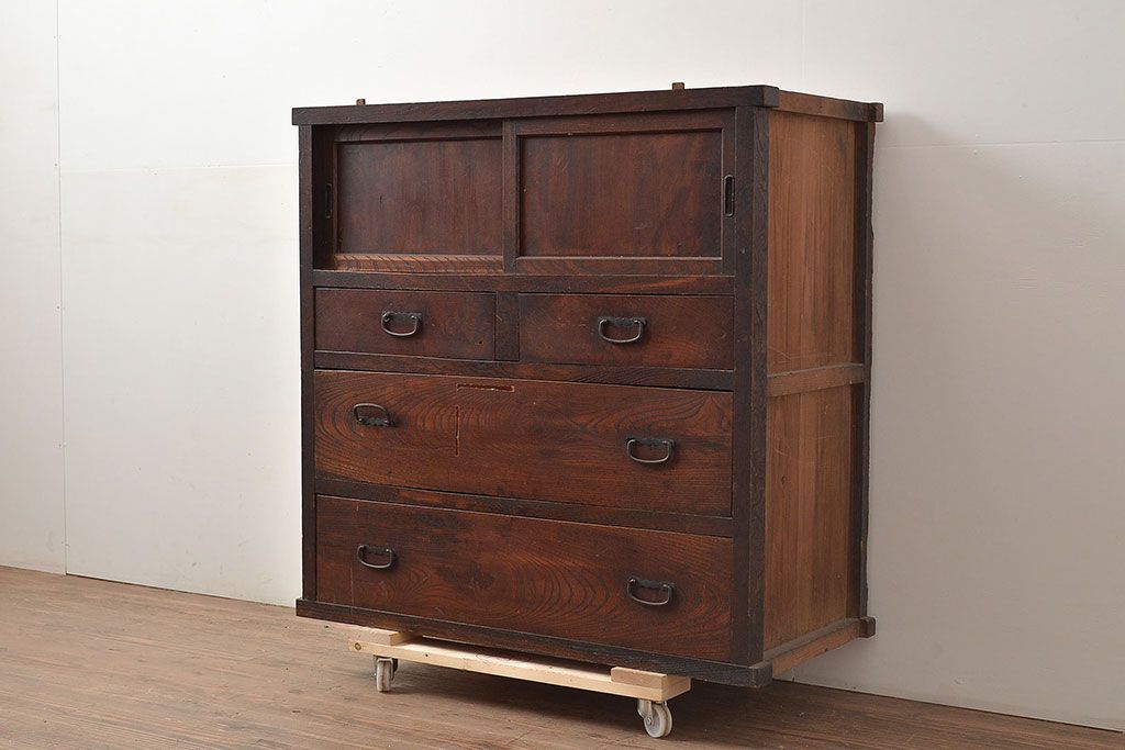 和製アンティーク 上質な和の空間づくりににおすすめ!前面ケヤキ材製の水屋箪笥(収納箪笥)(R-047223)