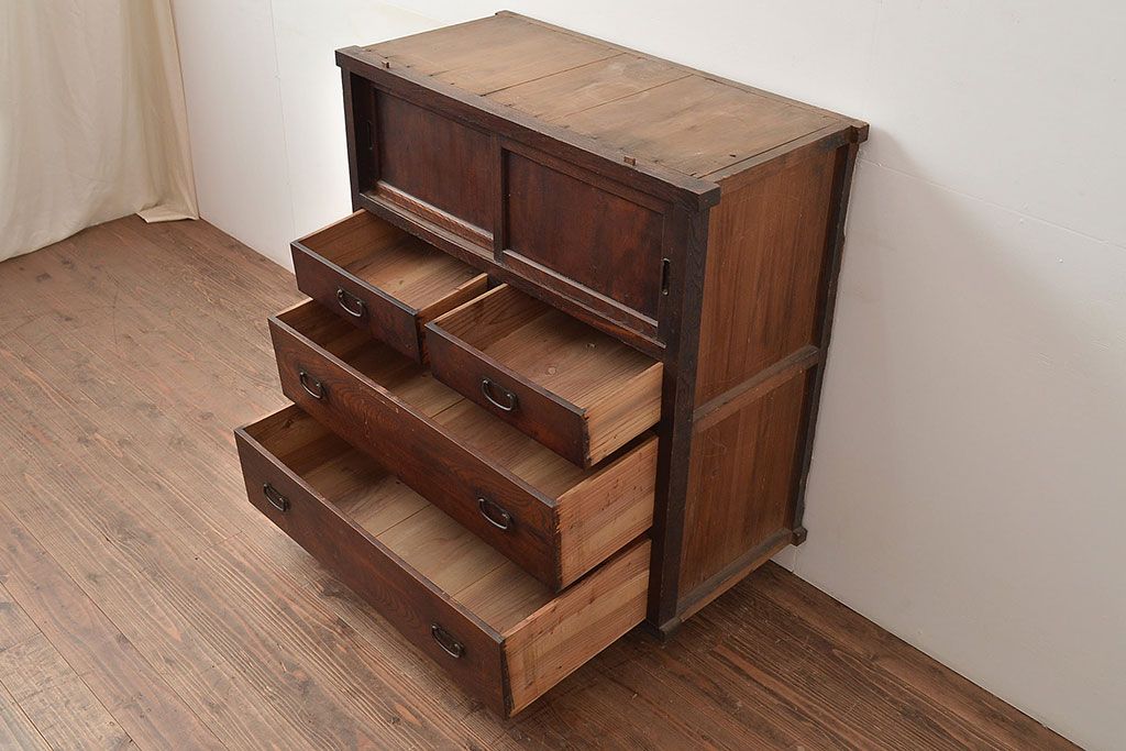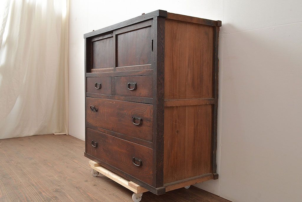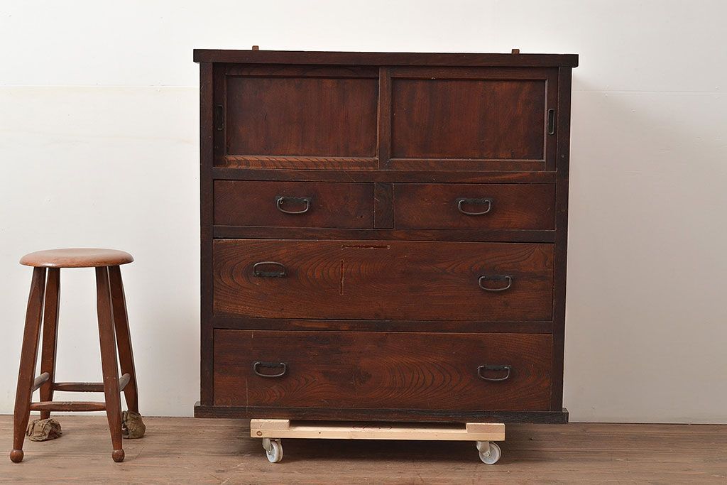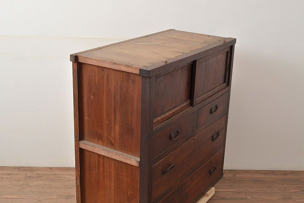 和箪笥> 水屋箪笥 > 和製アンティーク 上質な和の空間づくりににおすすめ!前面ケヤキ材製の水屋箪笥(収納箪笥)(R-047223)