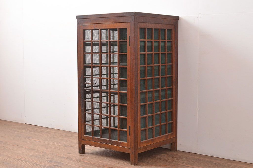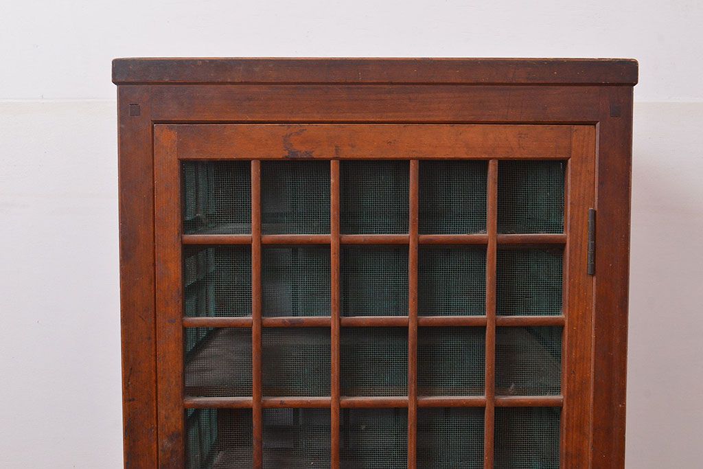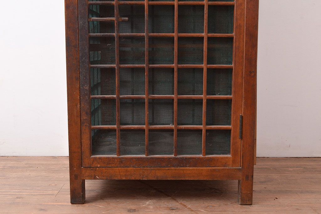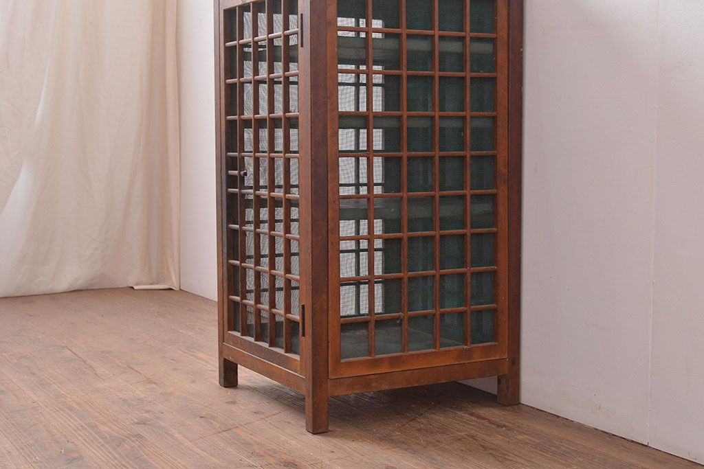 和製アンティーク シンプルな格子デザインが素敵な蠅帳収納棚(はえ帳、はい帳、戸棚、キャビネット)(R-047227)