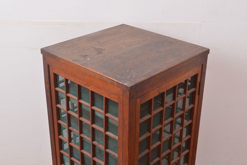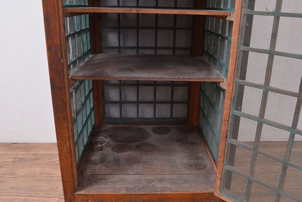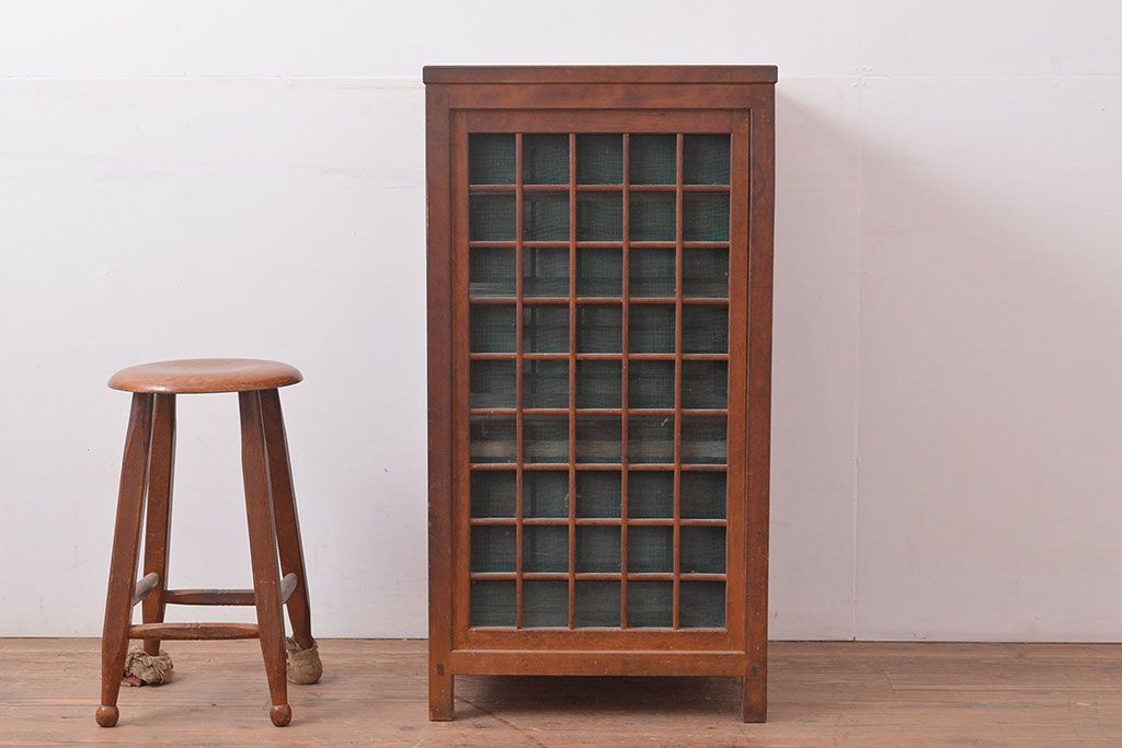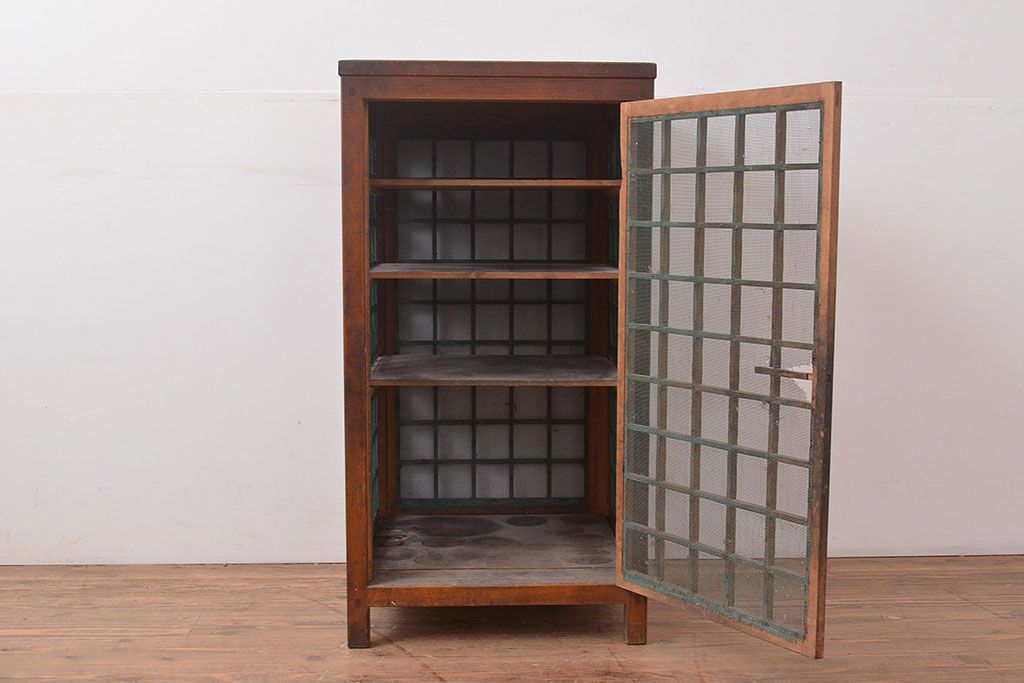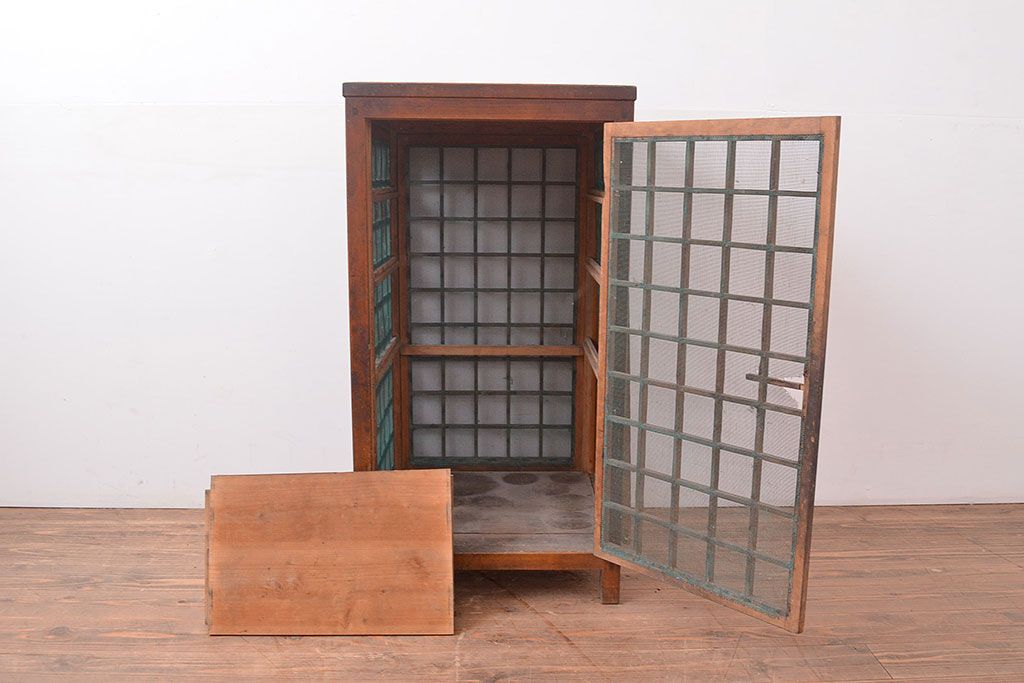 和製アンティーク シンプルな格子デザインが素敵な蠅帳収納棚(はえ帳、はい帳、戸棚、キャビネット)(R-047227)