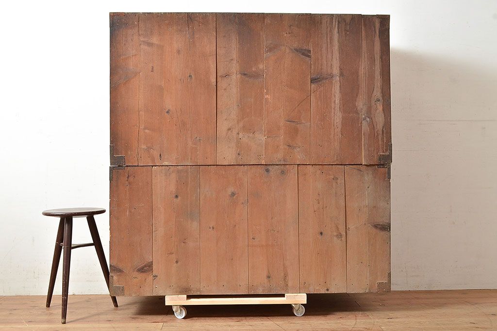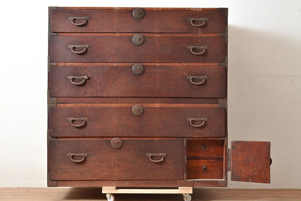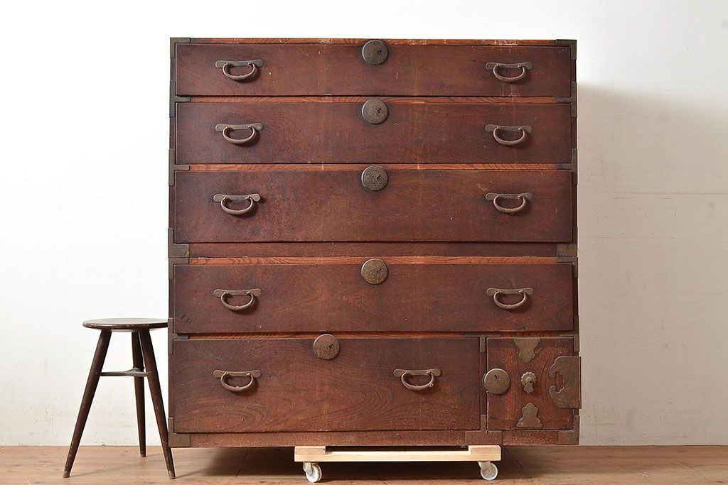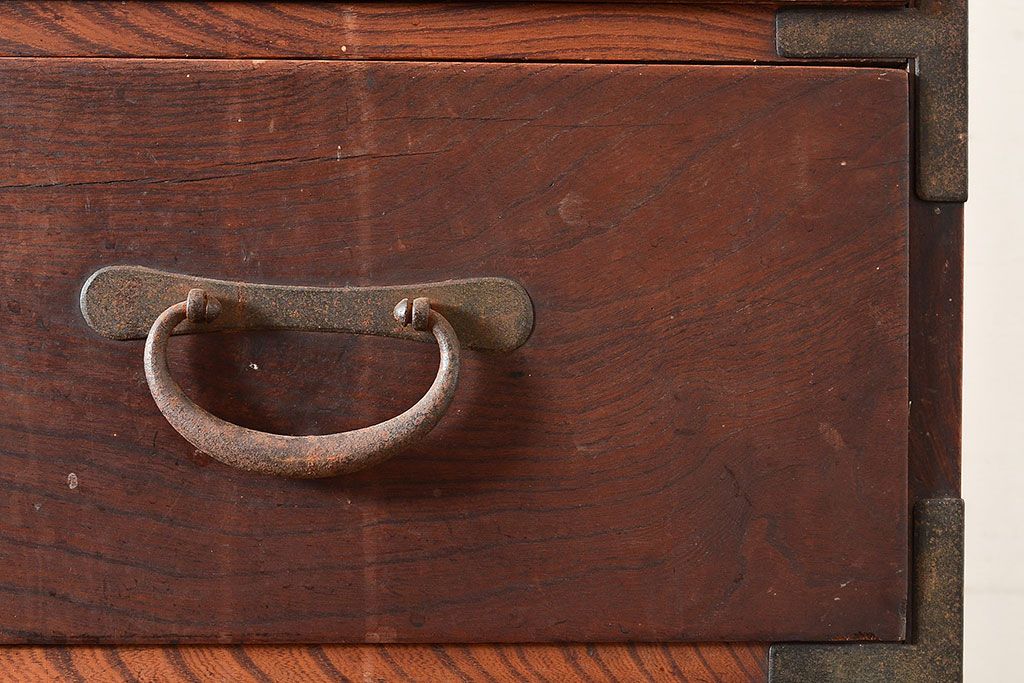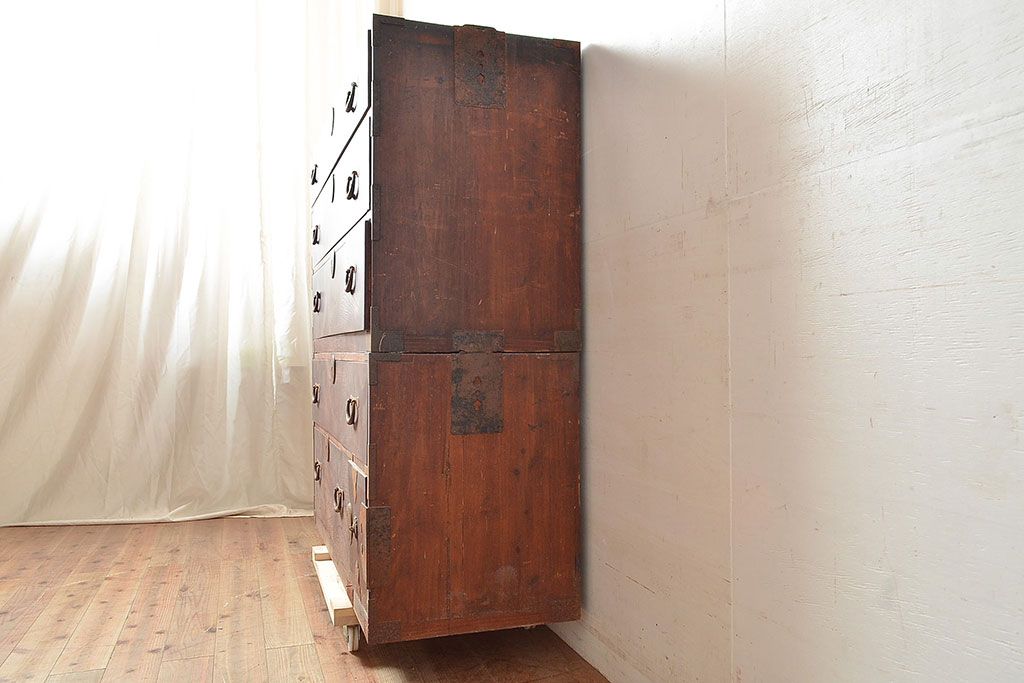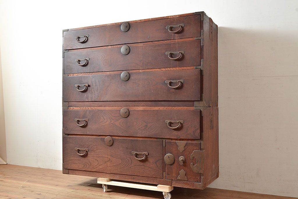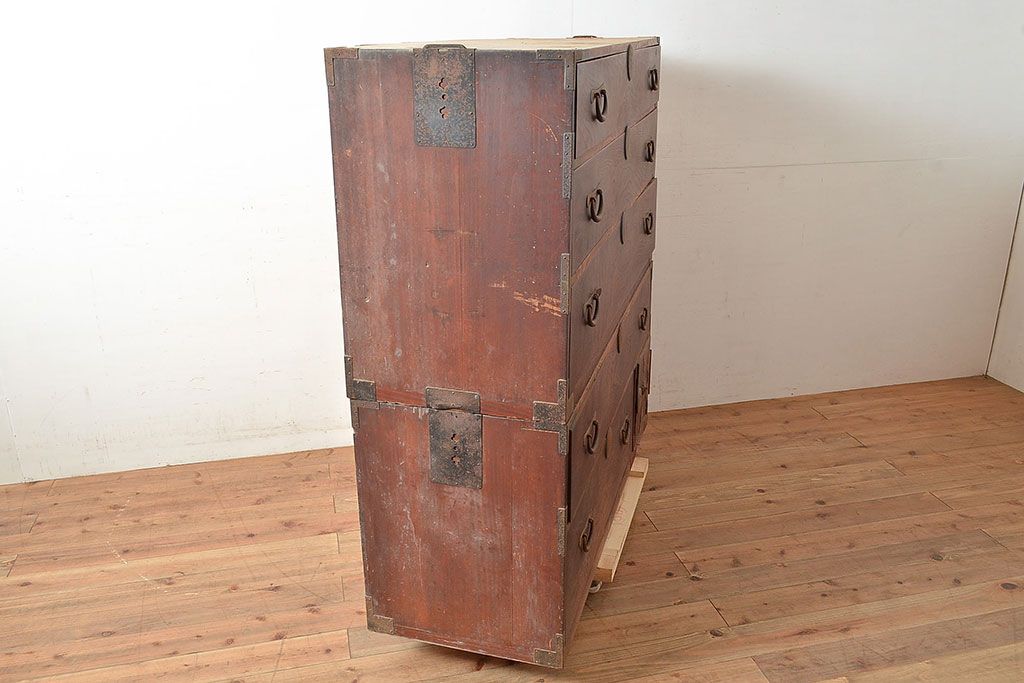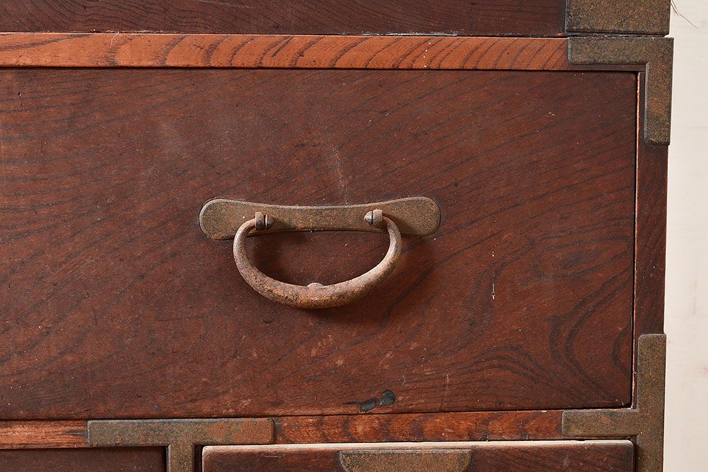 和箪笥> 衣装箪笥 > 和製アンティーク ケヤキの木目が和の趣を演出する仙台箪笥(重ね箪笥、時代箪笥、衣装箪笥)(R-047601)