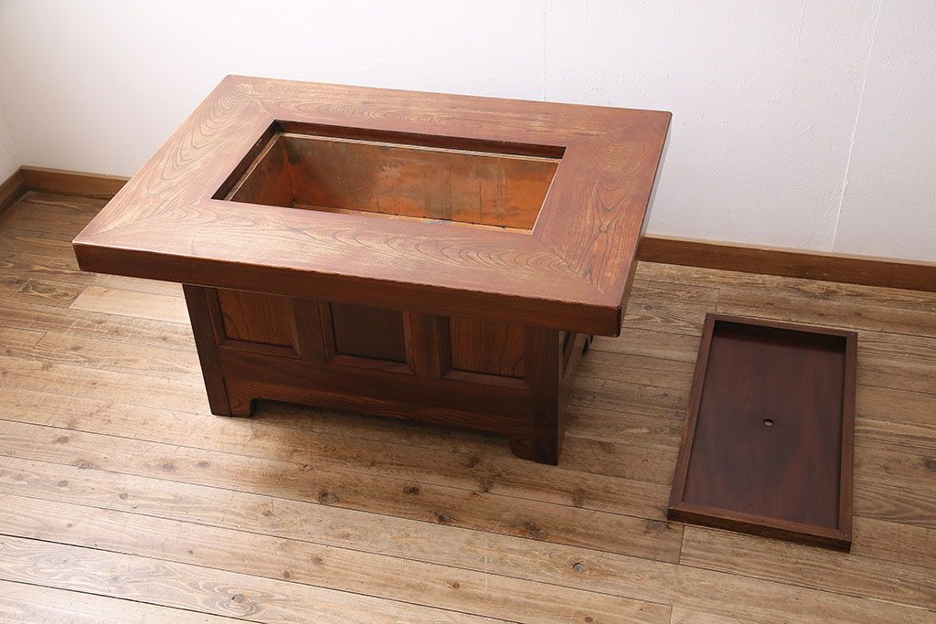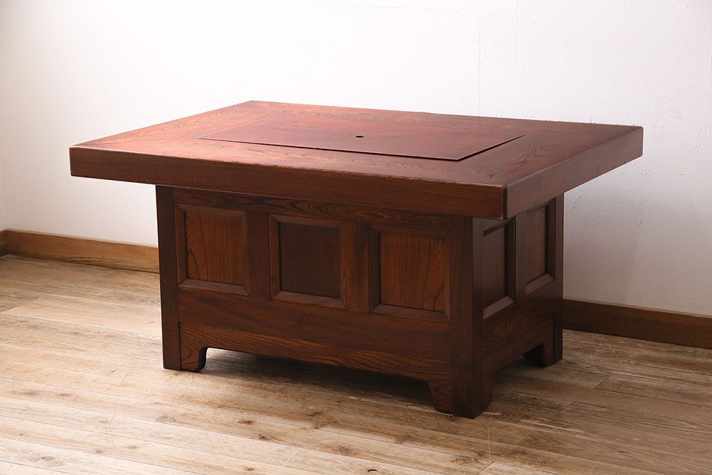 民芸家具 > 中古 重厚感のある佇まいでお部屋の主役にもなる松本民芸家具のA型洋炉卓(木製火鉢、囲炉裏、テーブル)(定価約91万円)(R-047286)