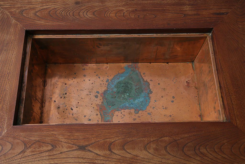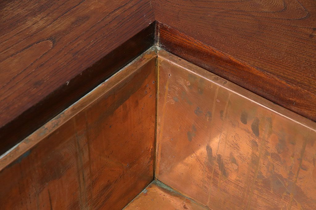 火鉢> 木製火鉢 > 中古 重厚感のある佇まいでお部屋の主役にもなる松本民芸家具のA型洋炉卓(木製火鉢、囲炉裏、テーブル)(定価約91万円)(R-047286)