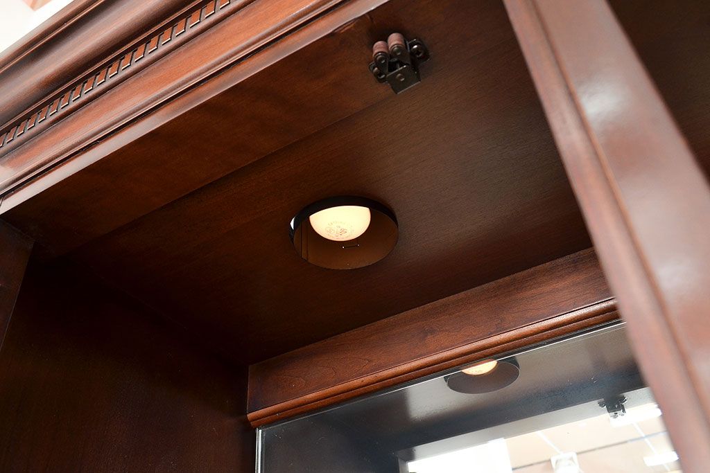 ラフジュ工房> ガラスケース・ショーケース > 中古 DREXEL HERITAGE(ドレクセルヘリテイジ) LARRY W. KIDDY コレクションケースにおすすめ!高級感を演出する照明付きキャビネット(キュリオケース、飾り棚)(R-047305)