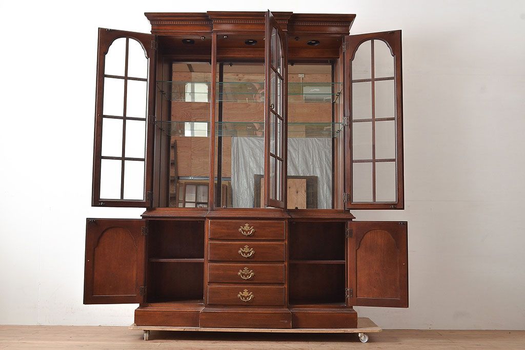 中古 DREXEL HERITAGE(ドレクセルヘリテイジ) LARRY W. KIDDY コレクションケースにおすすめ!高級感を演出する照明付きキャビネット(キュリオケース、飾り棚)(R-047305)