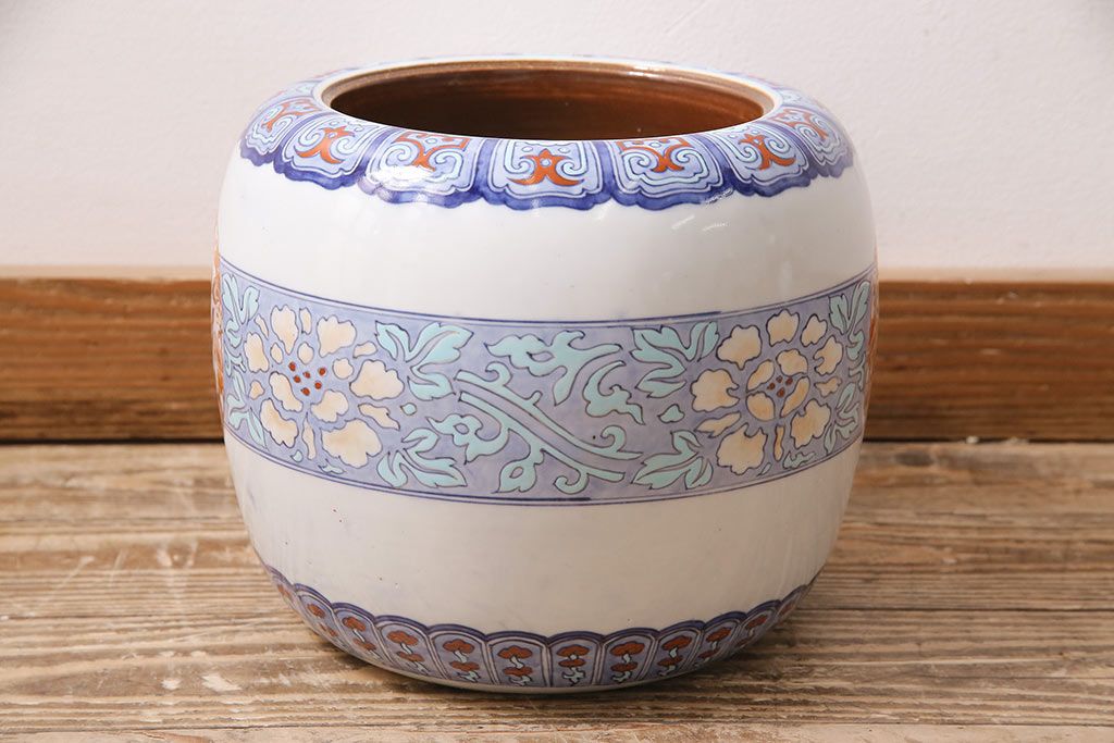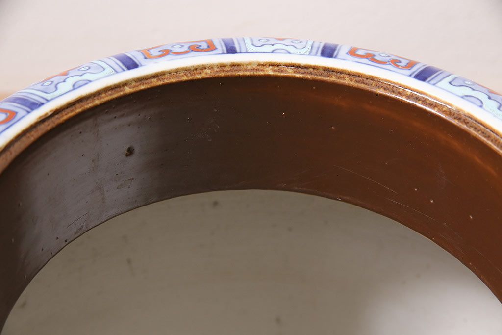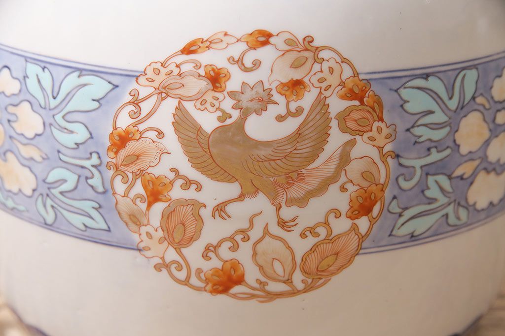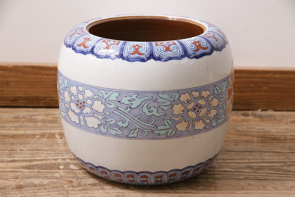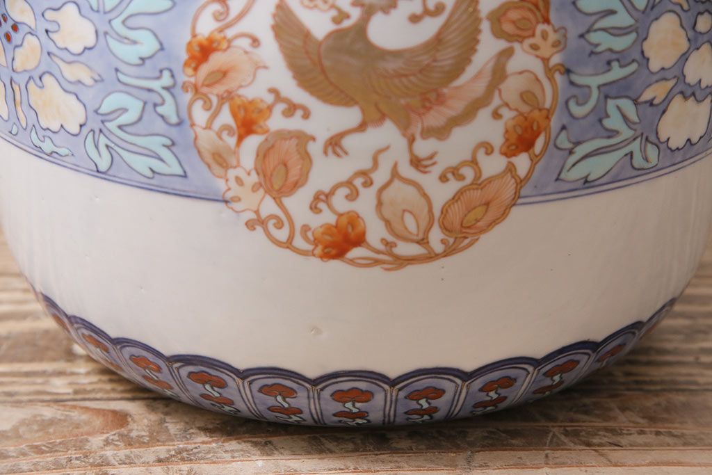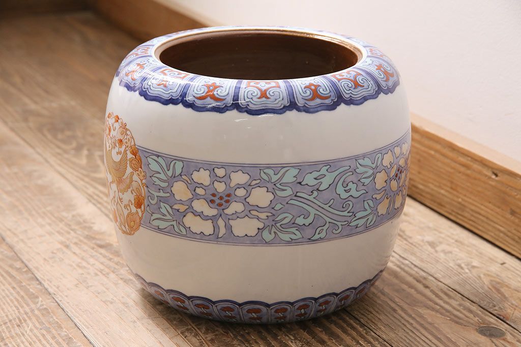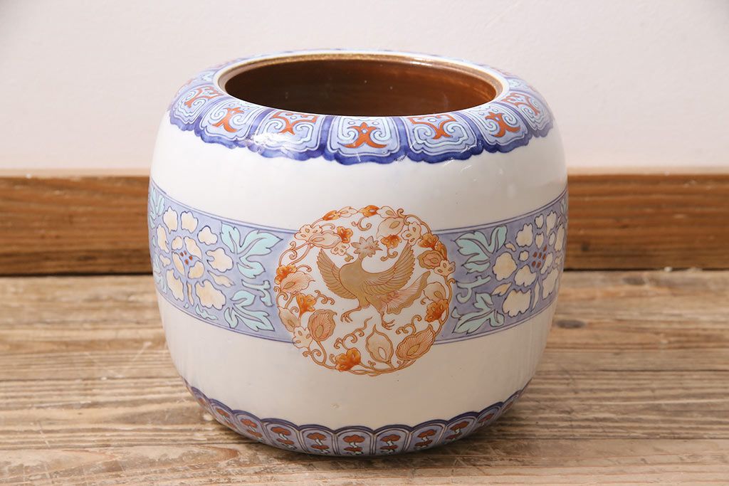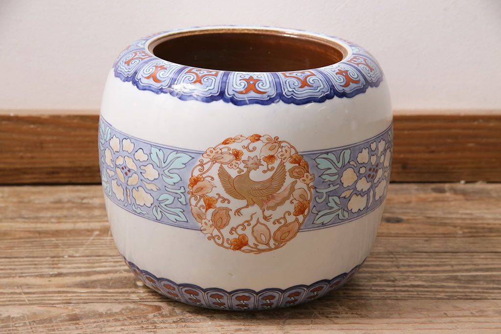 アンティーク雑貨 大正昭和初期 鳳凰・花の図 空間を彩る瀬戸火鉢(鉢カバー)(R-046976)