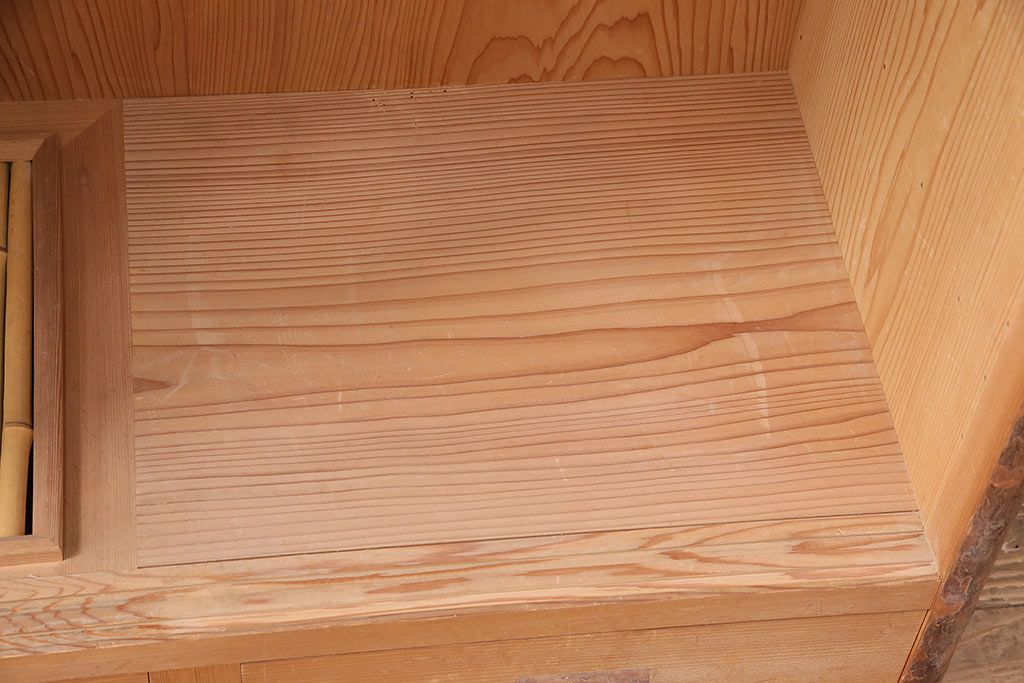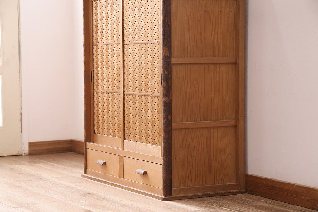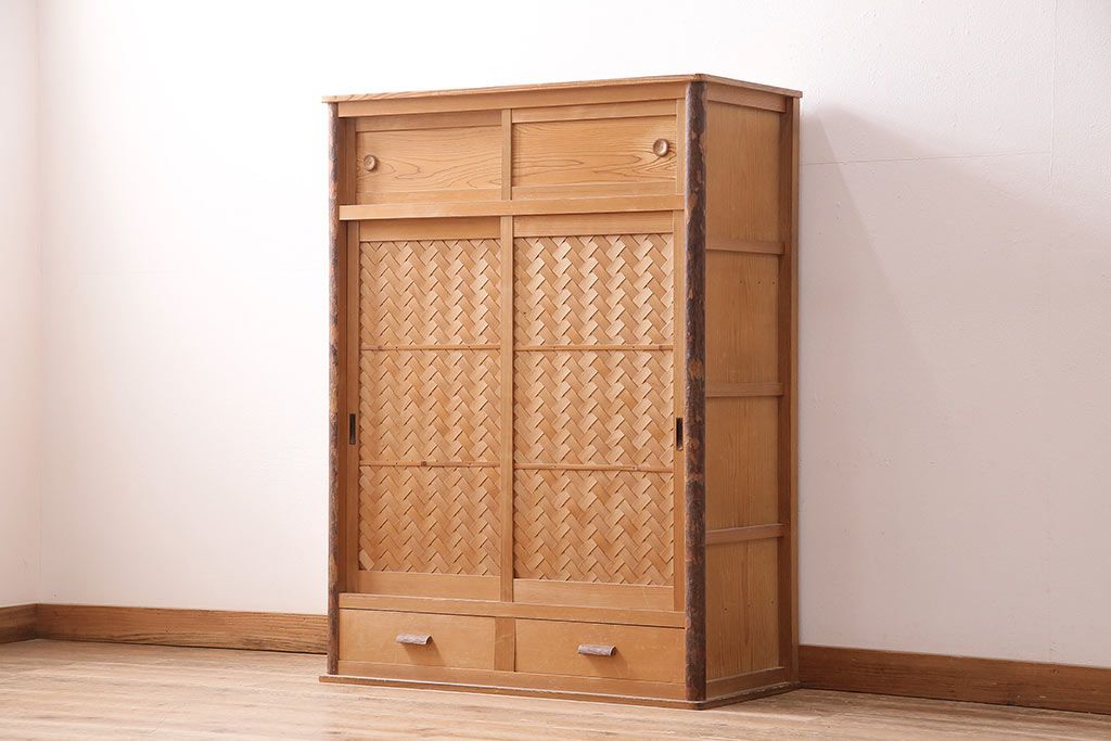 和箪笥 > 中古 民芸家具 杉材・桜皮 網代引戸が目を引く、手の込んだ造りが魅力の置き水屋(置水屋、茶水屋、茶道具、戸棚)(R-047931)