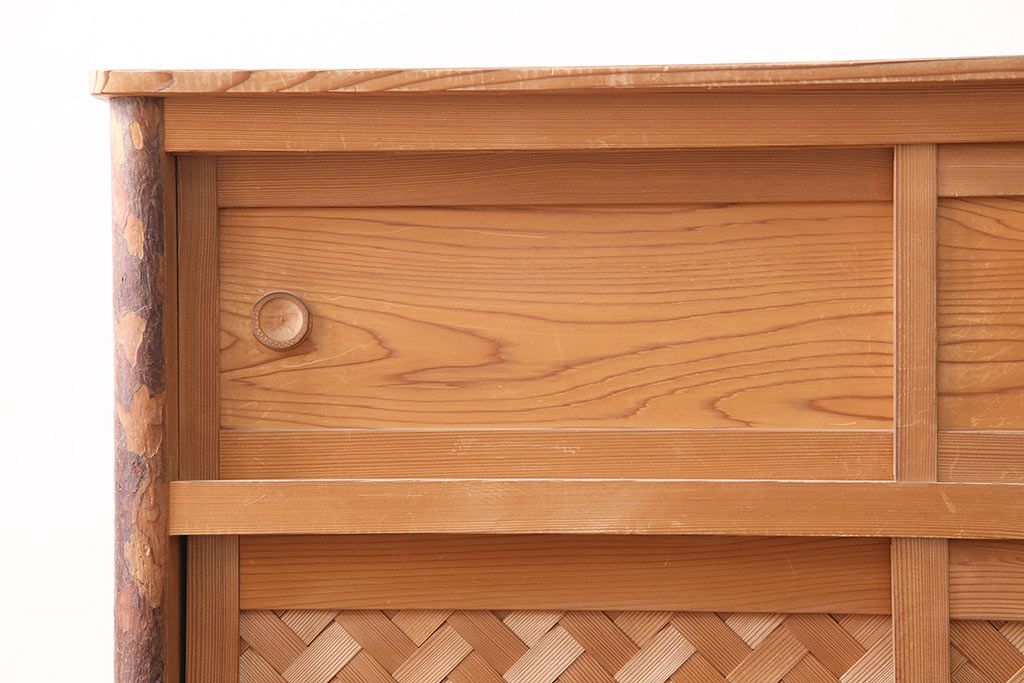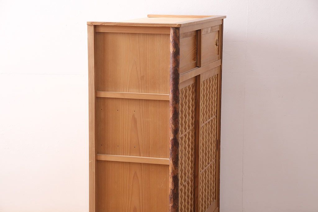 和箪笥> 茶箪笥・茶棚 > 中古 民芸家具 杉材・桜皮 網代引戸が目を引く、手の込んだ造りが魅力の置き水屋(置水屋、茶水屋、茶道具、戸棚)(R-047931)