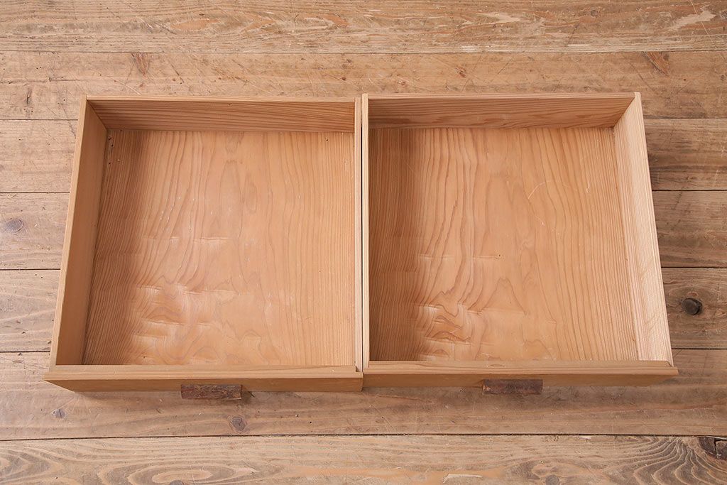 ・引き出し・引き戸・扉等の可動部分は調整してありますが、無垢材の特性として、湿度や気温などの変化によりきつくなったり緩くなったりする場合がございますので、ご理解の上お願いします。