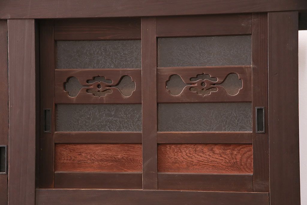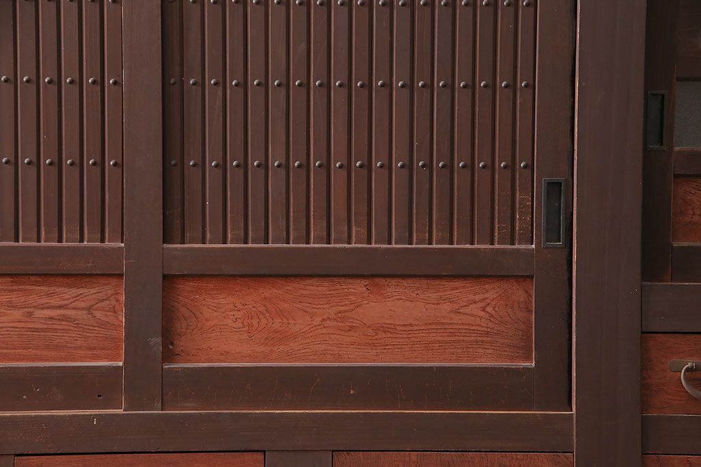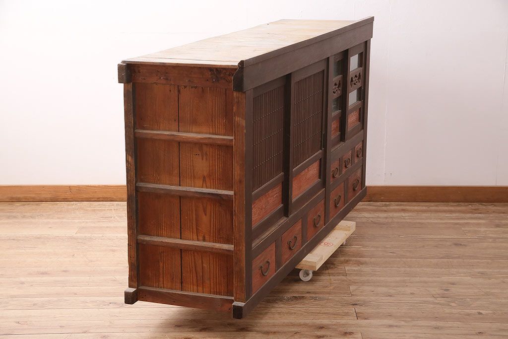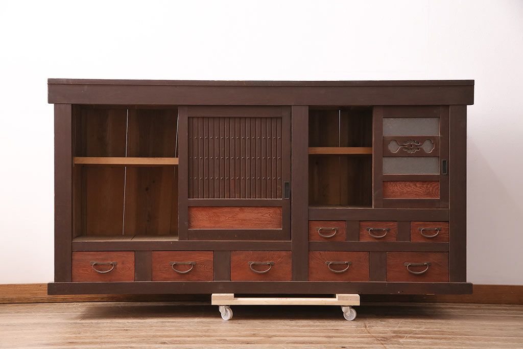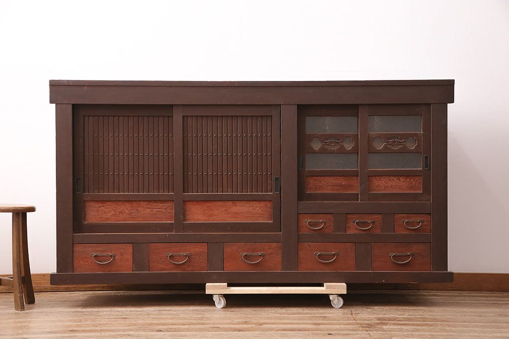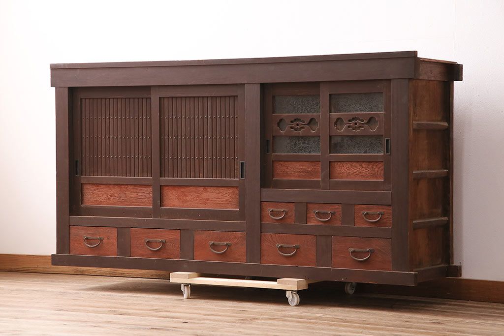 和製アンティーク 前面ヒノキ材・ケヤキ材 関西水屋 上品な和の雰囲気づくりにおすすめな収納棚(水屋箪笥、戸棚、サイドボード)(R-047907)