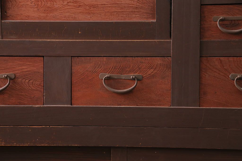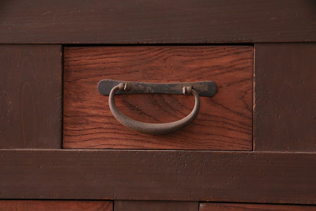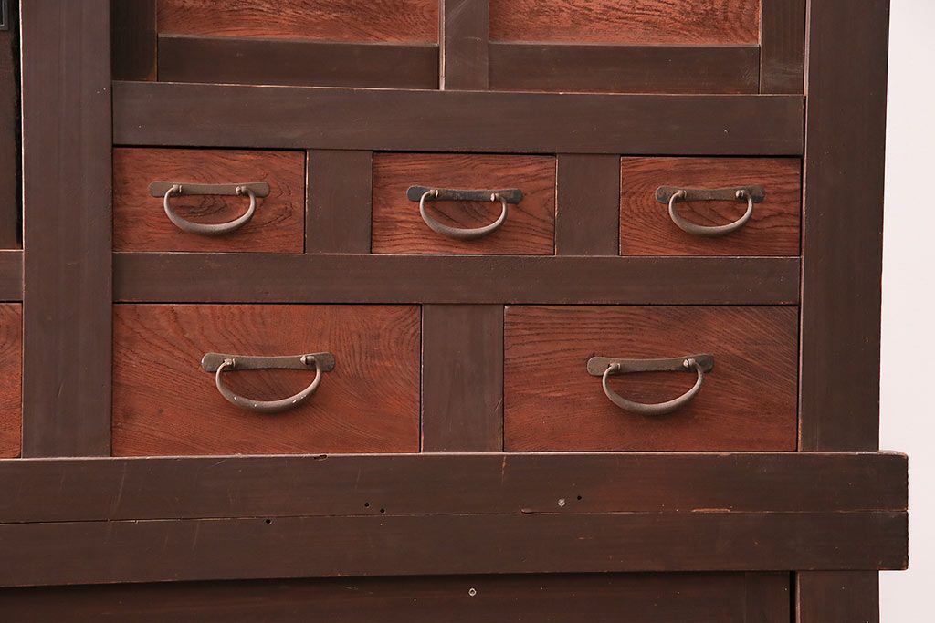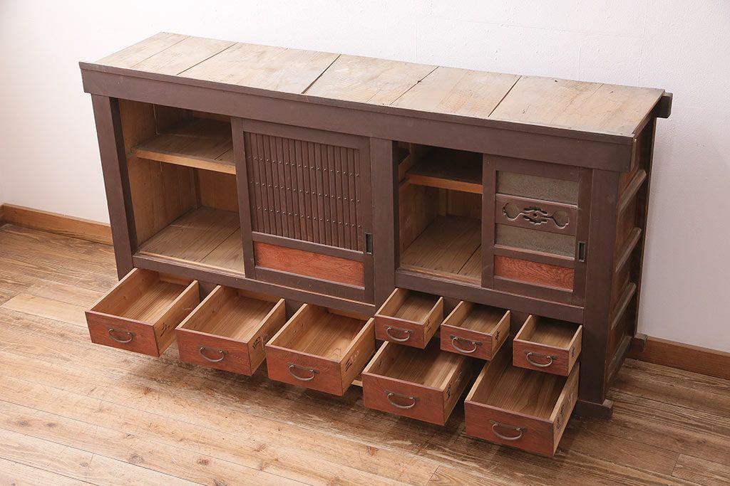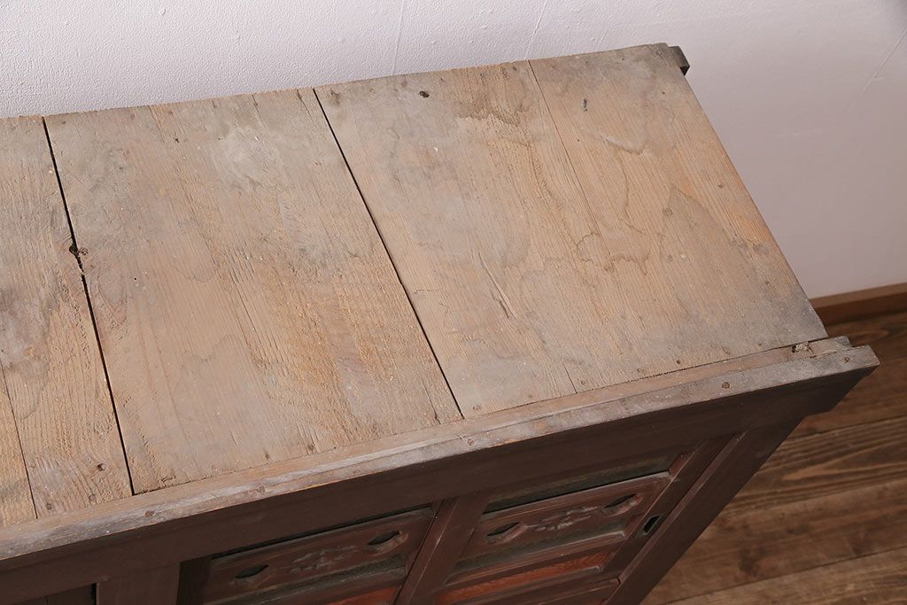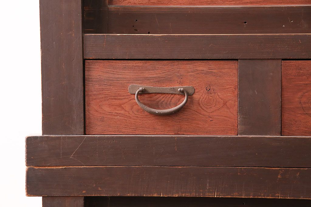 和箪笥> 水屋箪笥 > 和製アンティーク 前面ヒノキ材・ケヤキ材 関西水屋 上品な和の雰囲気づくりにおすすめな収納棚(水屋箪笥、戸棚、サイドボード)(R-047907)