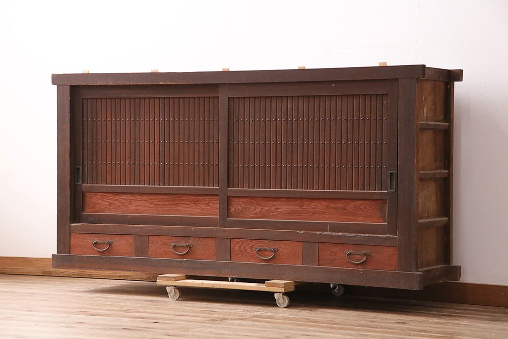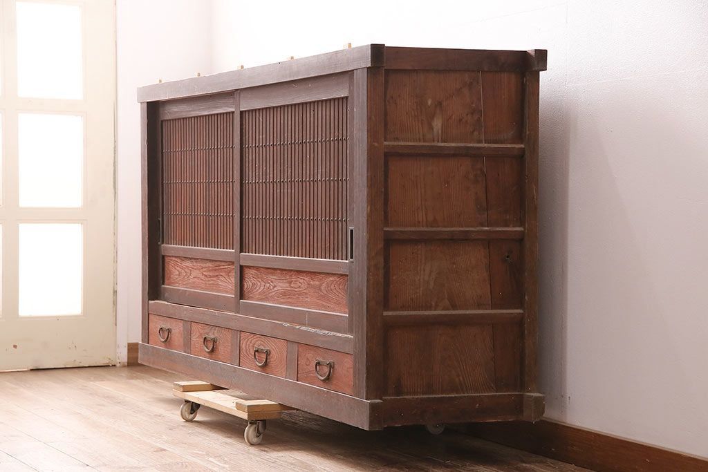 和製アンティーク 前面ヒノキ材・ケヤキ材 関西水屋 上品な和の雰囲気づくりにおすすめなサイドボード(水屋箪笥、収納棚、戸棚)(R-047908)