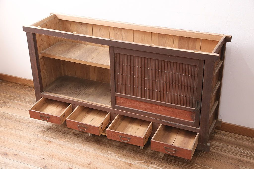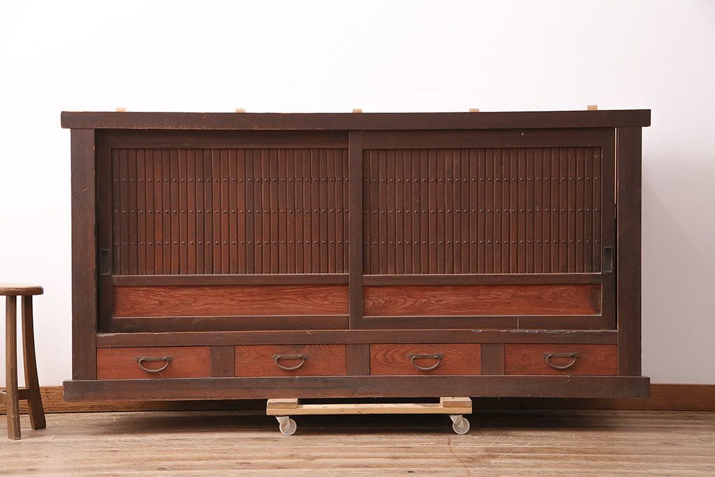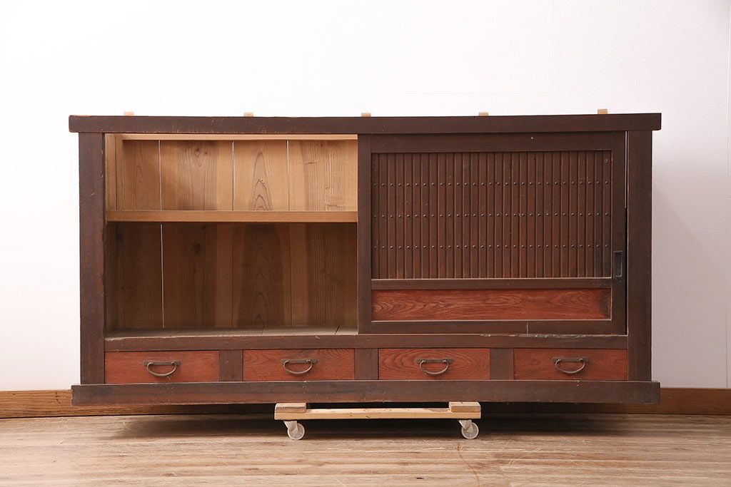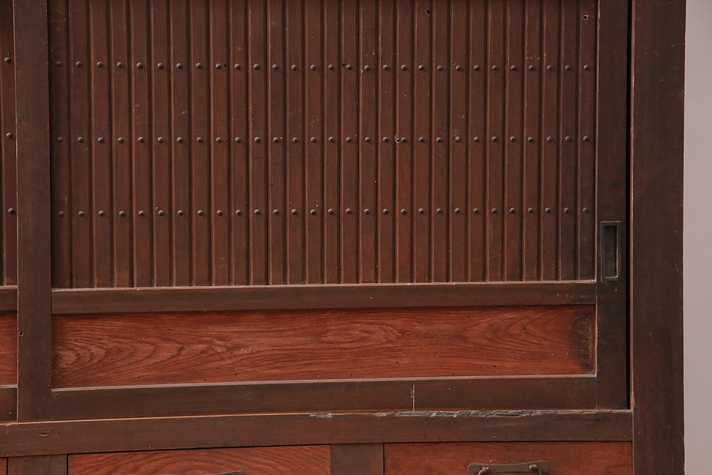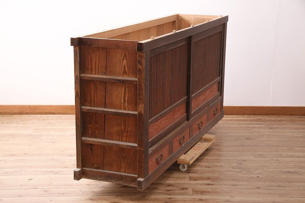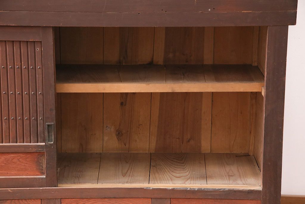 和箪笥> 水屋箪笥 > 和製アンティーク 前面ヒノキ材・ケヤキ材 関西水屋 上品な和の雰囲気づくりにおすすめなサイドボード(水屋箪笥、収納棚、戸棚)(R-047908)