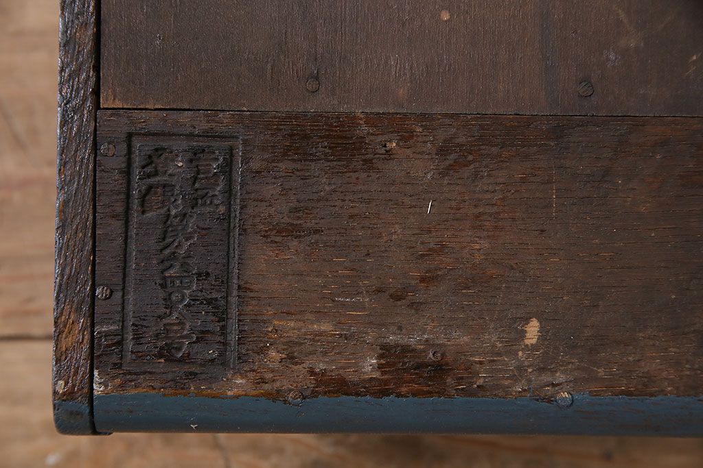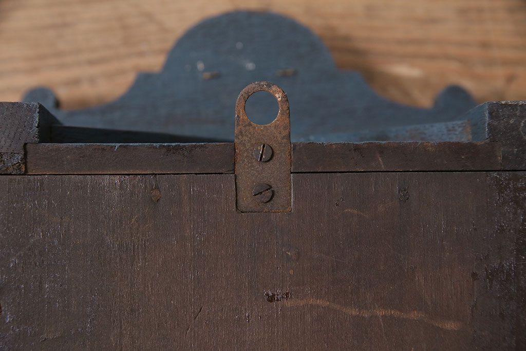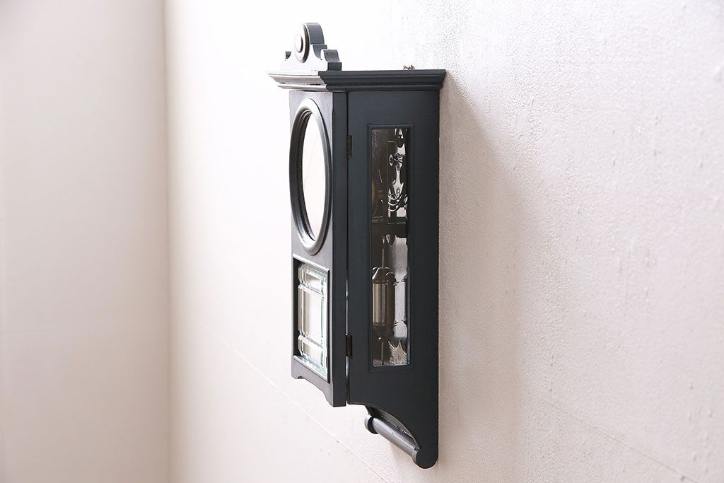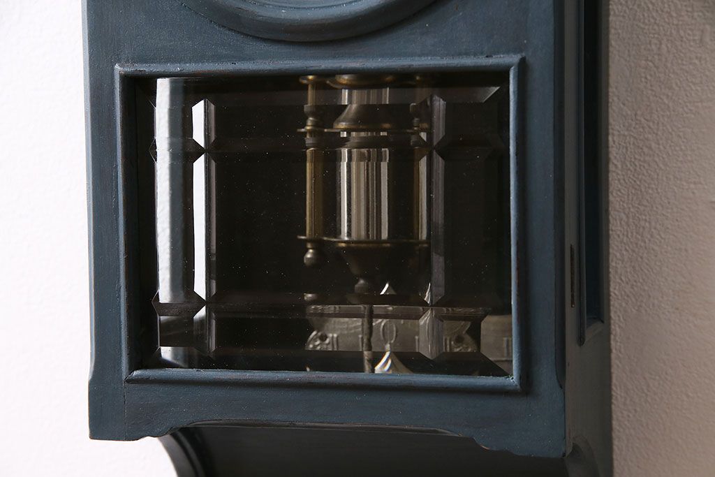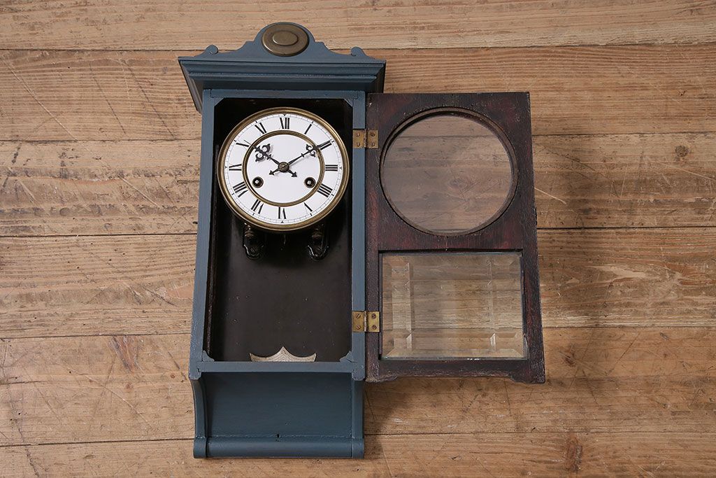 アンティーク時計 戦前 精工舎(セイコー、SEIKOSHA) 当店でネイビーのペイントを施した、筋ガラスがお洒落な掛時計(掛け時計、古時計)(R-047279)