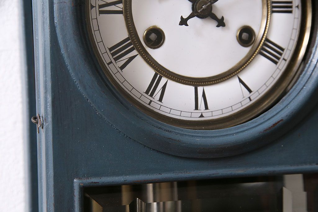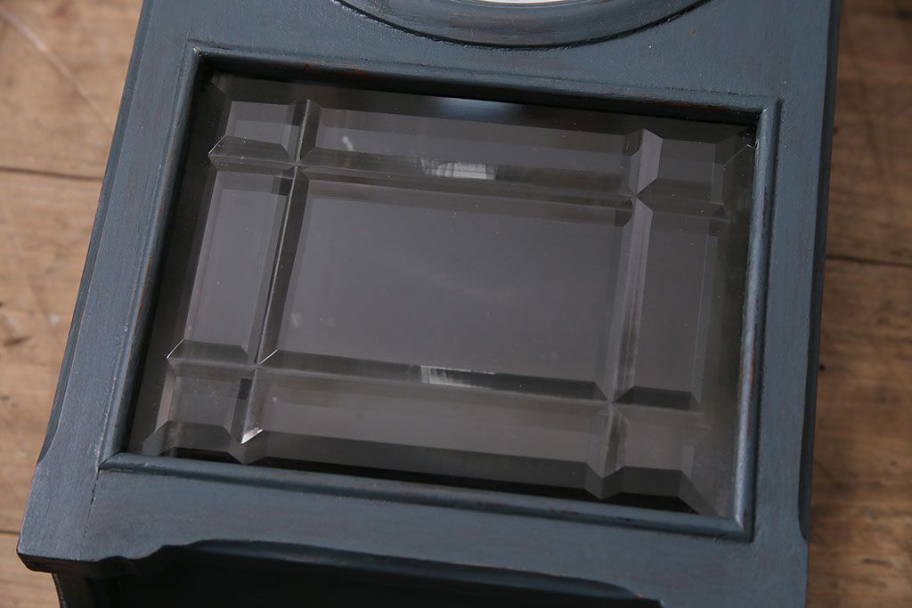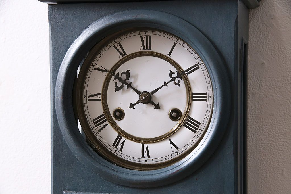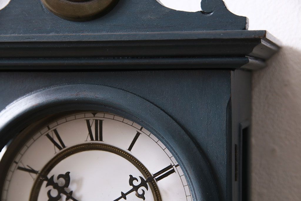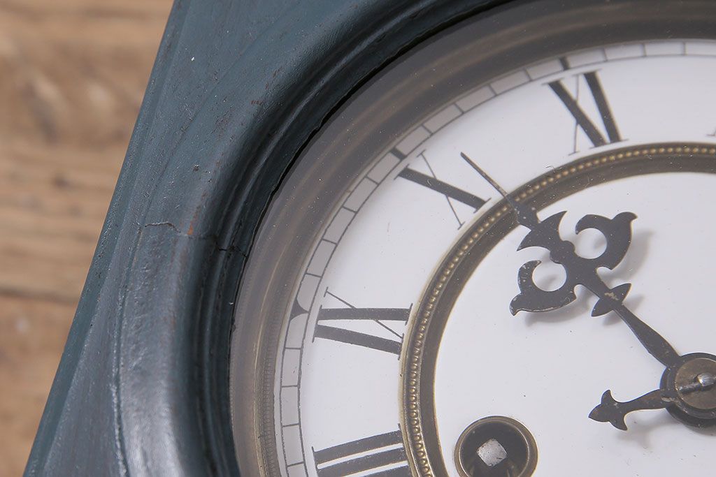 時計> 掛け時計 > アンティーク時計 戦前 精工舎(セイコー、SEIKOSHA) 当店でネイビーのペイントを施した、筋ガラスがお洒落な掛時計(掛け時計、古時計)(R-047279)