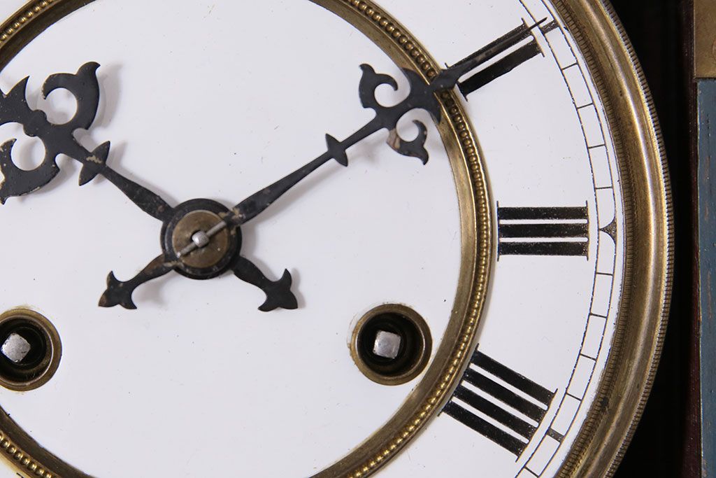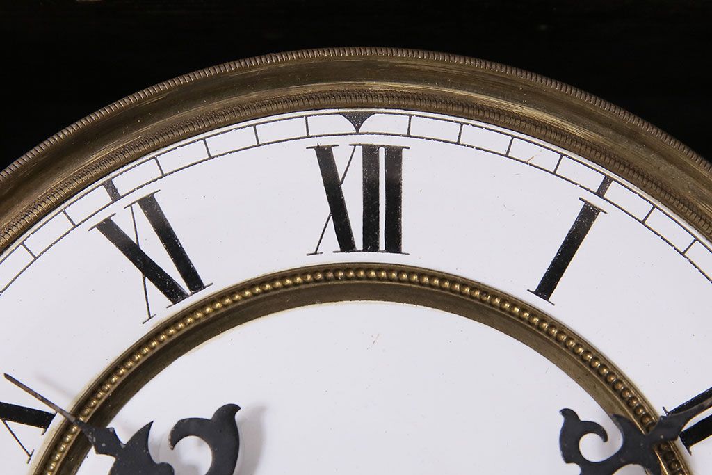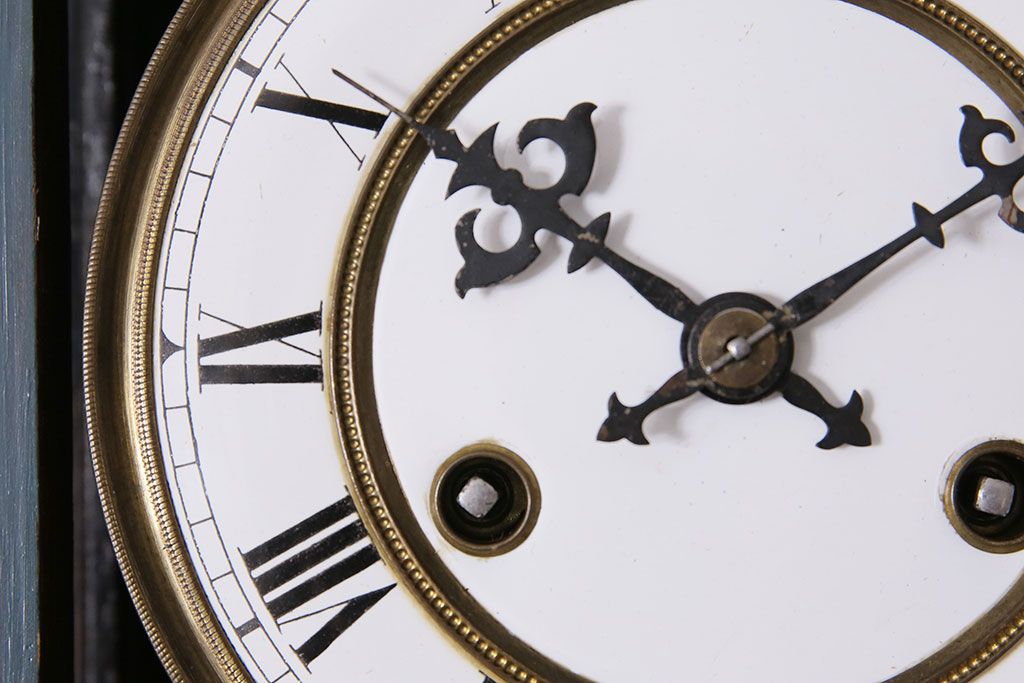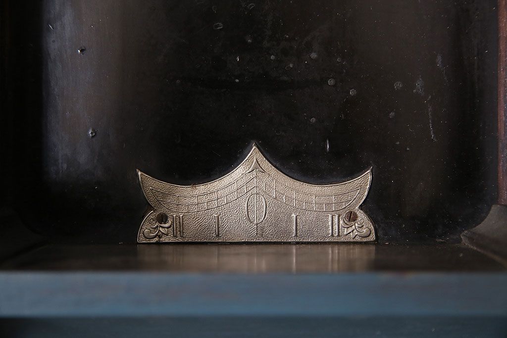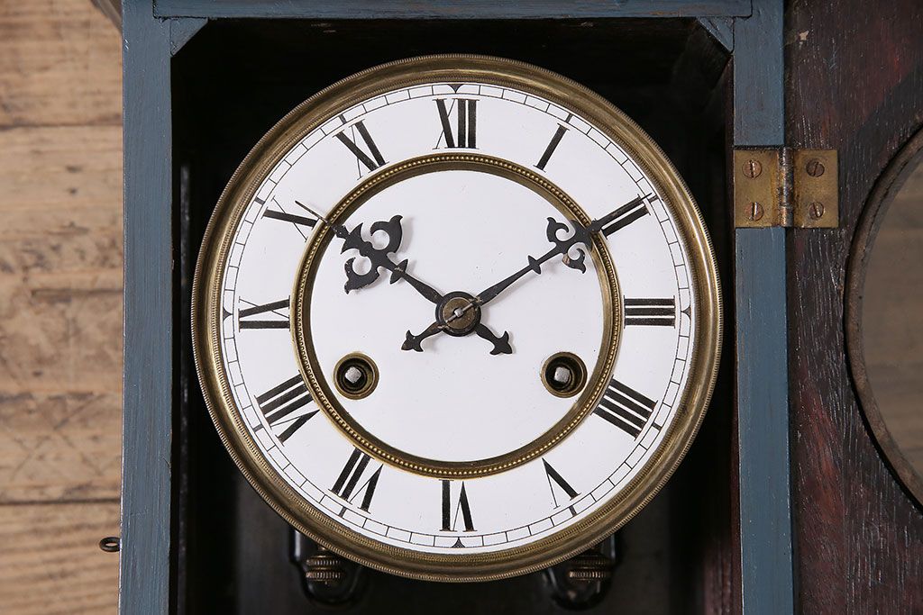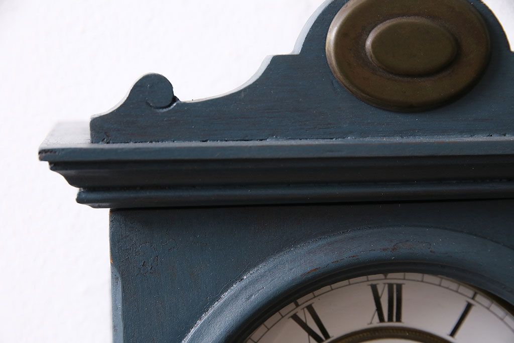 時計> 掛け時計 > アンティーク時計 戦前 精工舎(セイコー、SEIKOSHA) 当店でネイビーのペイントを施した、筋ガラスがお洒落な掛時計(掛け時計、古時計)(R-047279)