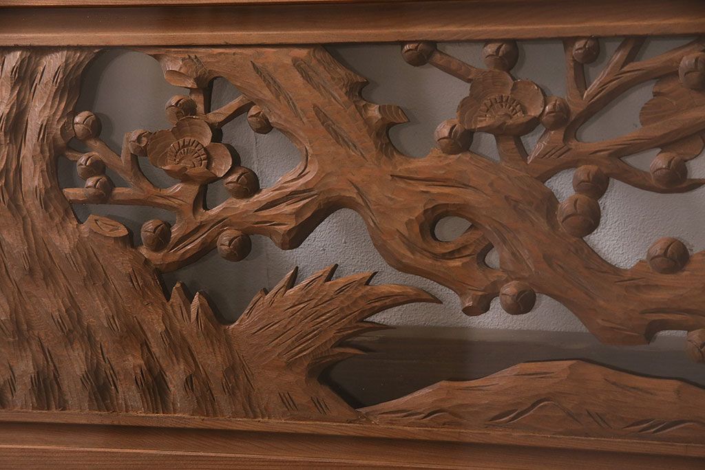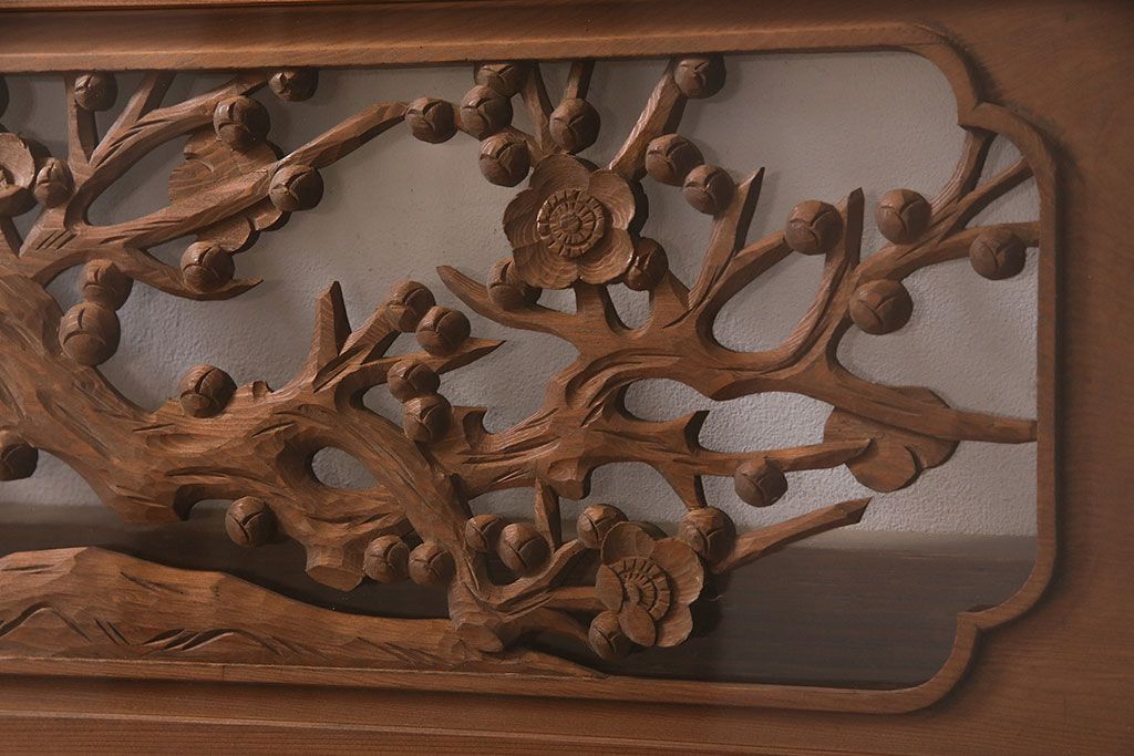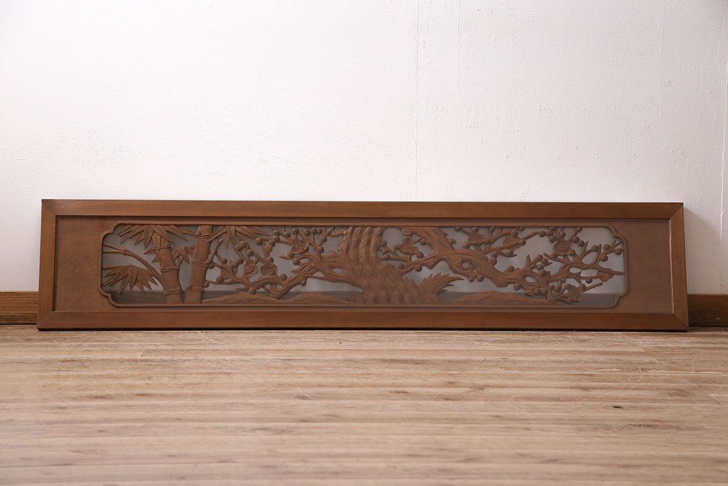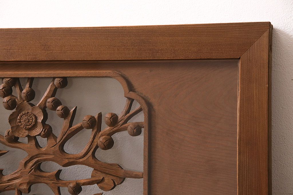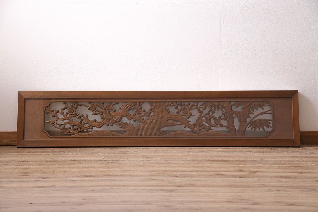 アンティーク建具 力強い竹と梅の彫りが目を引く彫刻欄間(明かり取り、明り取り)(R-047337)