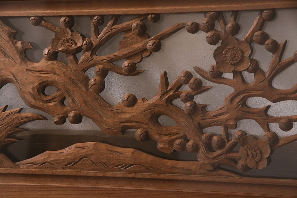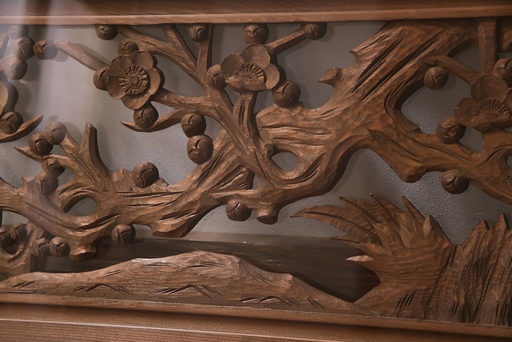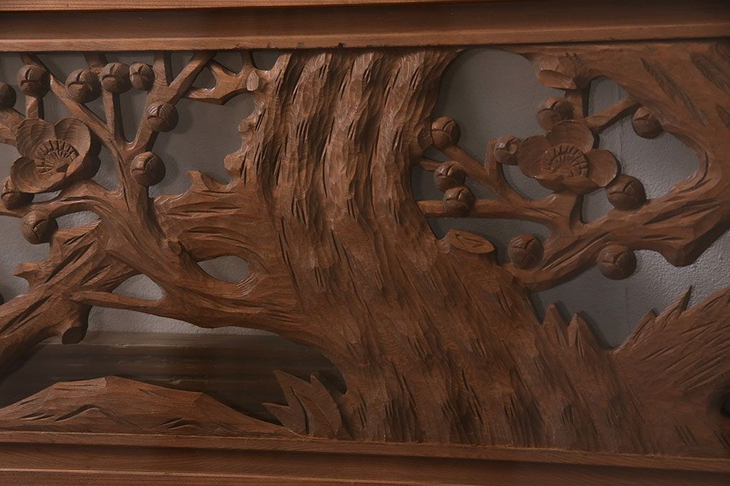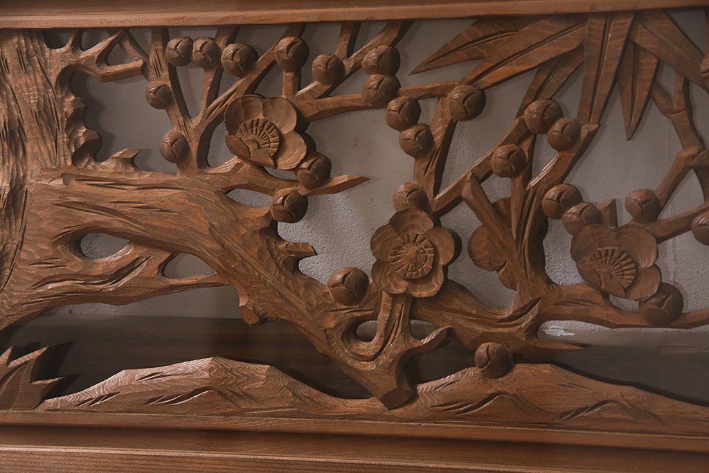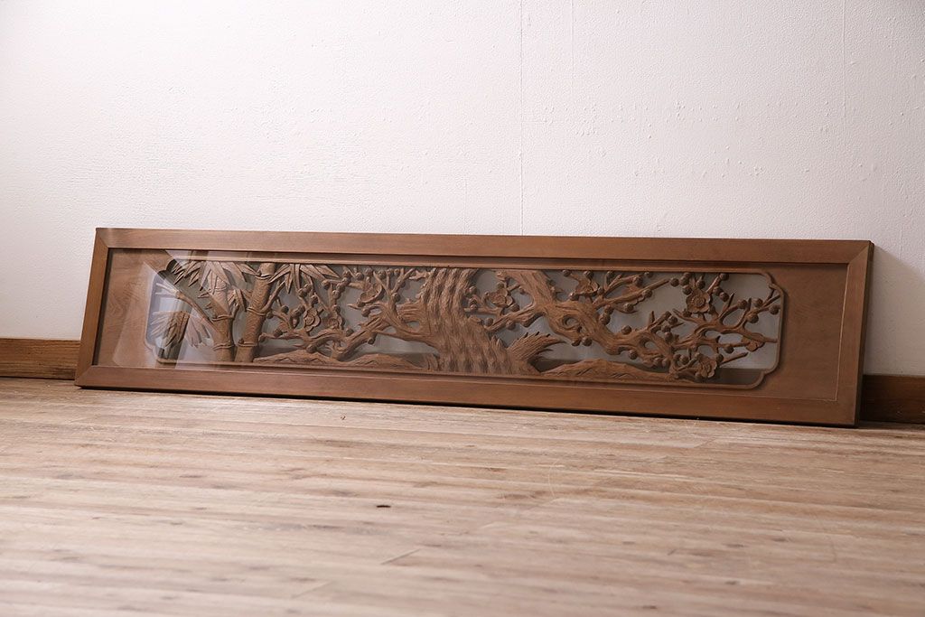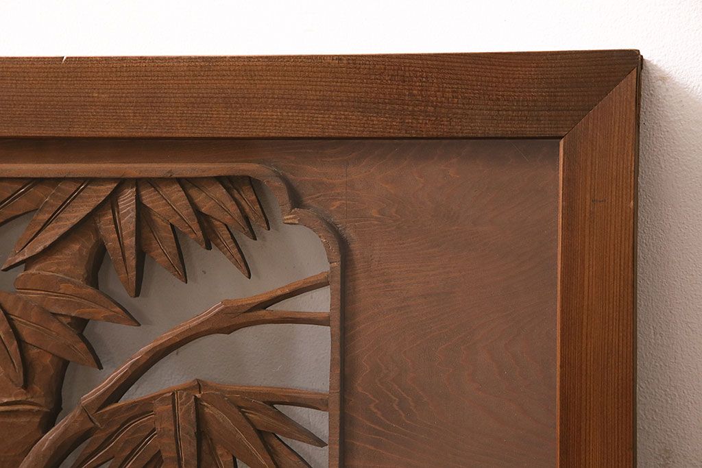 アンティーク建具 力強い竹と梅の彫りが目を引く彫刻欄間(明かり取り、明り取り)(R-047337)