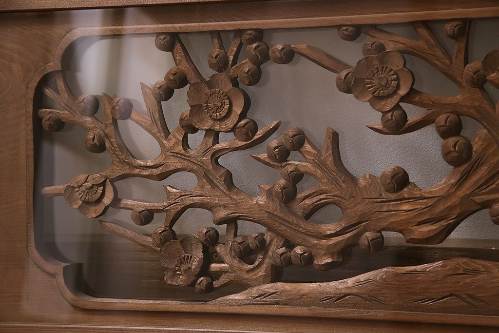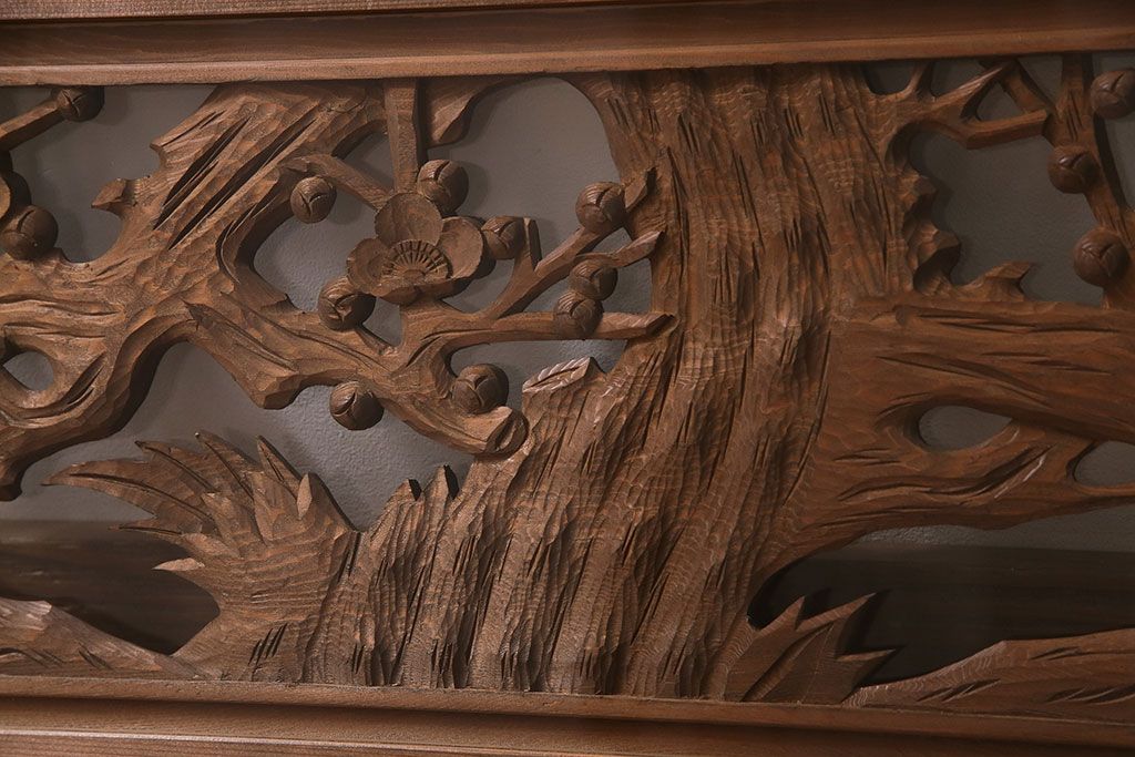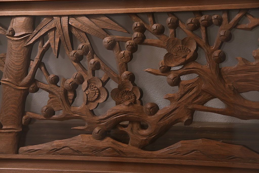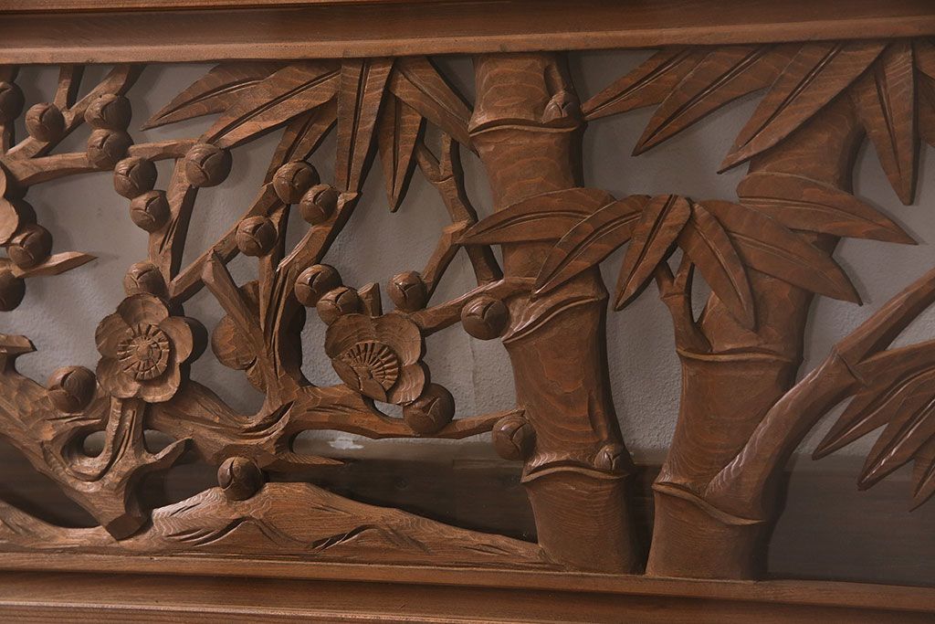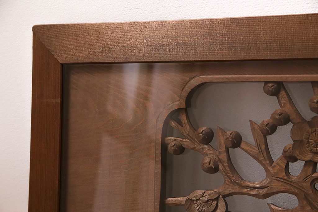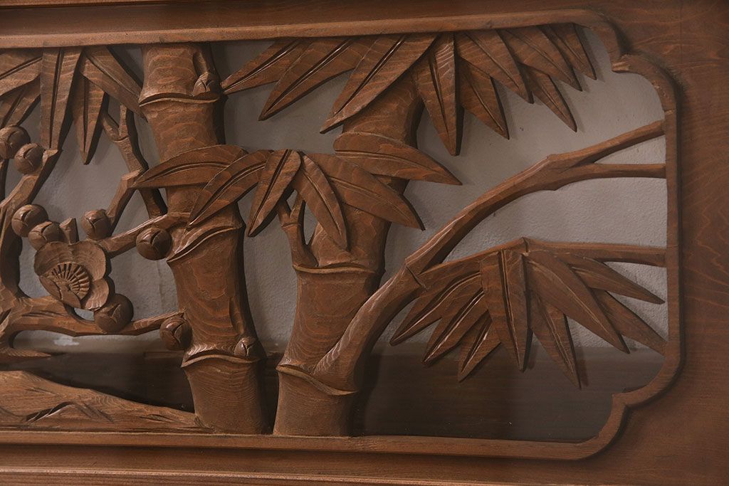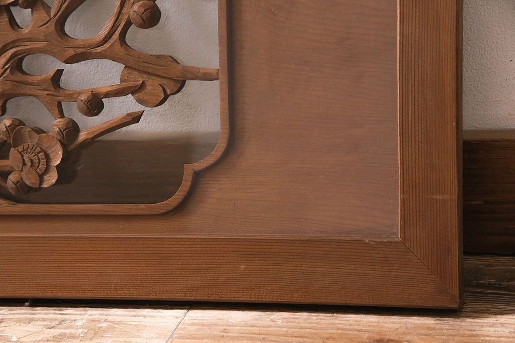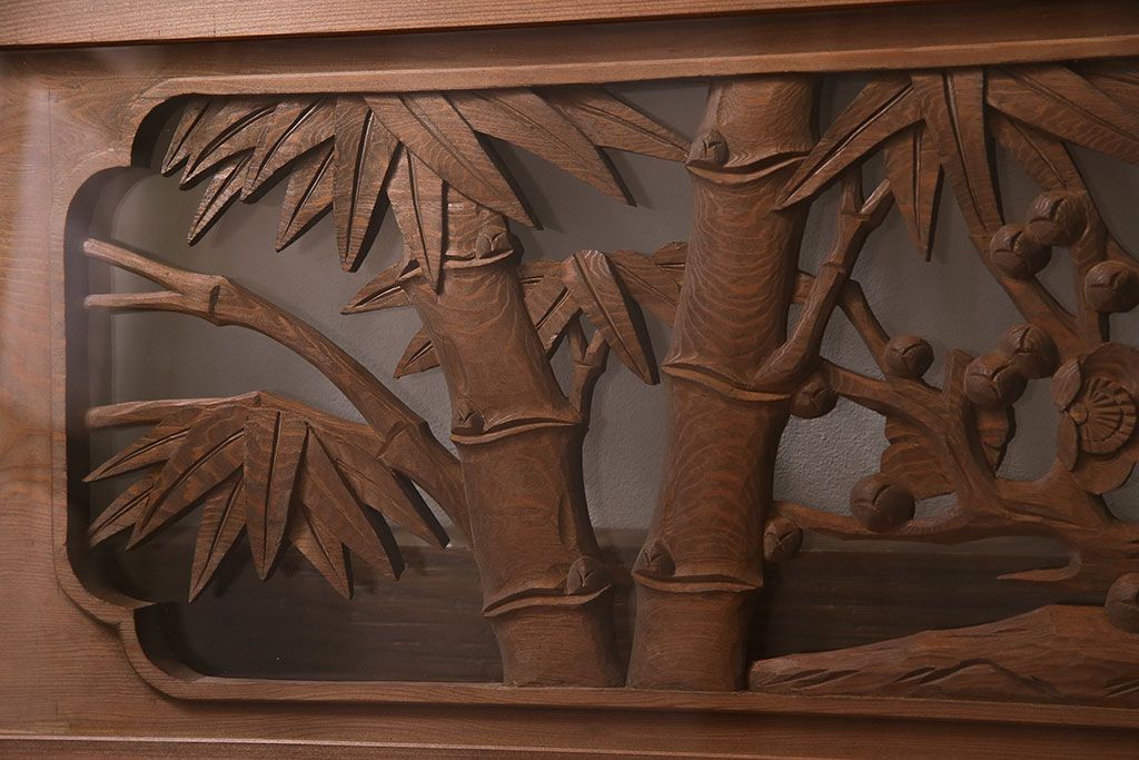 アンティーク建具 力強い竹と梅の彫りが目を引く彫刻欄間(明かり取り、明り取り)(R-047337)です。