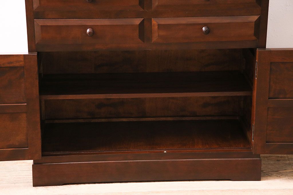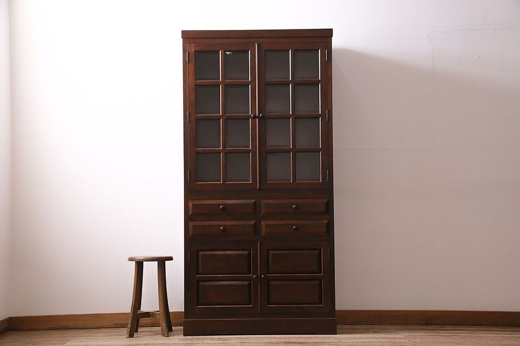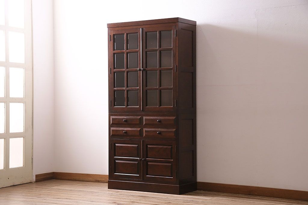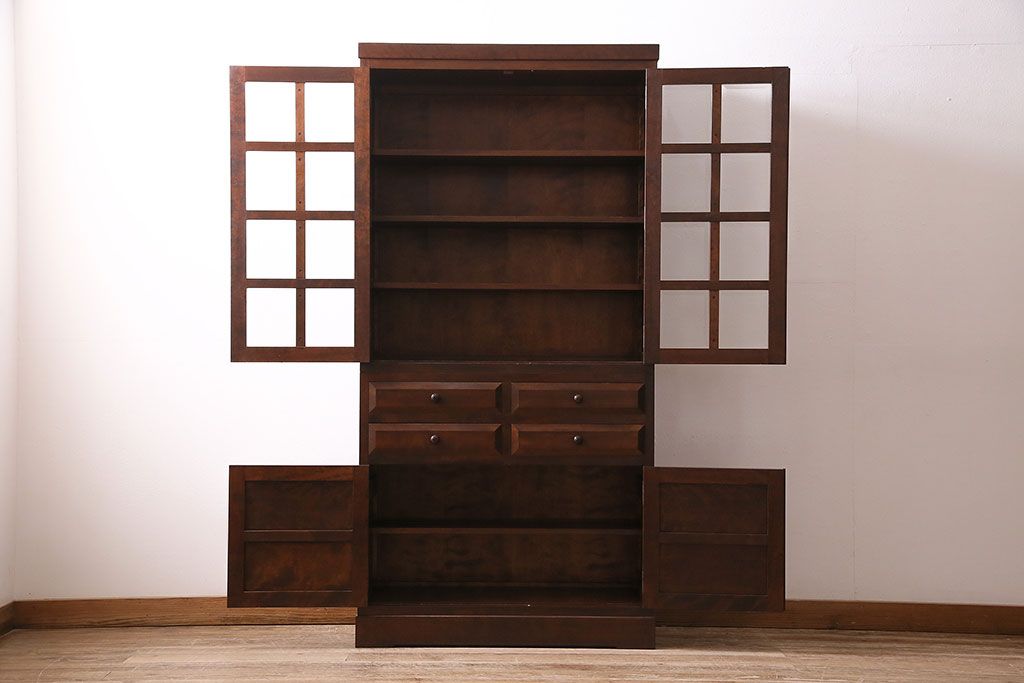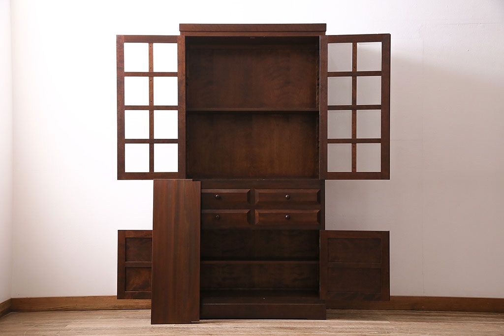 キャビネット・戸棚> 食器棚・カップボード > 中古 シックな空間づくりが叶う、松本民芸家具のG-2型面取り食器棚(収納棚、カップボード、キャビネット)(定価約49万円)(R-047334)