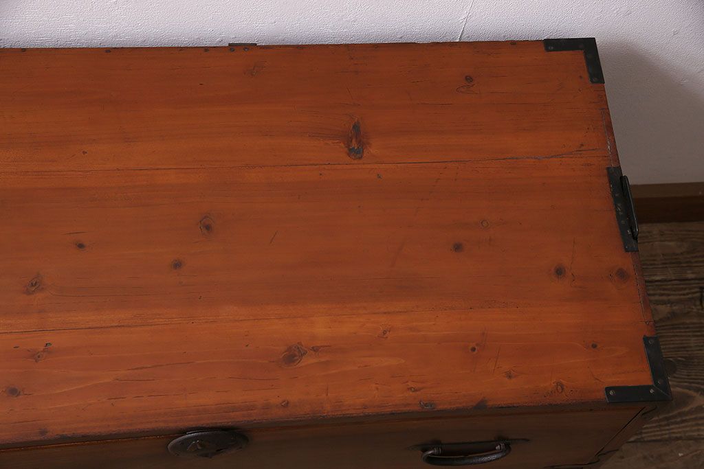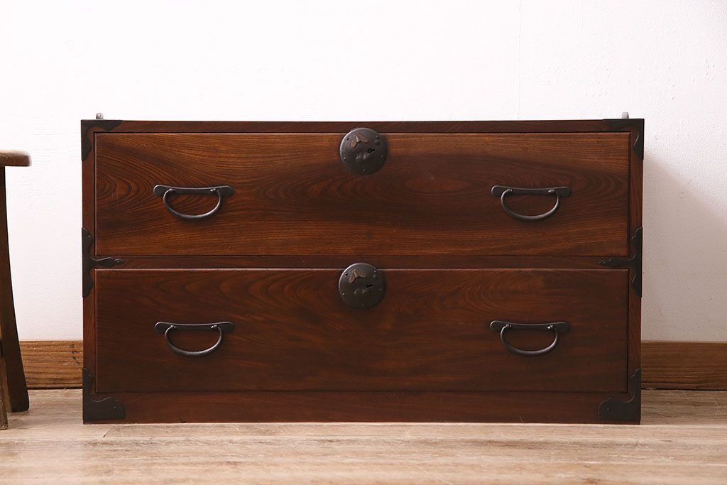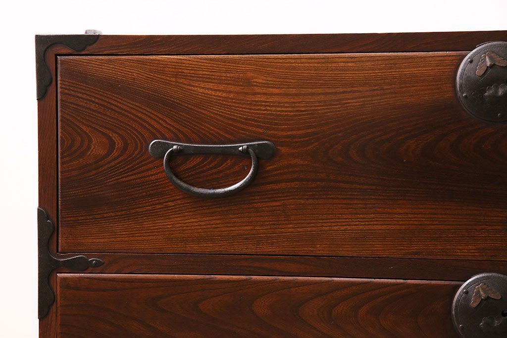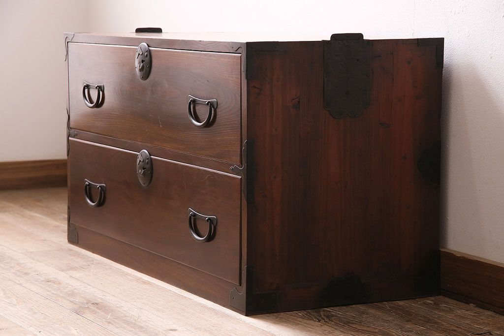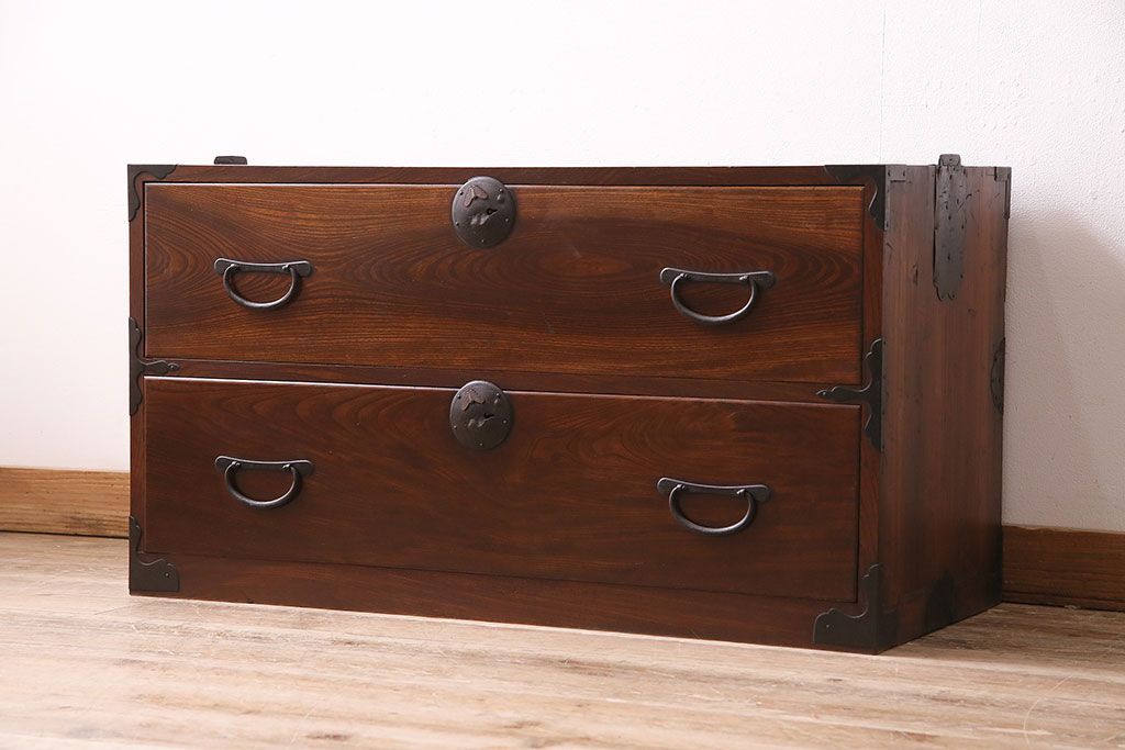 和製アンティーク シンプルながらも凝った意匠の金具が楽しめる二本松箪笥ローボード(引き出し、チェスト、テレビ台)(R-047338)
