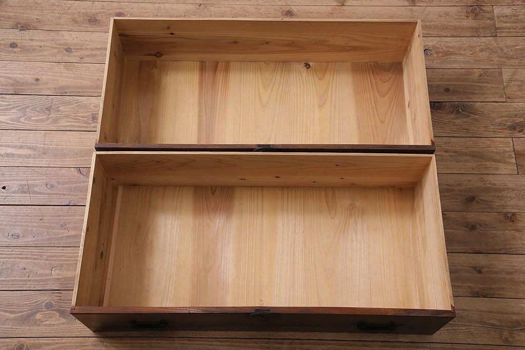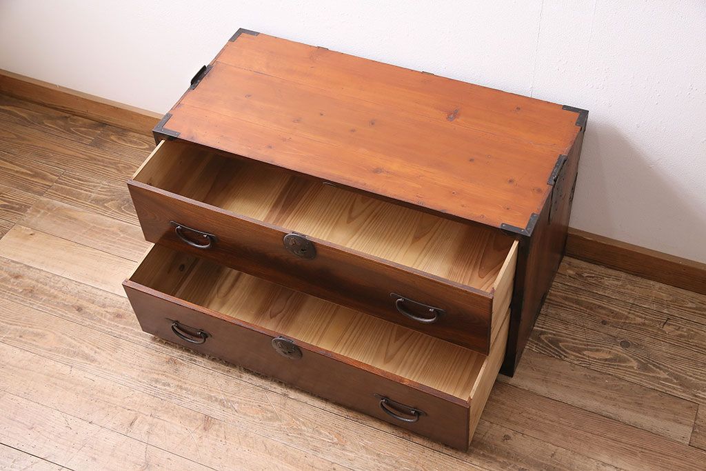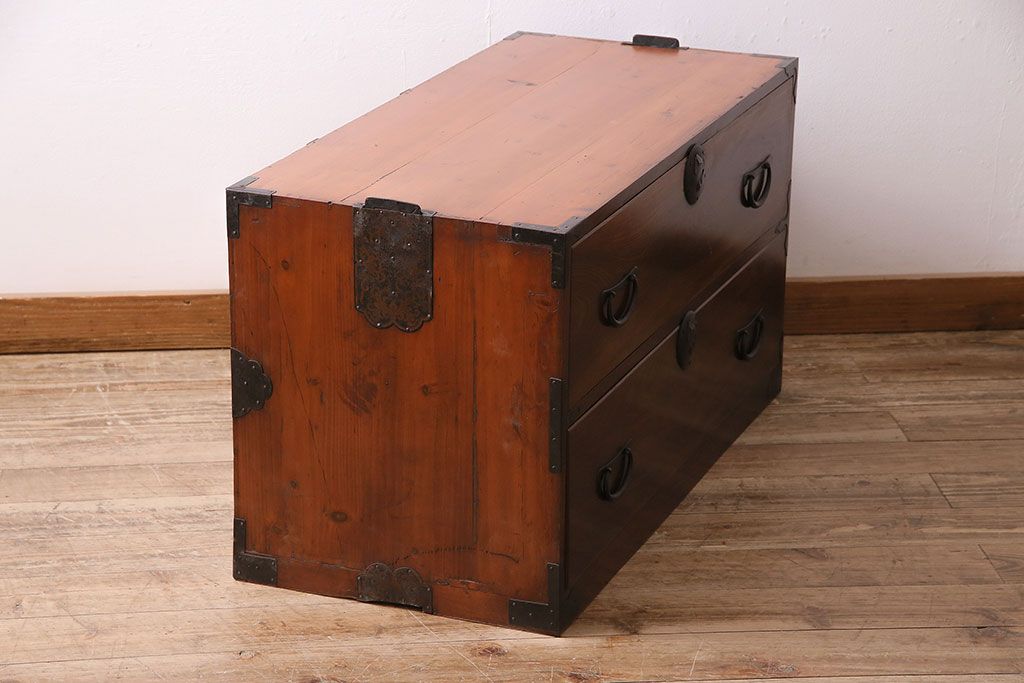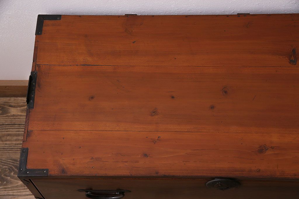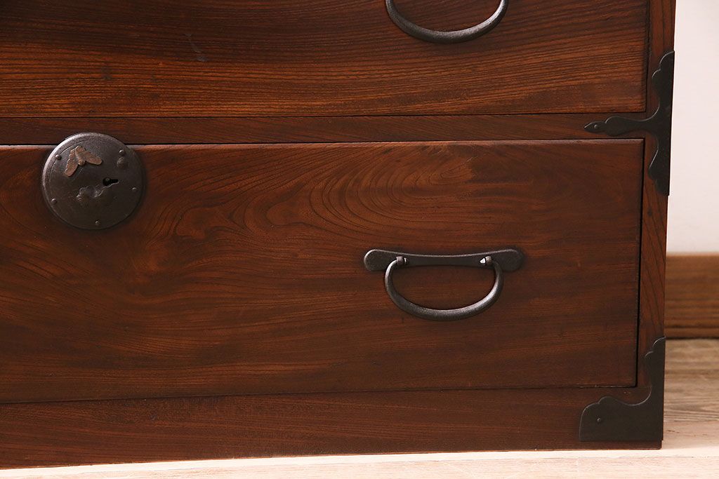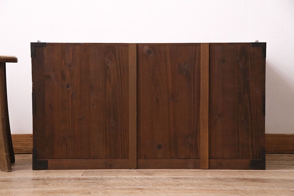 和製アンティーク シンプルながらも凝った意匠の金具が楽しめる二本松箪笥ローボード(引き出し、チェスト、テレビ台)(R-047338)