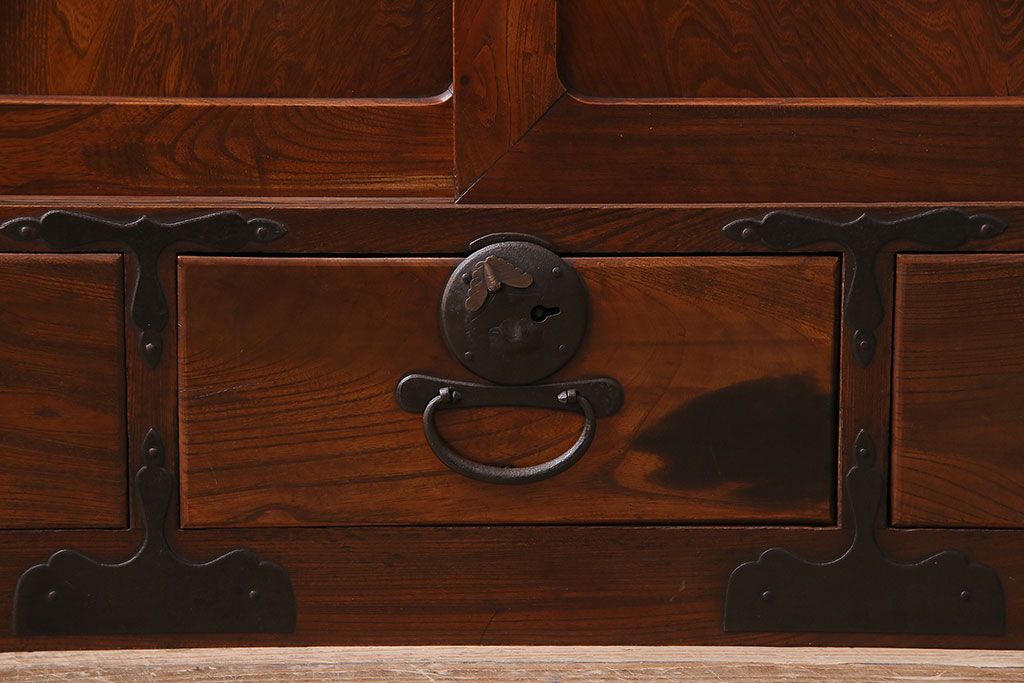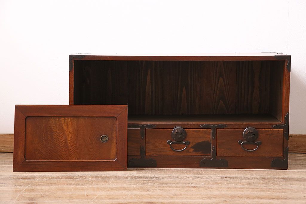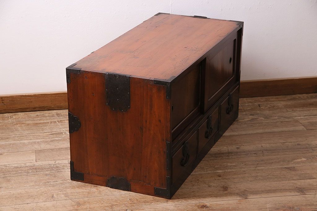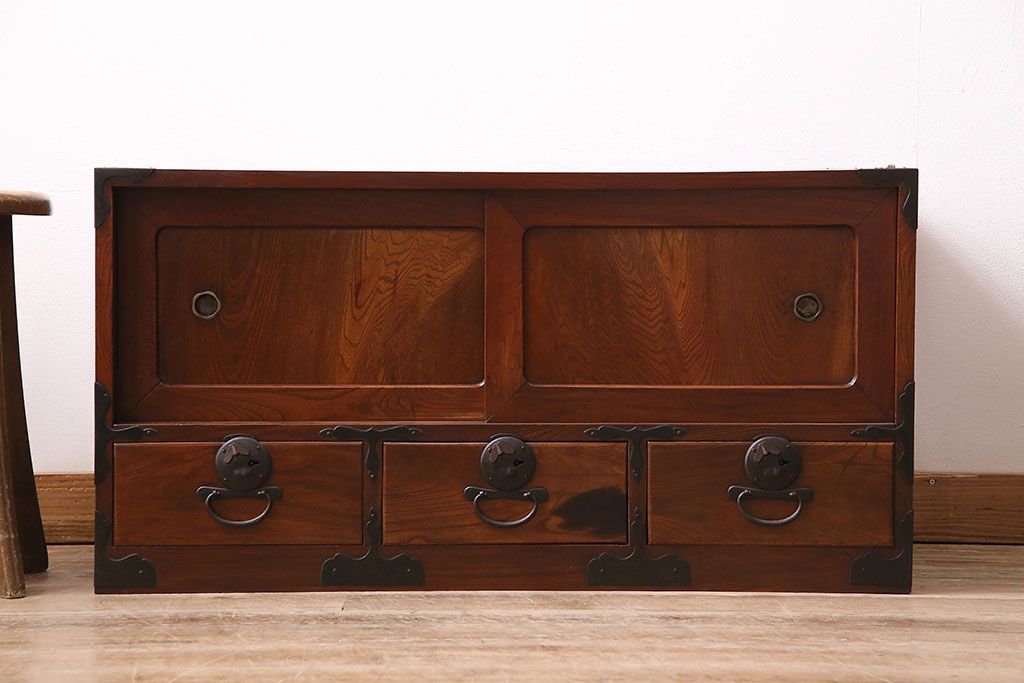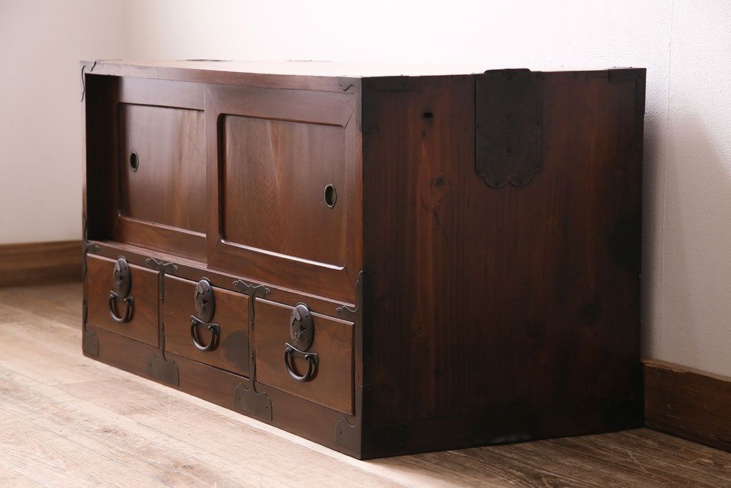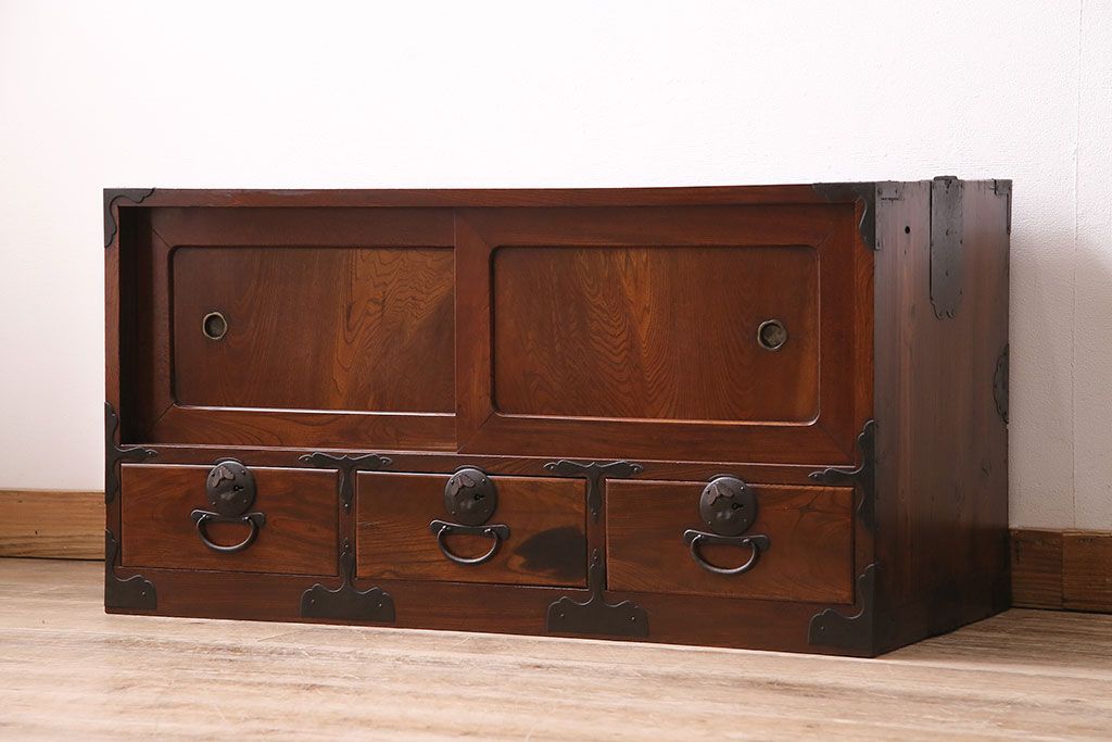 和製アンティーク 蝶と牡丹の意匠が可愛らしい二本松箪笥ローボード(二本松箪笥、テレビボード、収納棚)(R-046937)です。