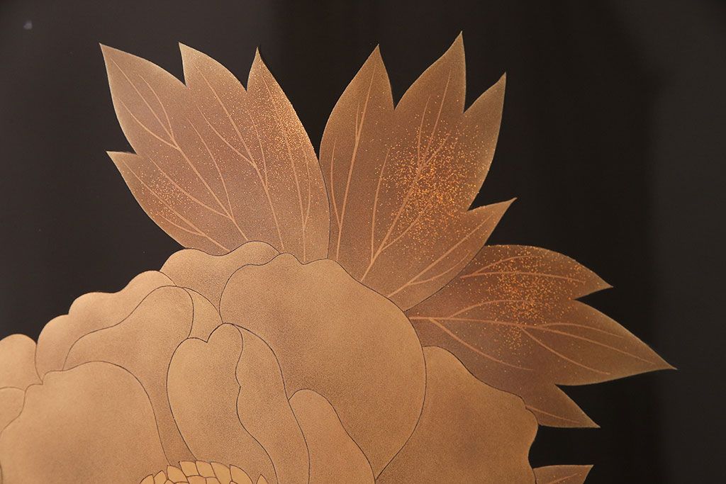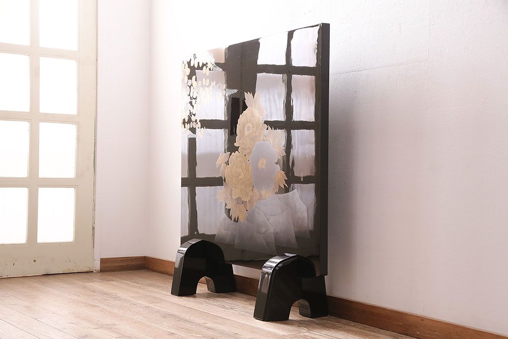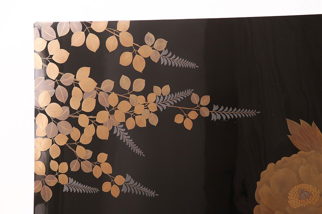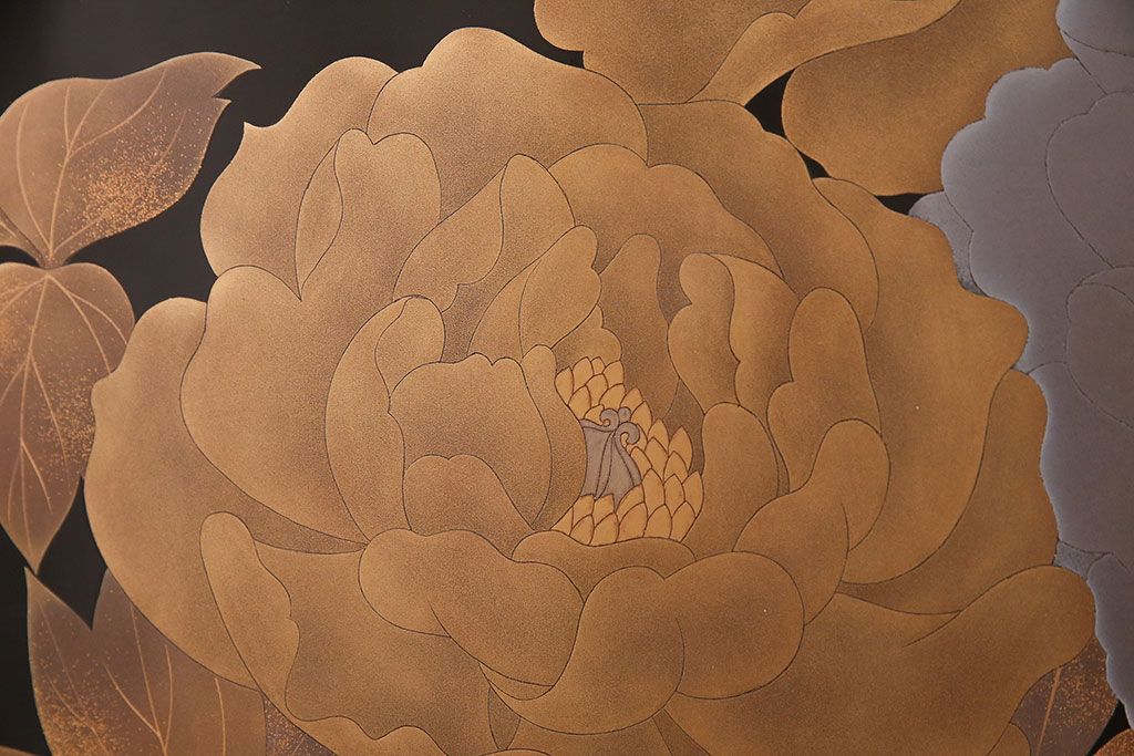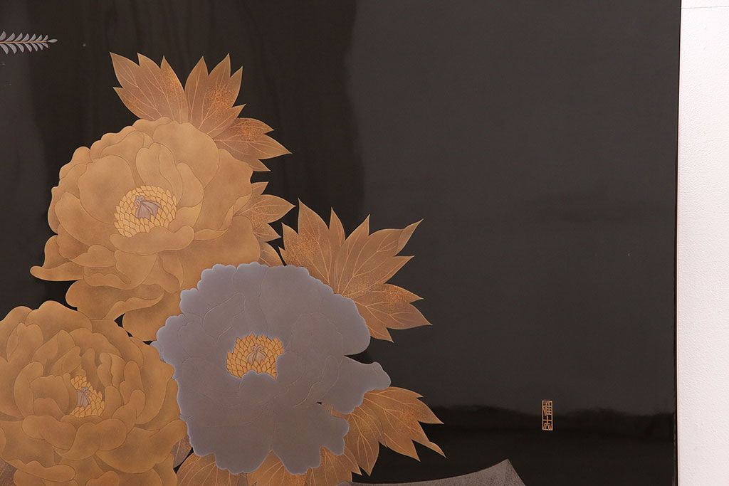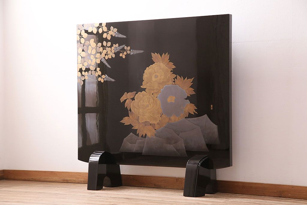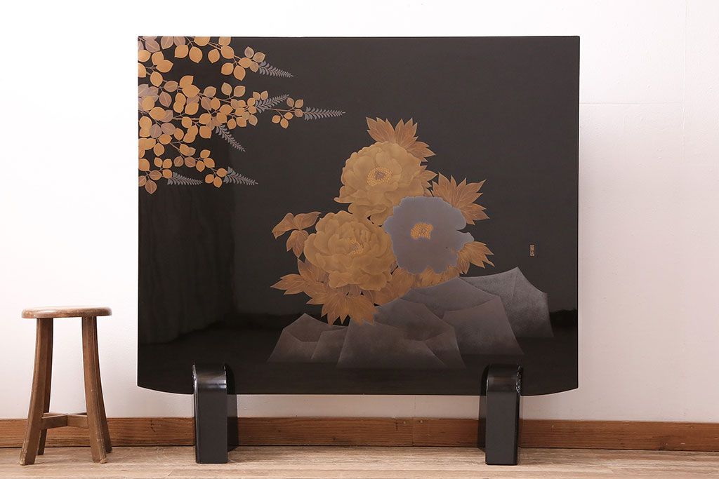 衝立・パーテーション > 中古 美品 民芸家具 輪島塗 井波唯志作 萩に牡丹 金銀蒔絵 蒔絵の意匠が見事な大振りの衝立(定価約450万円)(つい立て)(R-047826)