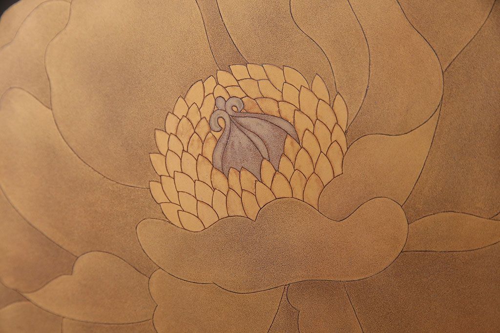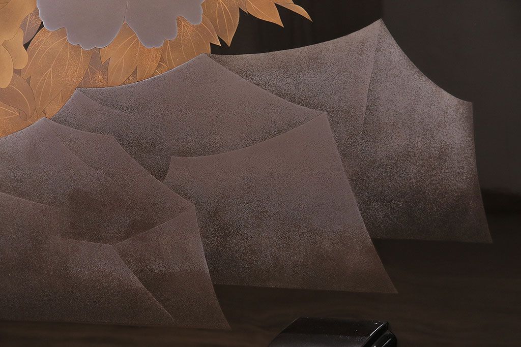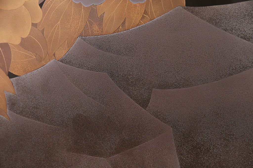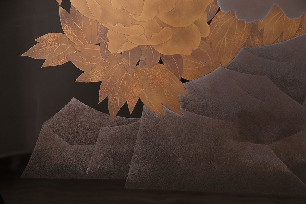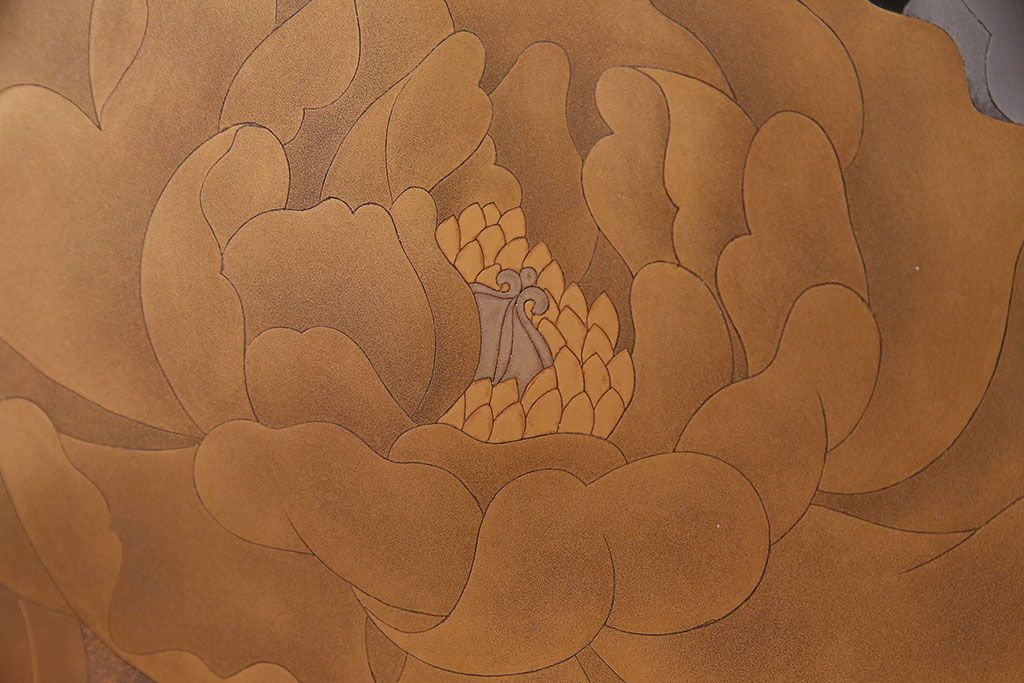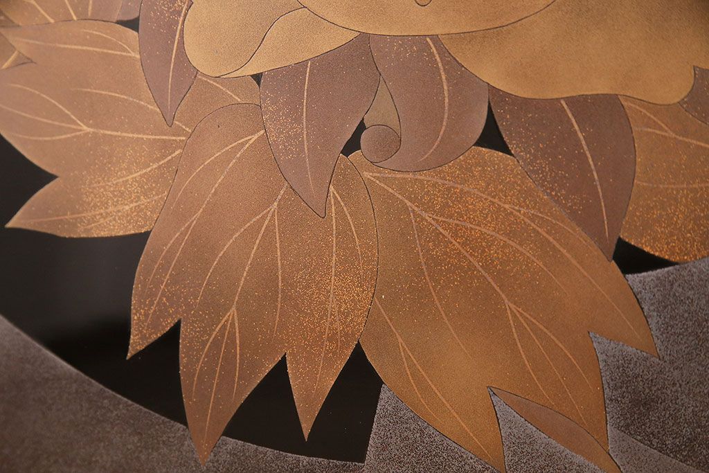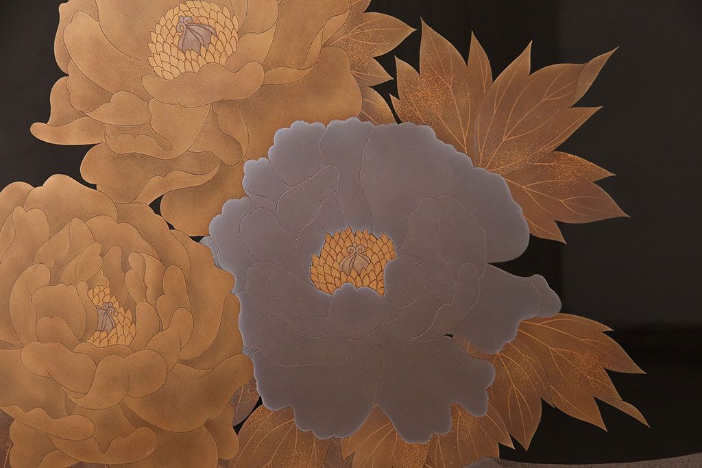 衝立・パーテーション > 中古 美品 民芸家具 輪島塗 井波唯志作 萩に牡丹 金銀蒔絵 蒔絵の意匠が見事な大振りの衝立(定価約450万円)(つい立て)(R-047826)