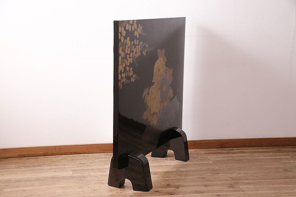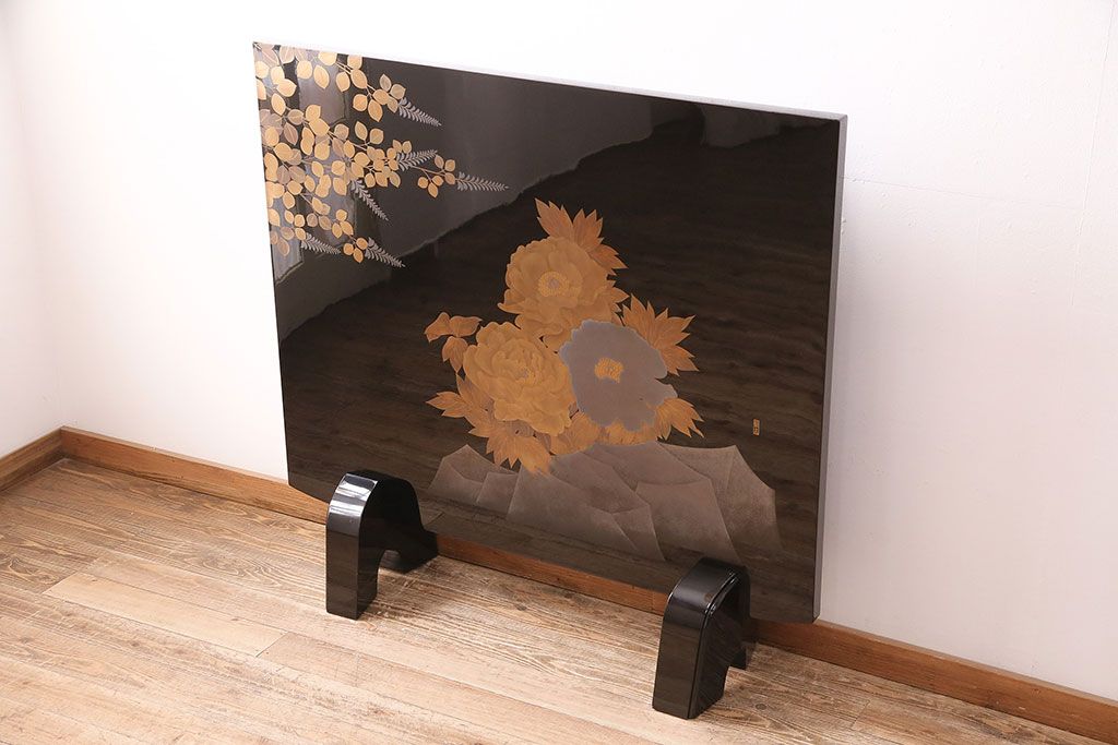 衝立・パーテーション> スタンド式衝立 > 中古 美品 民芸家具 輪島塗 井波唯志作 萩に牡丹 金銀蒔絵 蒔絵の意匠が見事な大振りの衝立(定価約450万円)(つい立て)(R-047826)