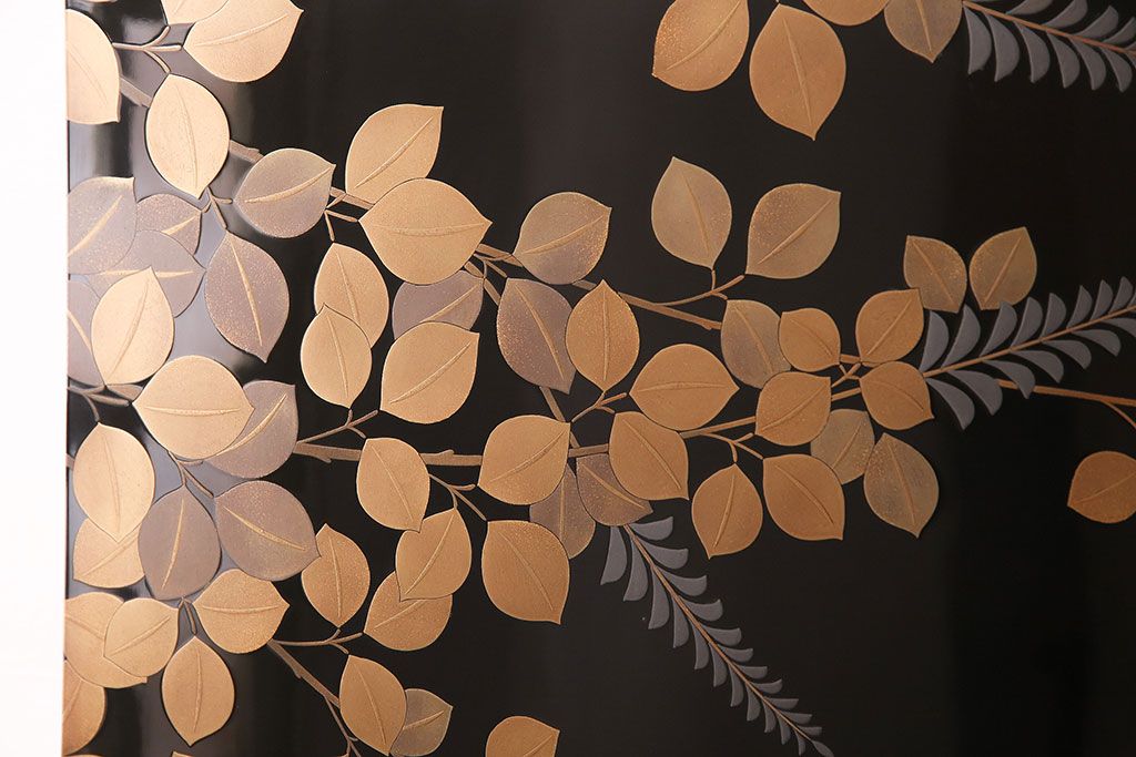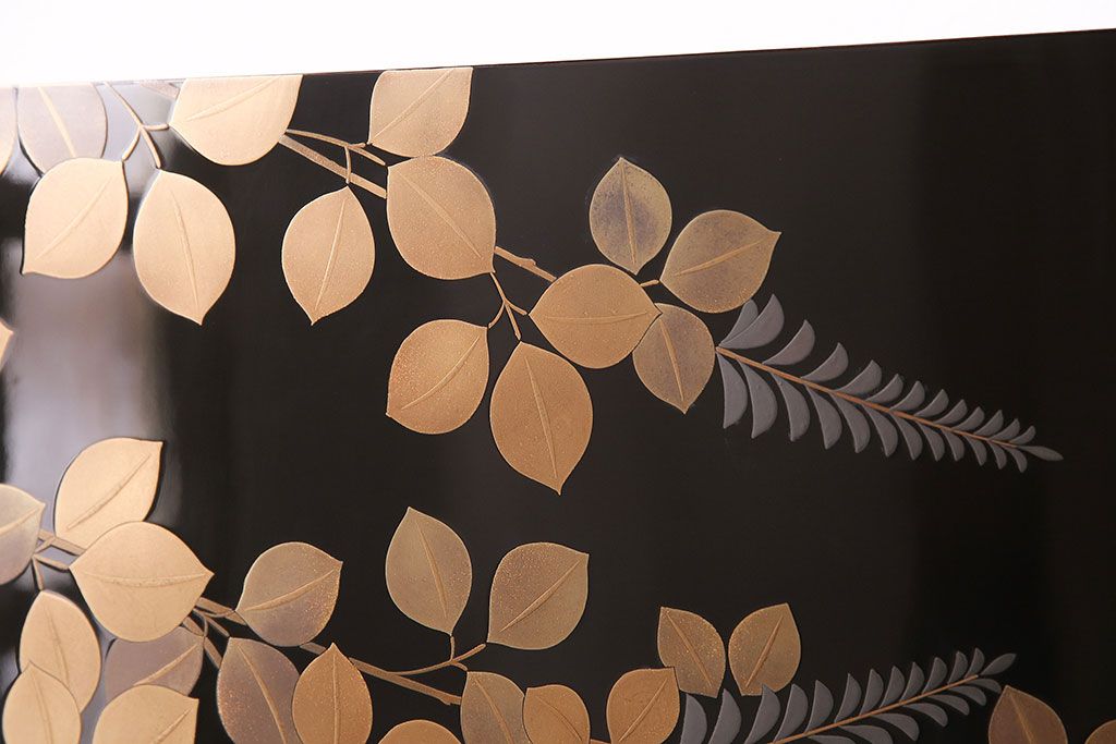 民芸家具 > 中古 美品 民芸家具 輪島塗 井波唯志作 萩に牡丹 金銀蒔絵 蒔絵の意匠が見事な大振りの衝立(定価約450万円)(つい立て)(R-047826)