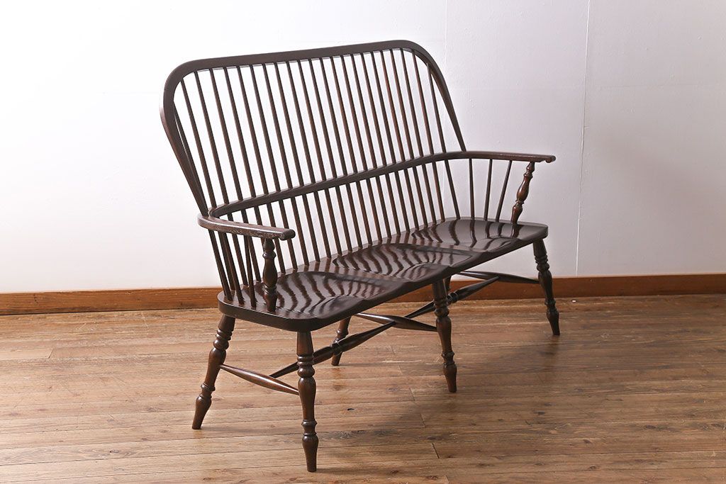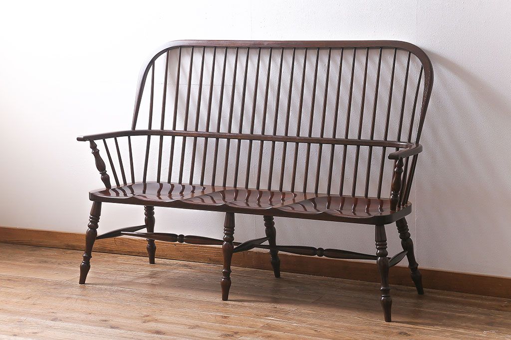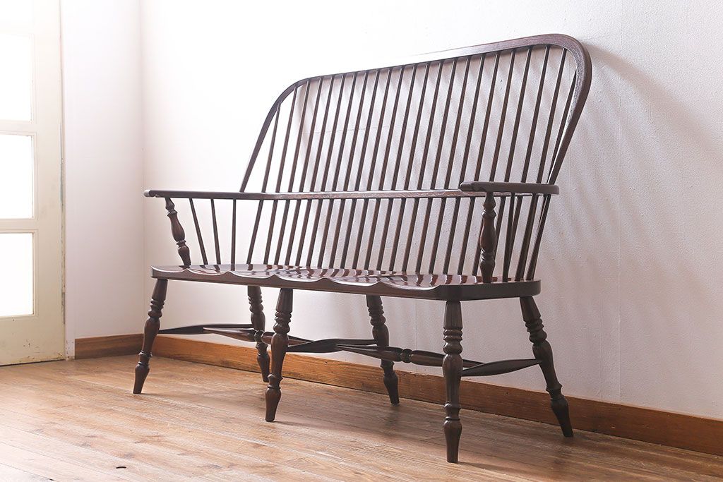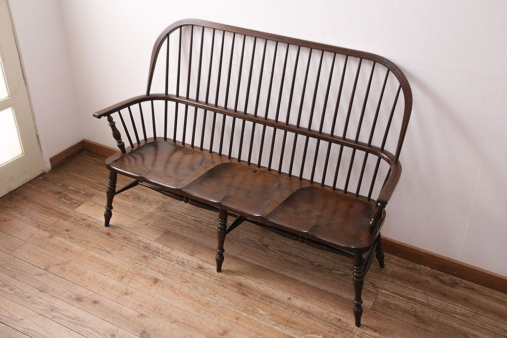民芸家具 > 中古 松本民芸家具 #513型 3人掛け 長ウィンザーチェア(三人掛ベンチ、長椅子、ウインザーチェア)(R-047975)
