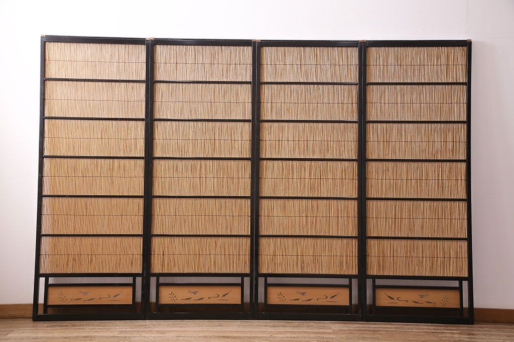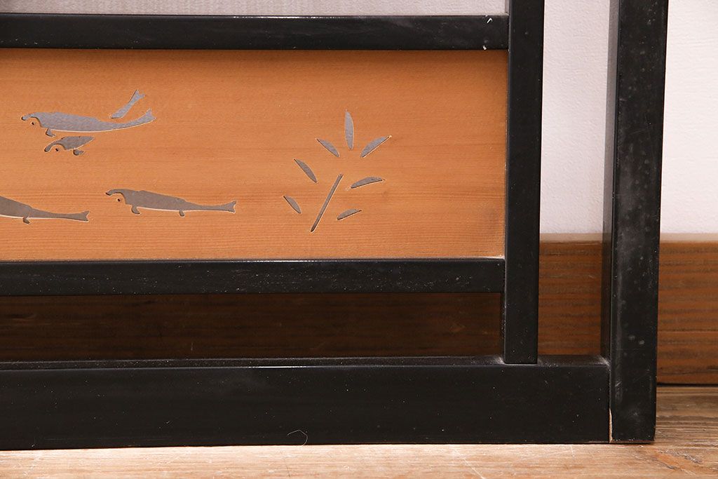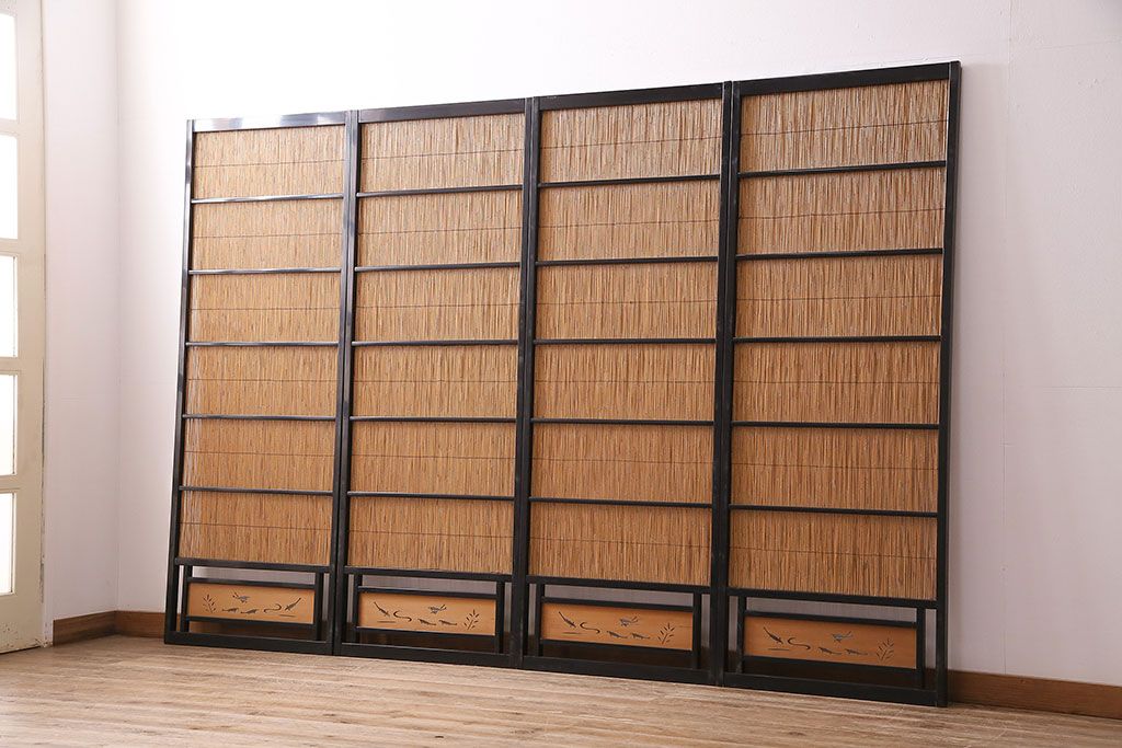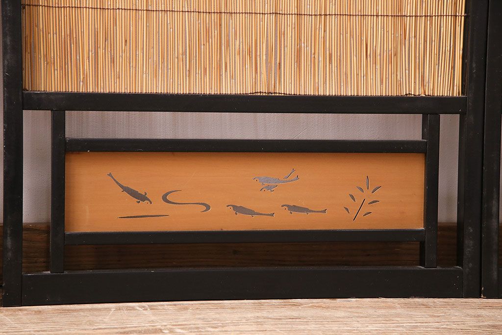 ビンテージ建具 上手物 漆塗り 泳ぐ鯉の透かしが風情漂う御簾戸4枚セット(簾戸、簀戸、葭戸、夏障子、夏戸、葦戸)(R-047612)