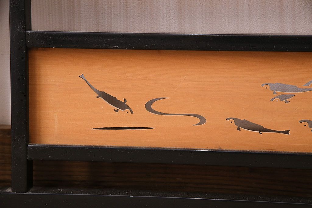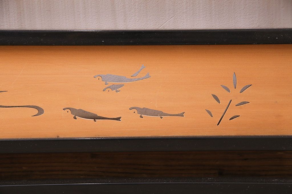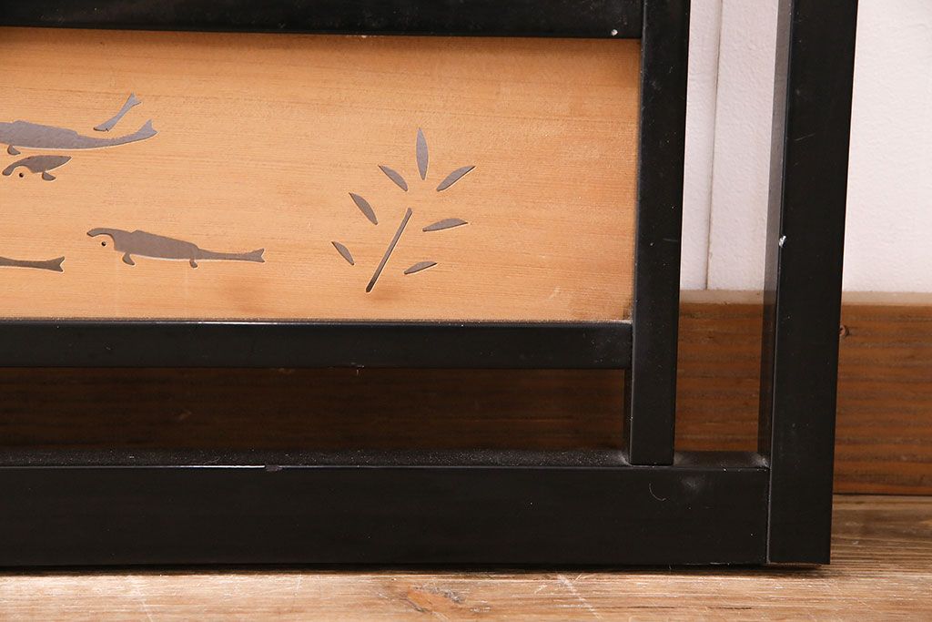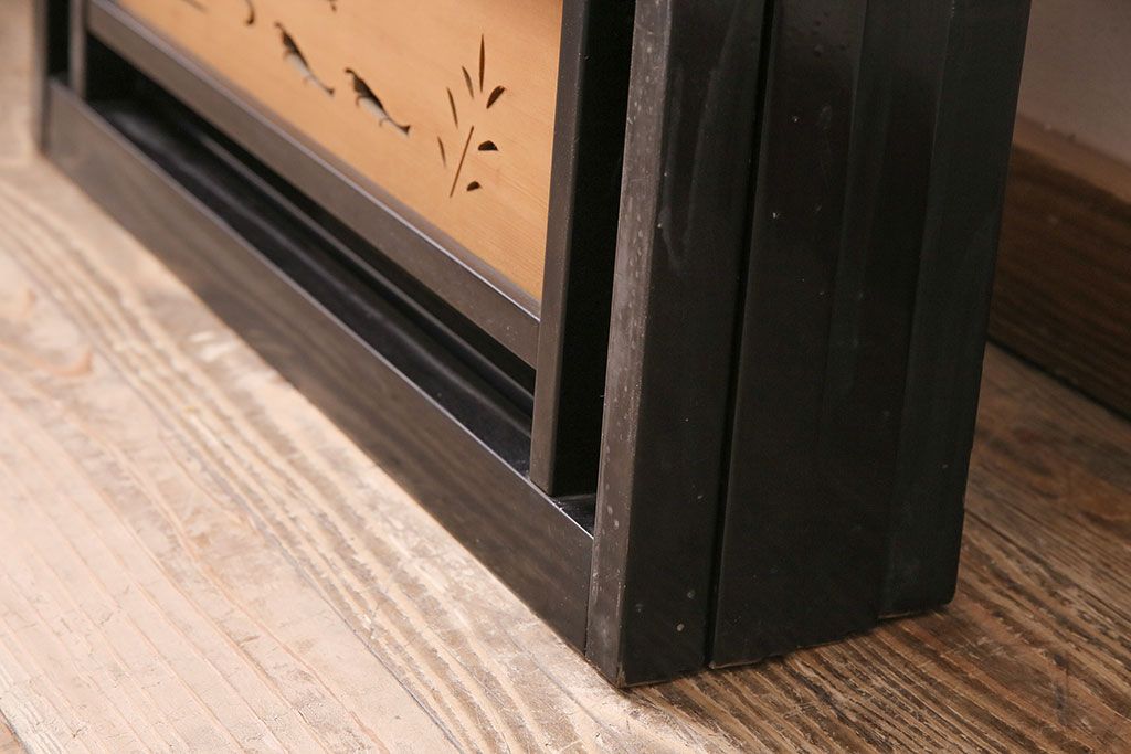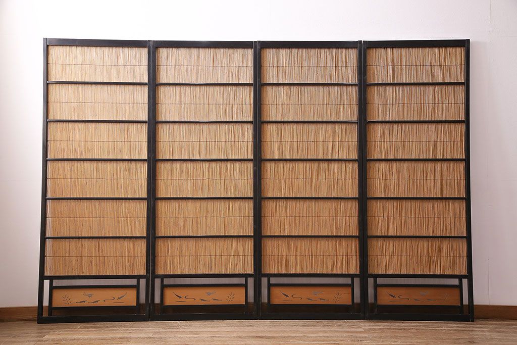 ビンテージ建具 上手物 漆塗り 泳ぐ鯉の透かしが風情漂う御簾戸4枚セット(簾戸、簀戸、葭戸、夏障子、夏戸、葦戸)(R-047612)