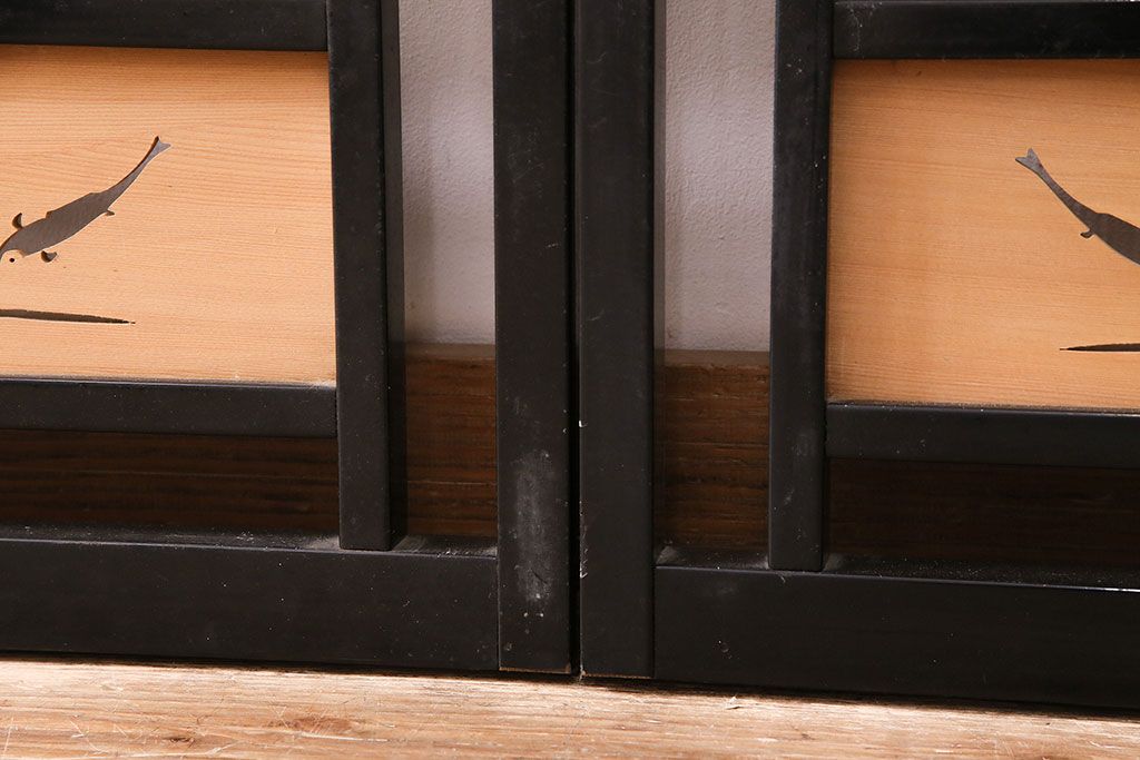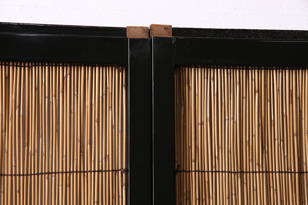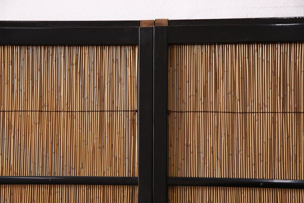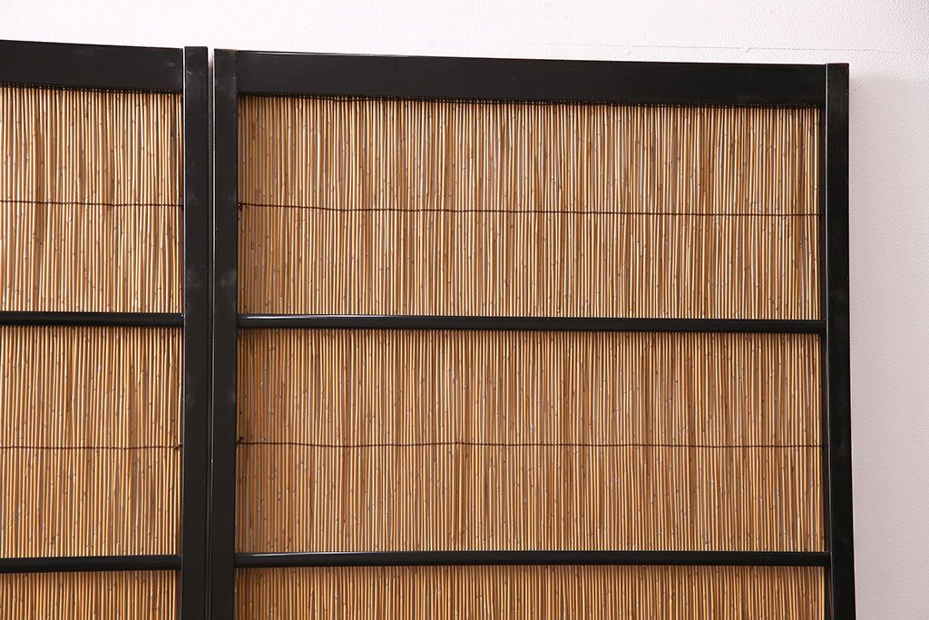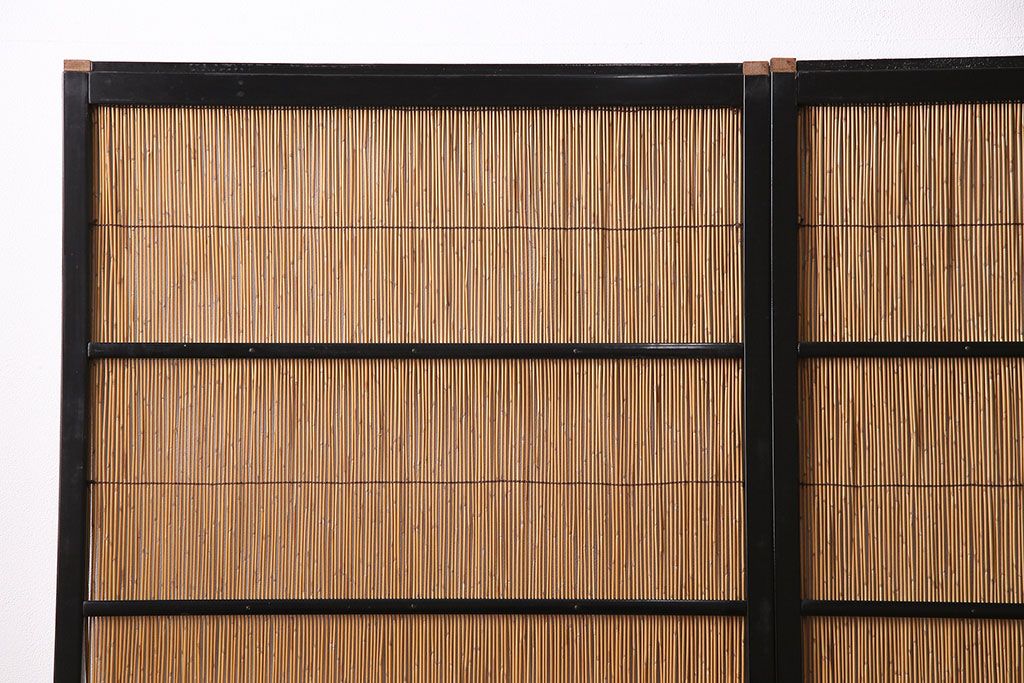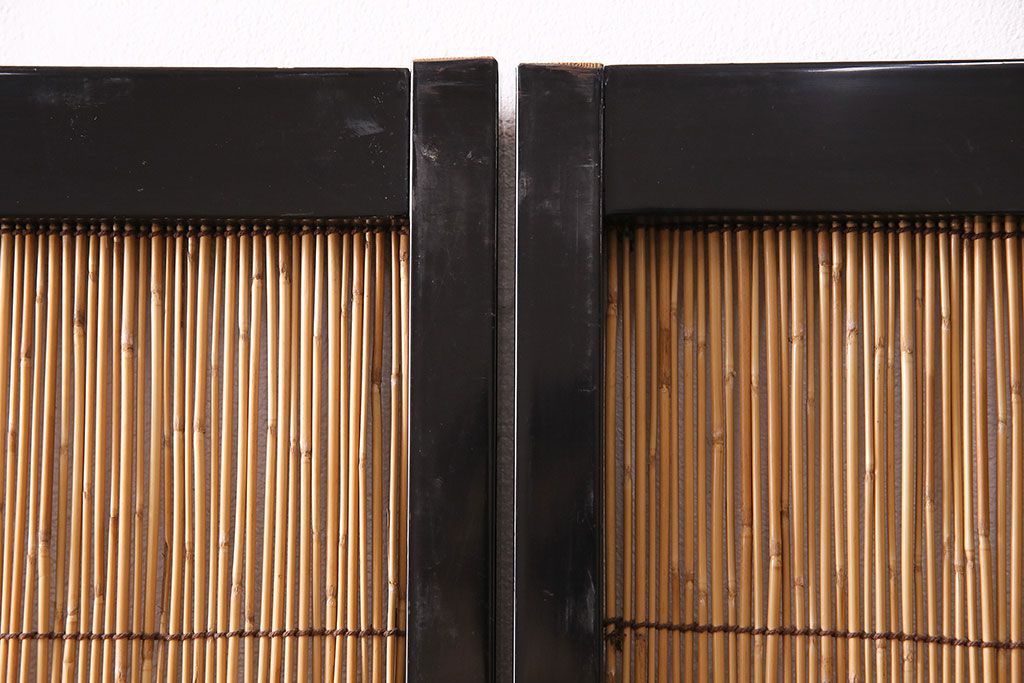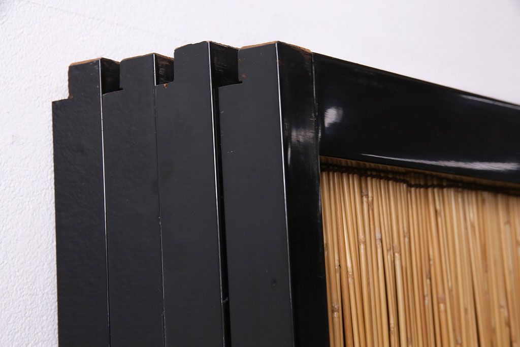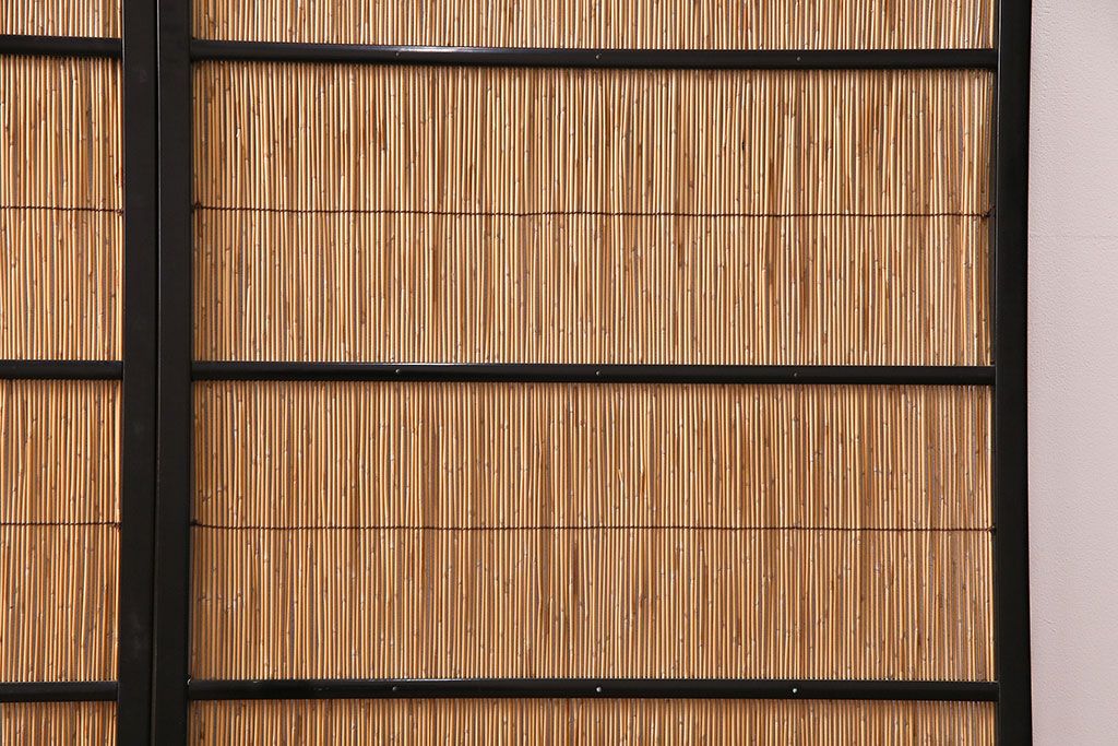 ドア・建具> 引き戸 > ビンテージ建具 上手物 漆塗り 泳ぐ鯉の透かしが風情漂う御簾戸4枚セット(簾戸、簀戸、葭戸、夏障子、夏戸、葦戸)(R-047612)