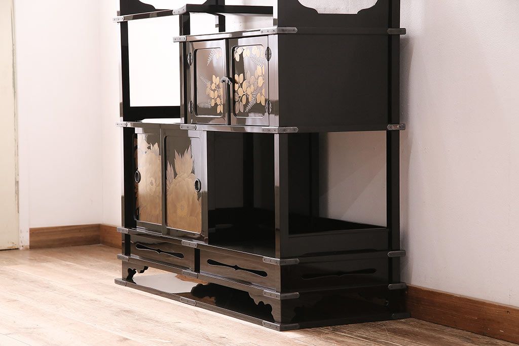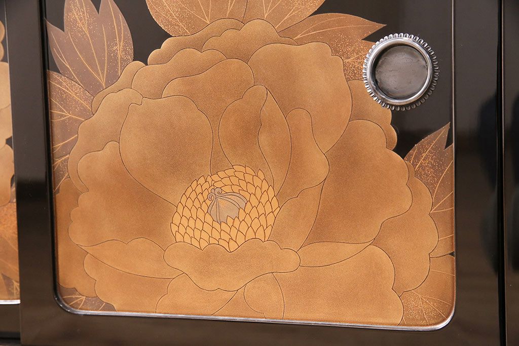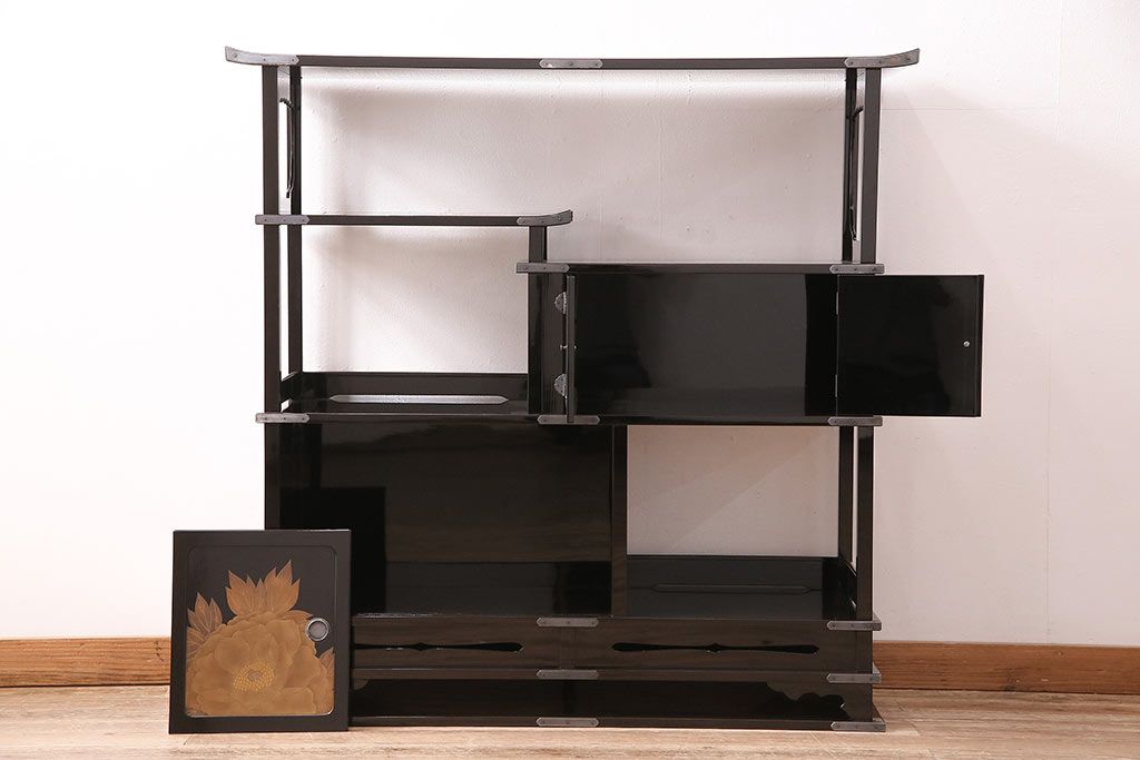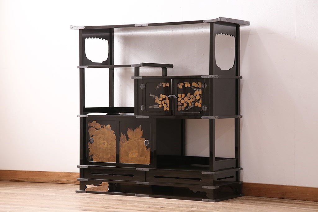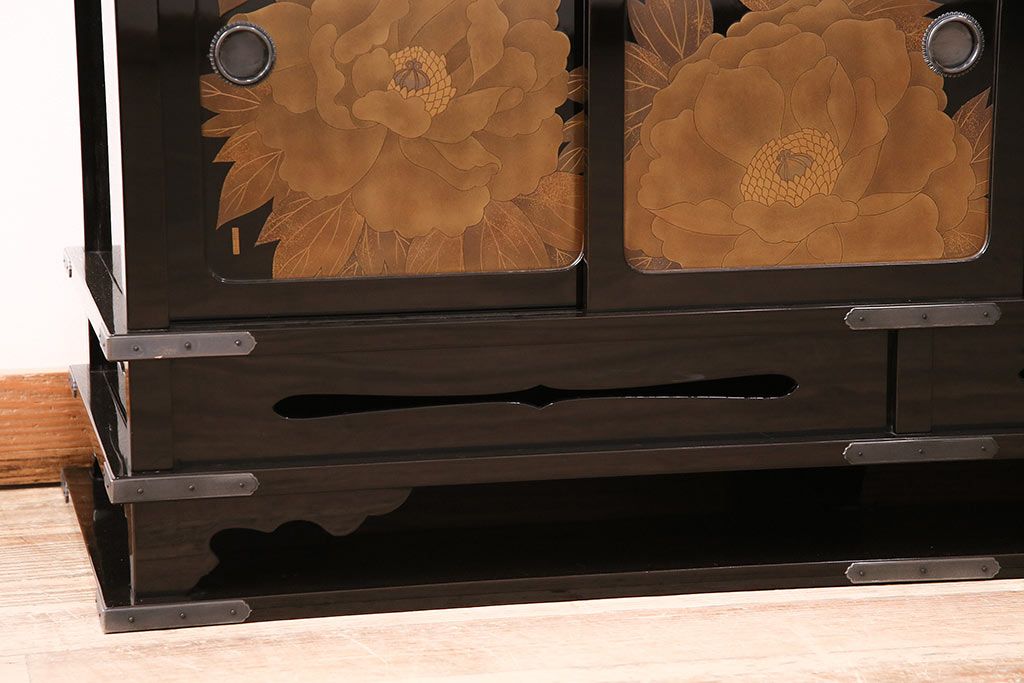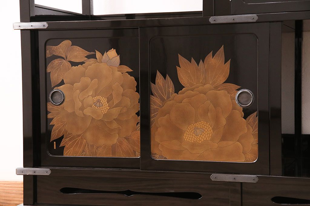 和箪笥> 茶箪笥・茶棚 > 中古 民芸家具 輪島塗 井波唯志作 萩に牡丹 金銀蒔絵 和の風情漂う上質な飾り棚(定価約600万円以上)(茶棚、戸棚、収納棚)(R-047902)