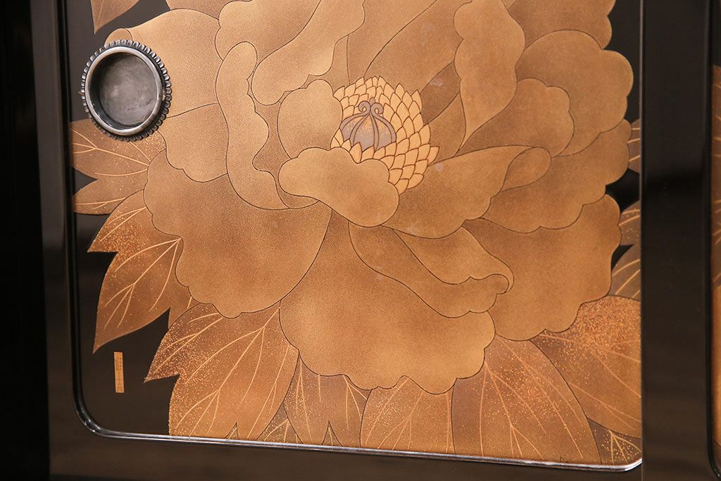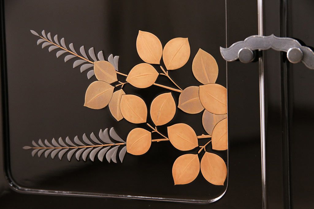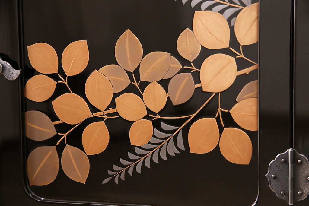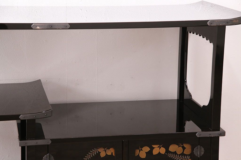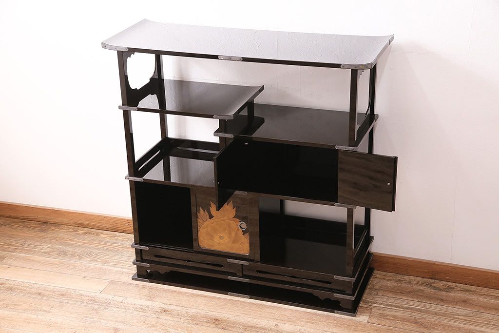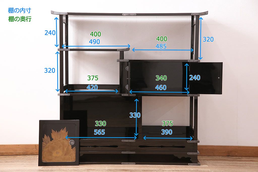 和箪笥> 茶箪笥・茶棚 > 中古 民芸家具 輪島塗 井波唯志作 萩に牡丹 金銀蒔絵 和の風情漂う上質な飾り棚(定価約600万円以上)(茶棚、戸棚、収納棚)(R-047902)