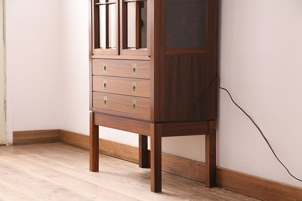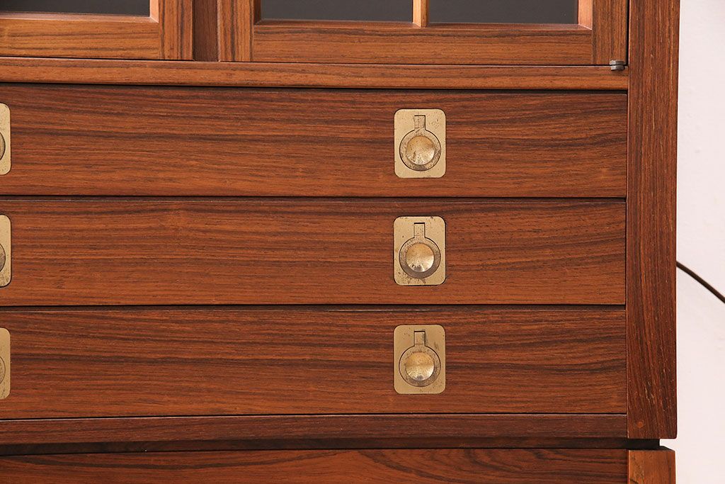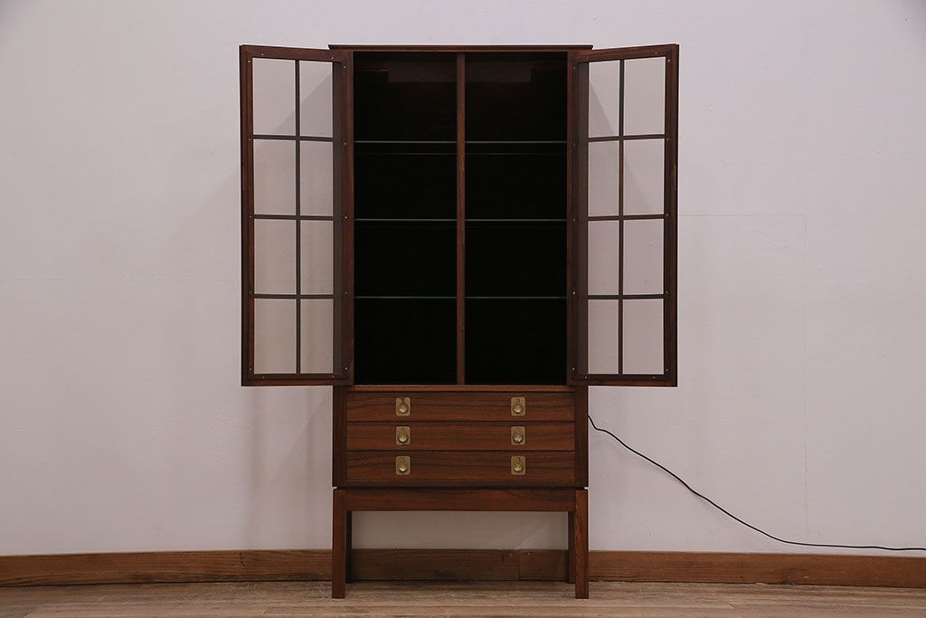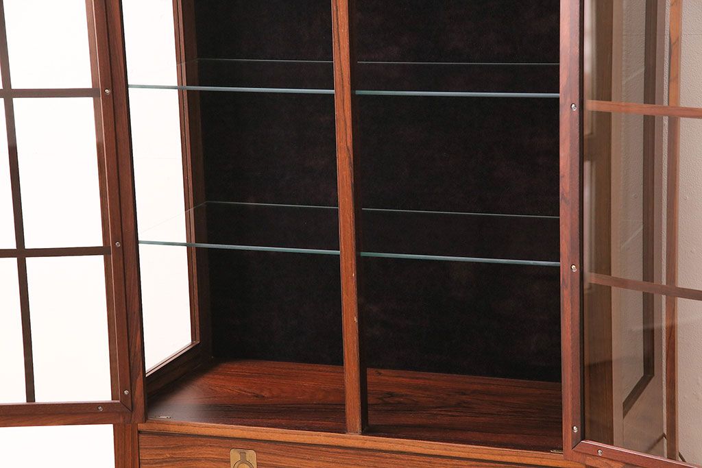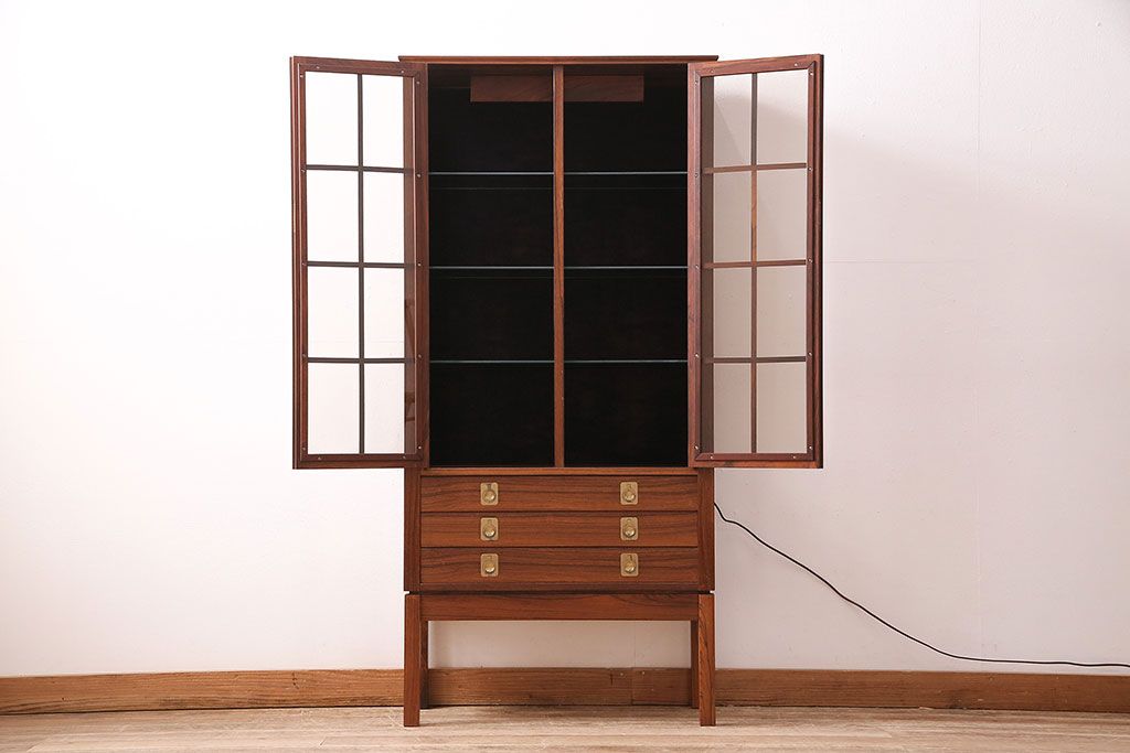 北欧ビンテージ ノルウェー製 BRUKSBO(ブルクスボ) ローズウッド材の美しい木肌が高級感を高める照明付きのキャビネット(食器棚、収納棚)(R-047982)です。