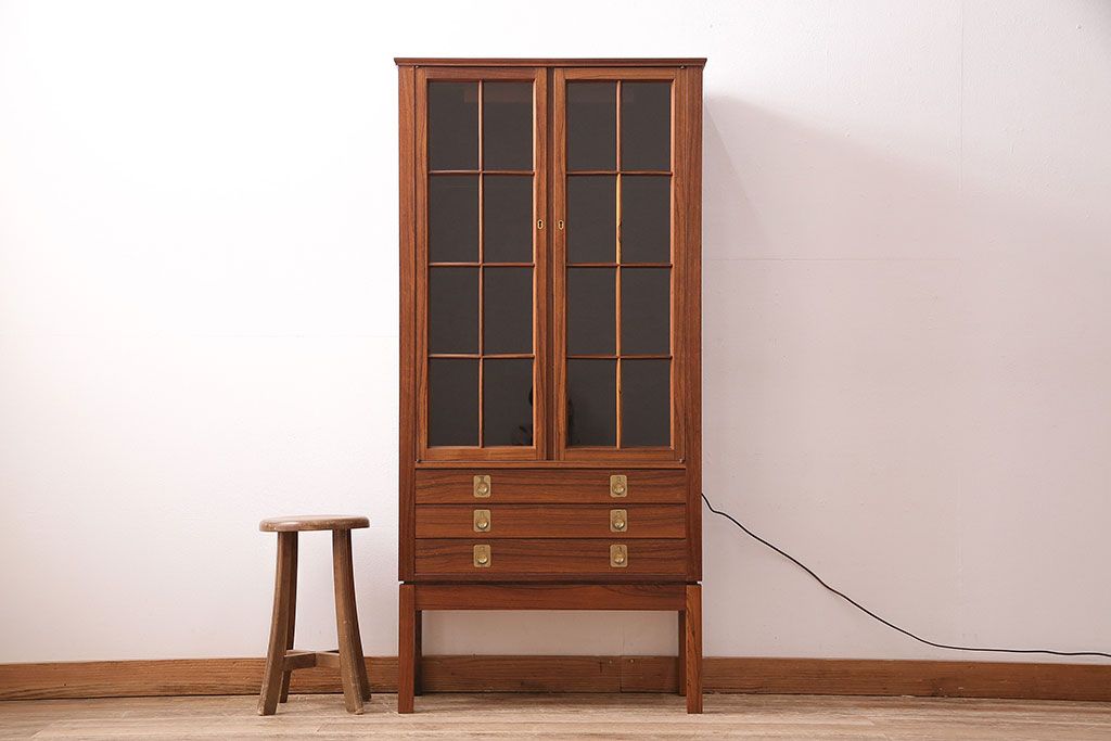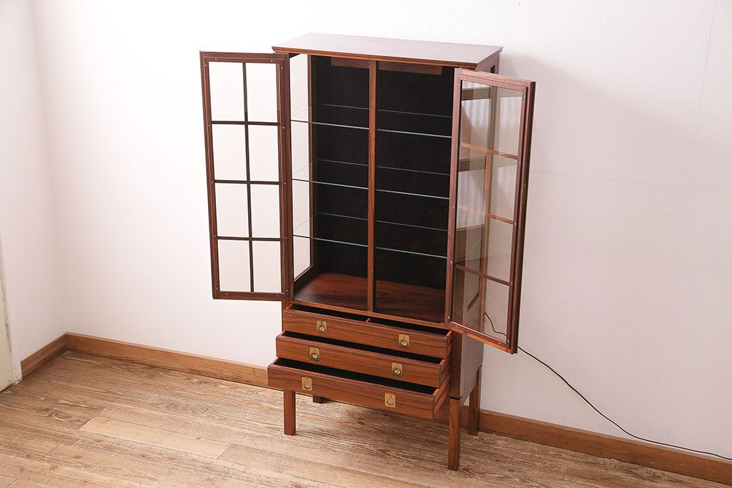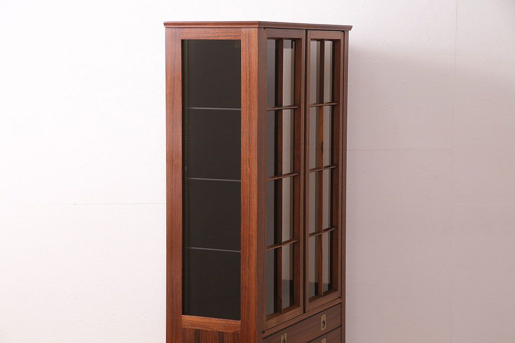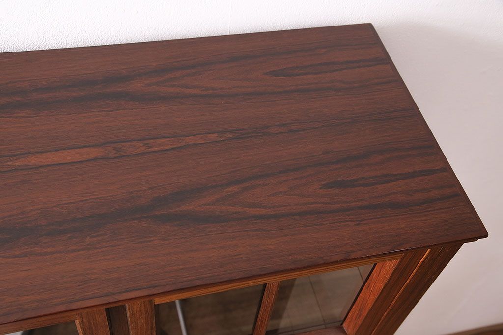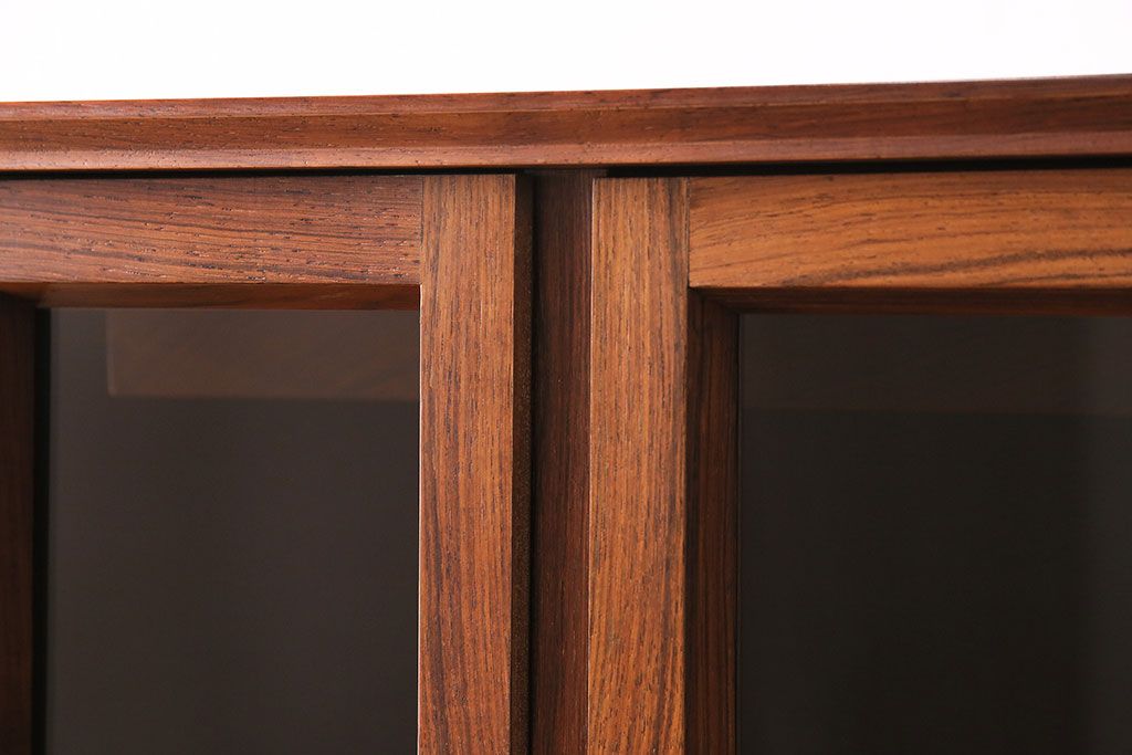 北欧ビンテージ ノルウェー製 BRUKSBO(ブルクスボ) ローズウッド材の美しい木肌が高級感を高める照明付きのキャビネット(食器棚、収納棚)(R-047982)です。