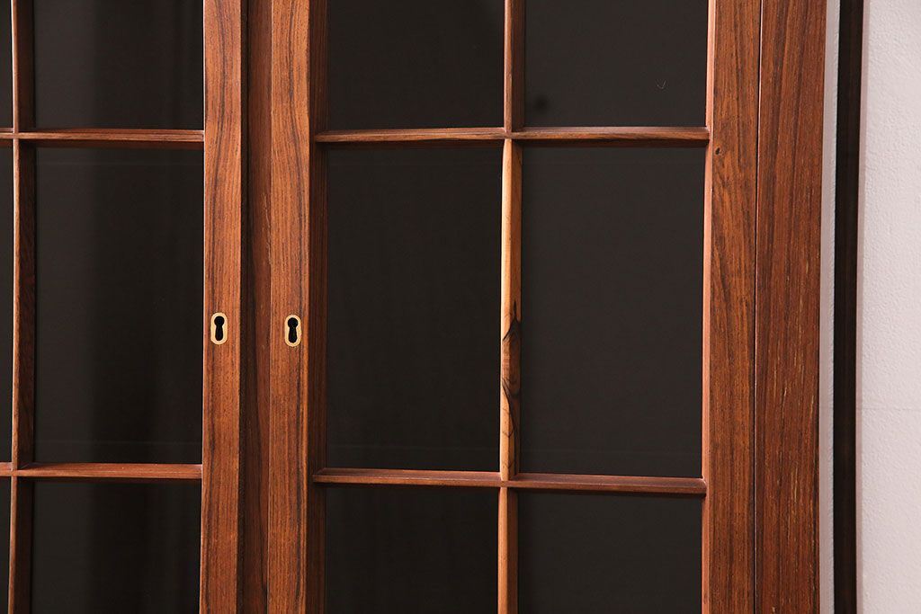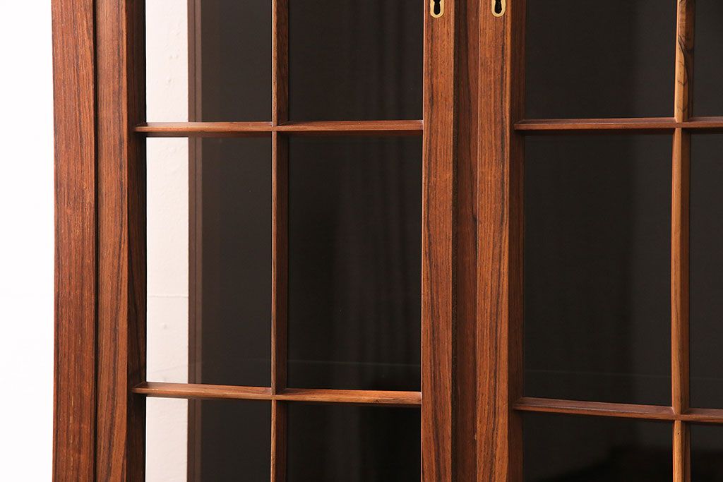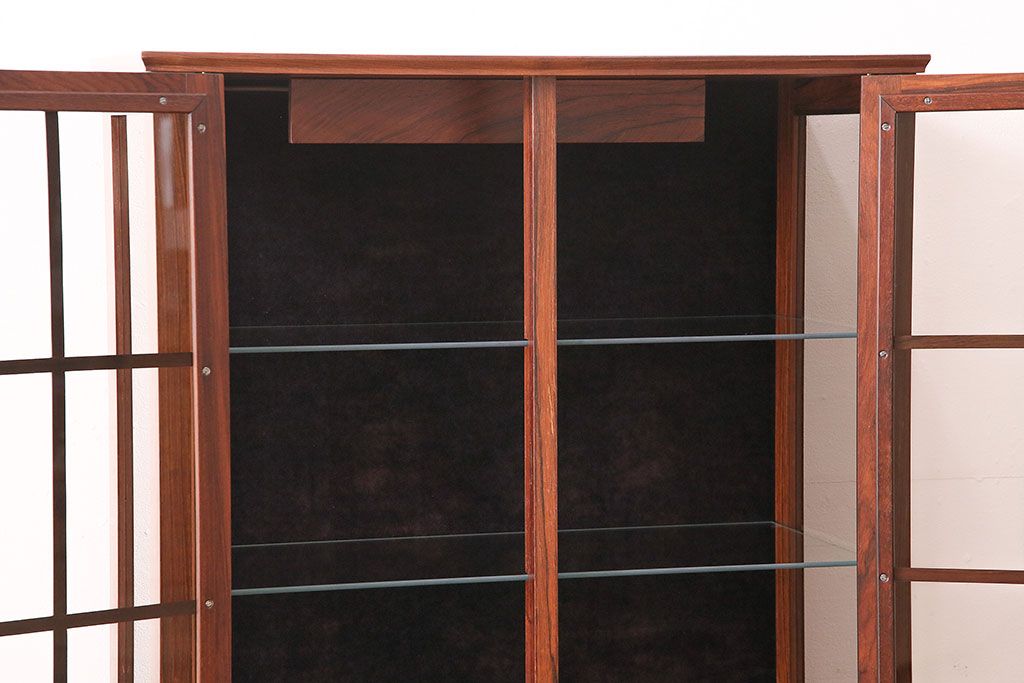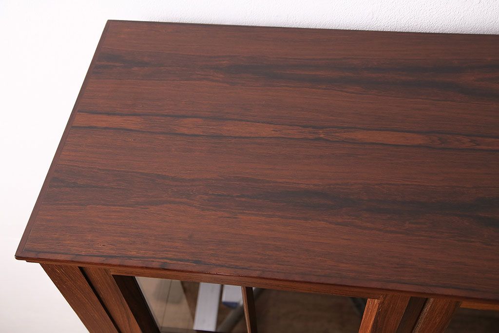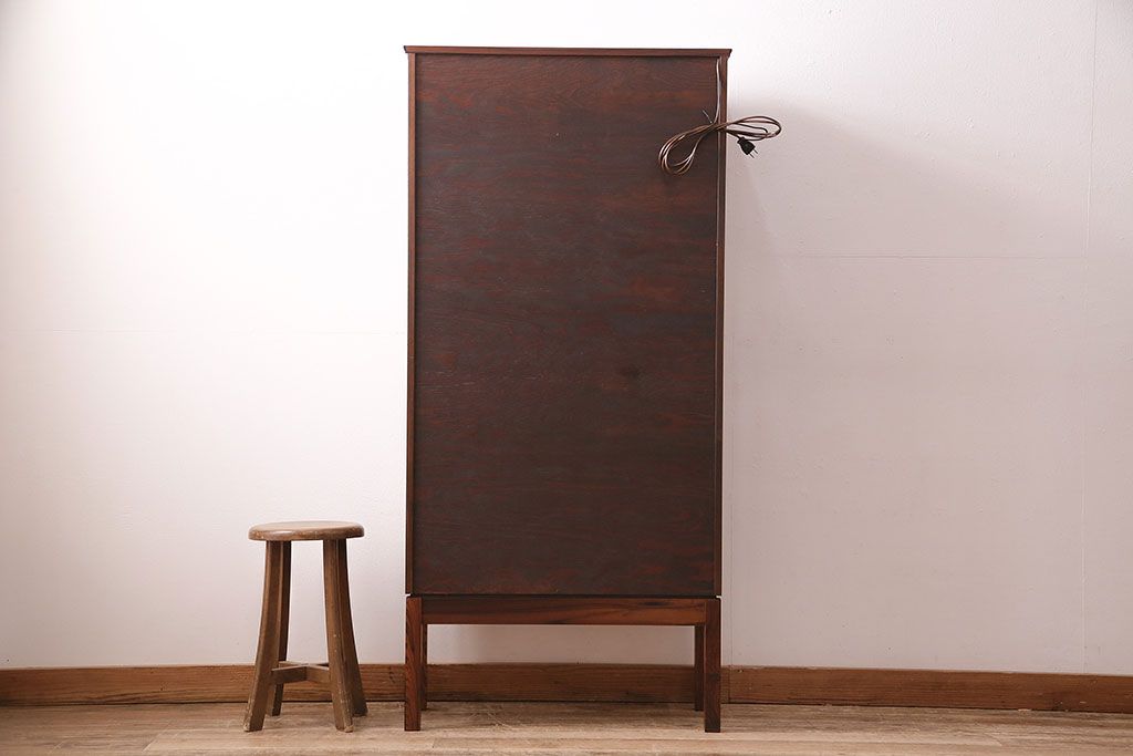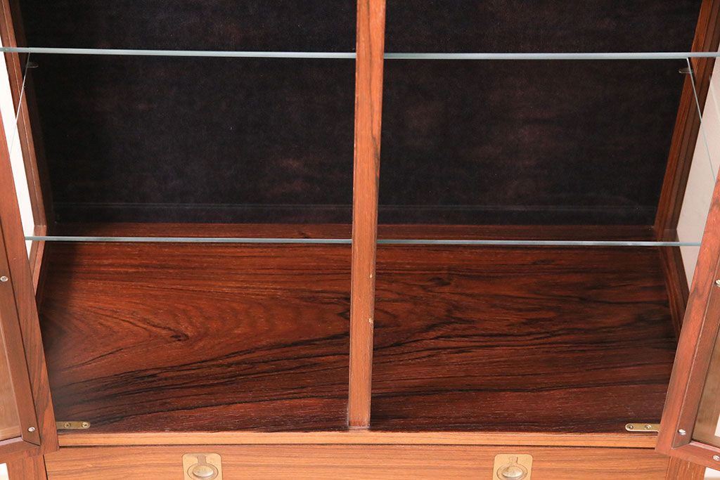 北欧ビンテージ ノルウェー製 BRUKSBO(ブルクスボ) ローズウッド材の美しい木肌が高級感を高める照明付きのキャビネット(食器棚、収納棚)(R-047982)