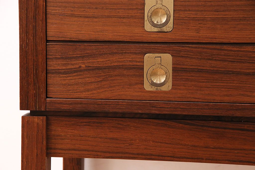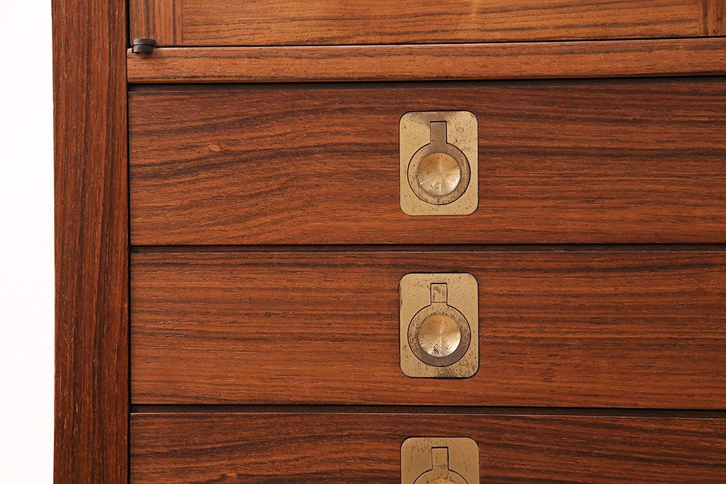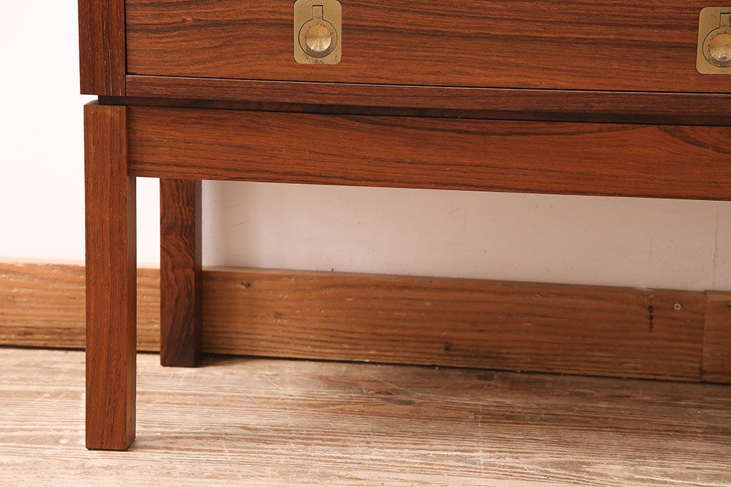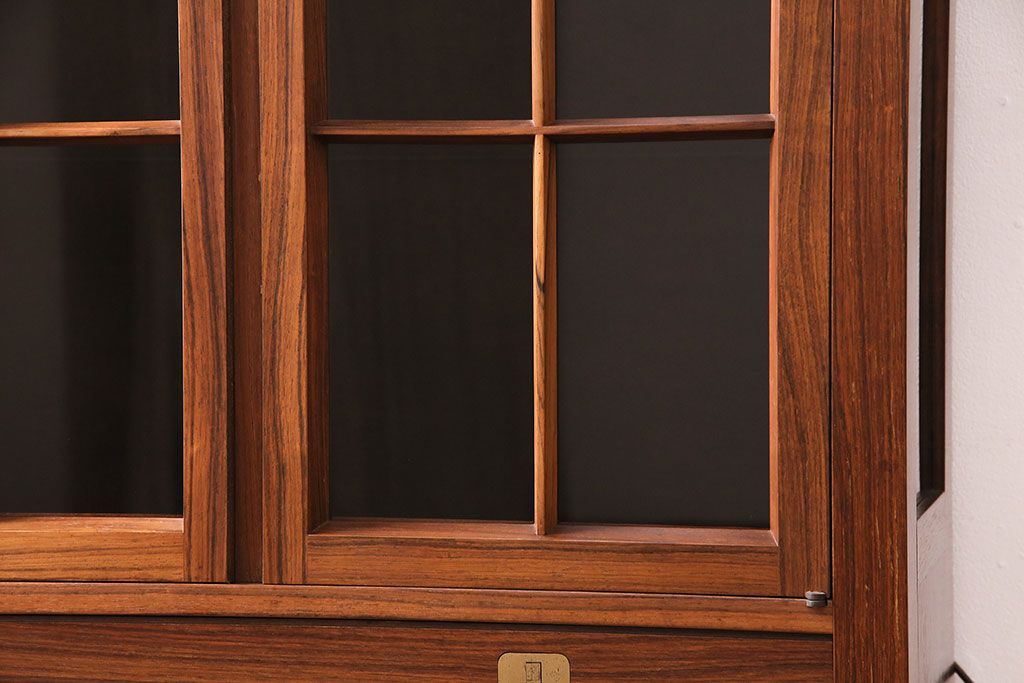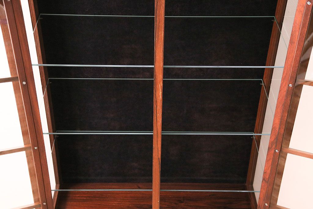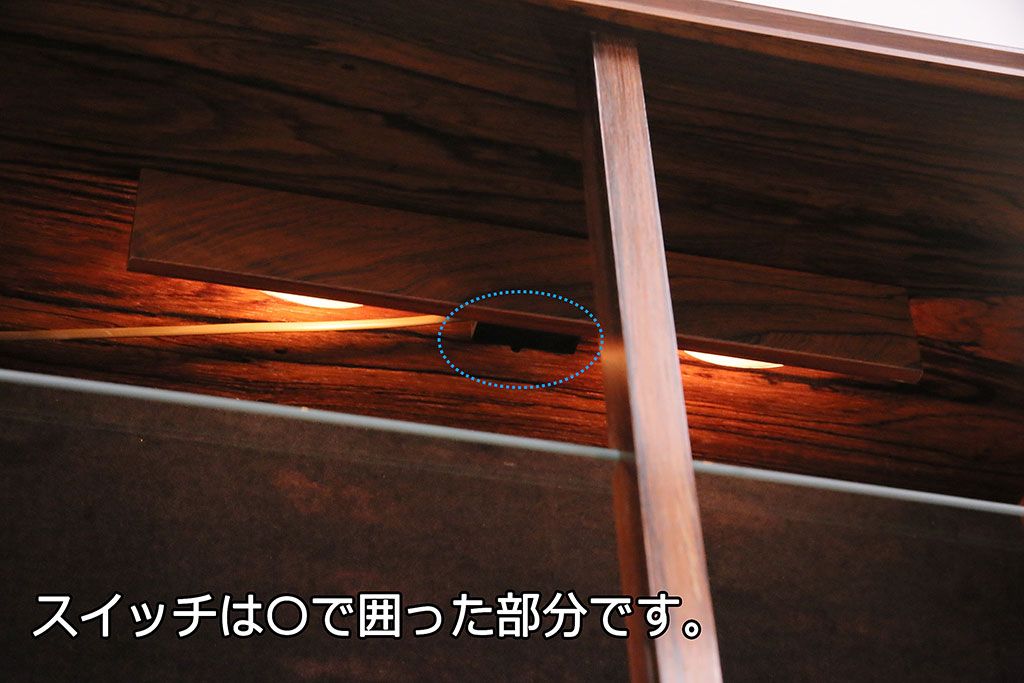 北欧ビンテージ ノルウェー製 BRUKSBO(ブルクスボ) ローズウッド材の美しい木肌が高級感を高める照明付きのキャビネット(食器棚、収納棚)(R-047982)