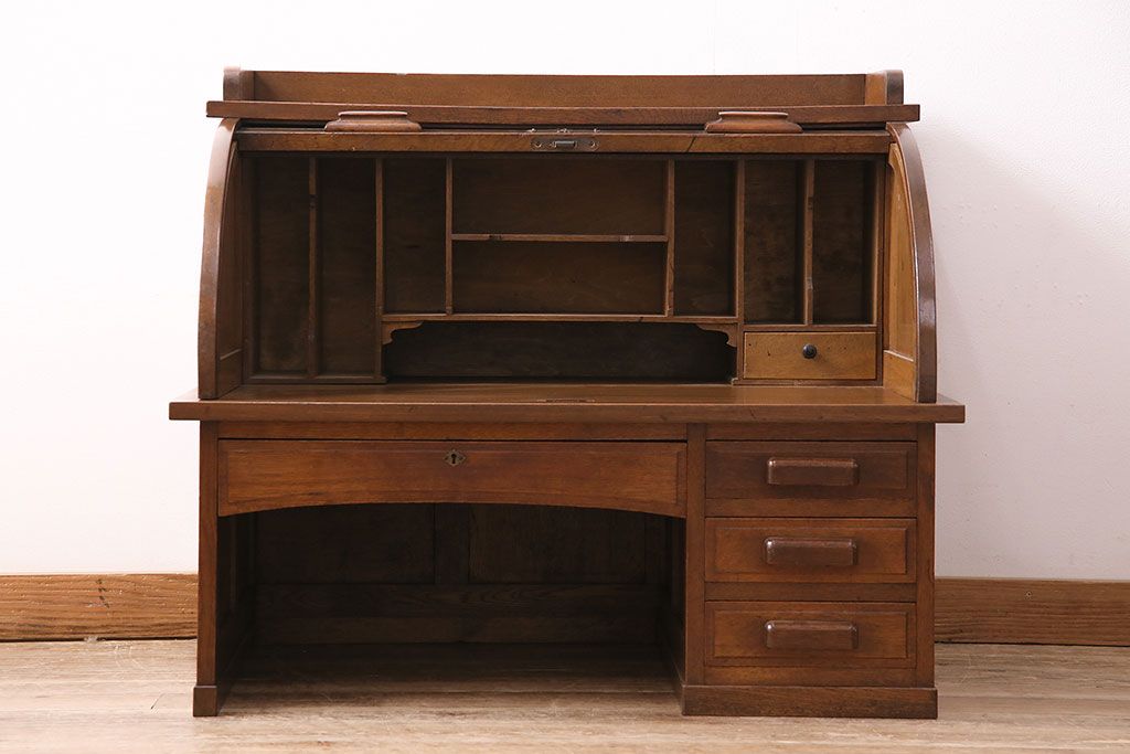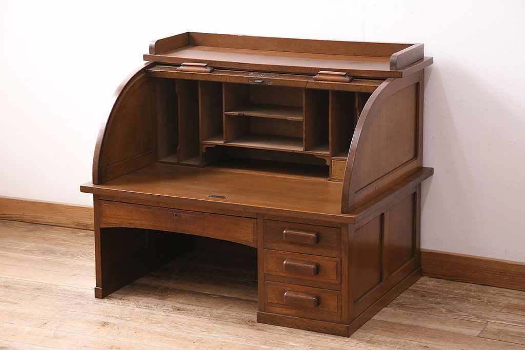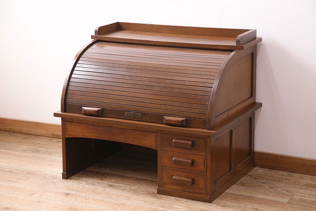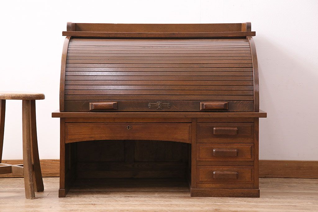 和製アンティーク ロータイプが珍しい、ナラ材製のロールトップデスク(片袖デスク、座卓、座机、ワークデスク)(R-047575)です。