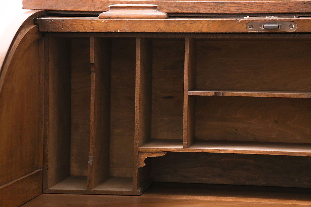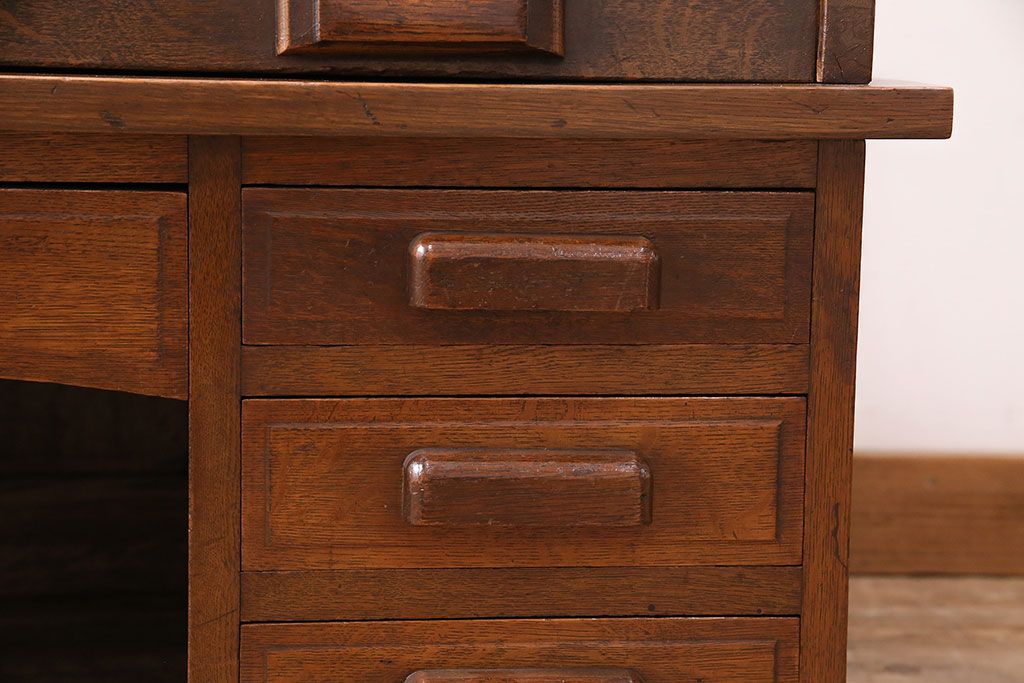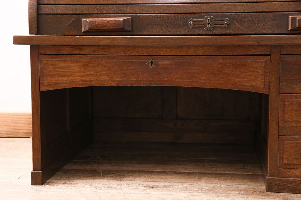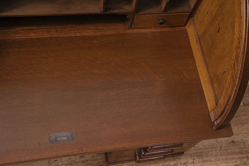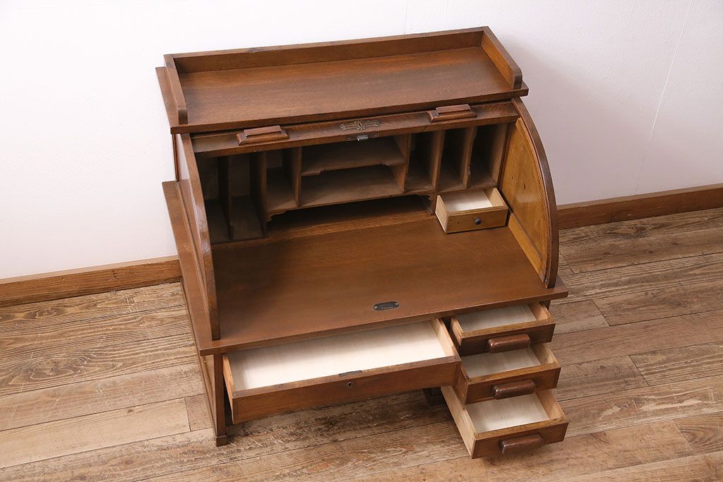 和製アンティーク ロータイプが珍しい、ナラ材製のロールトップデスク(片袖デスク、座卓、座机、ワークデスク)(R-047575)です。
