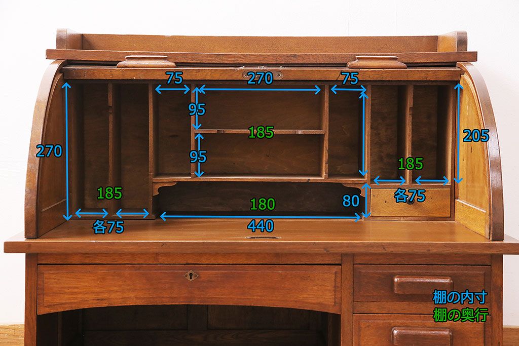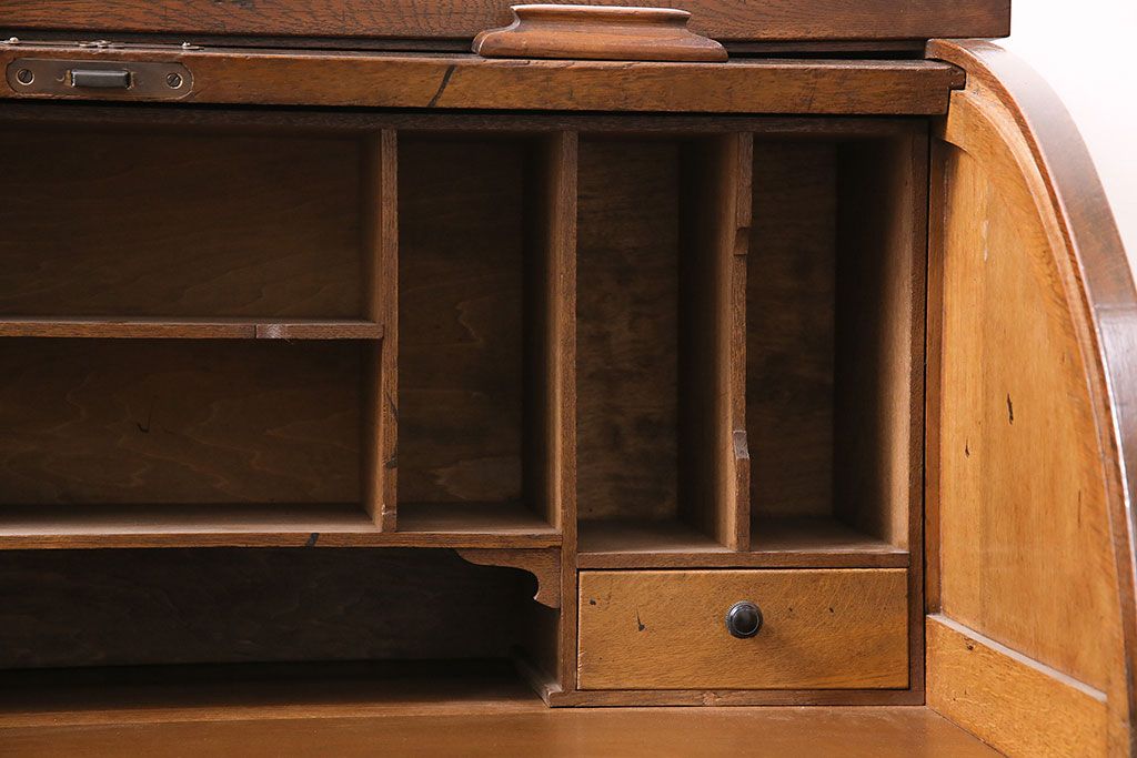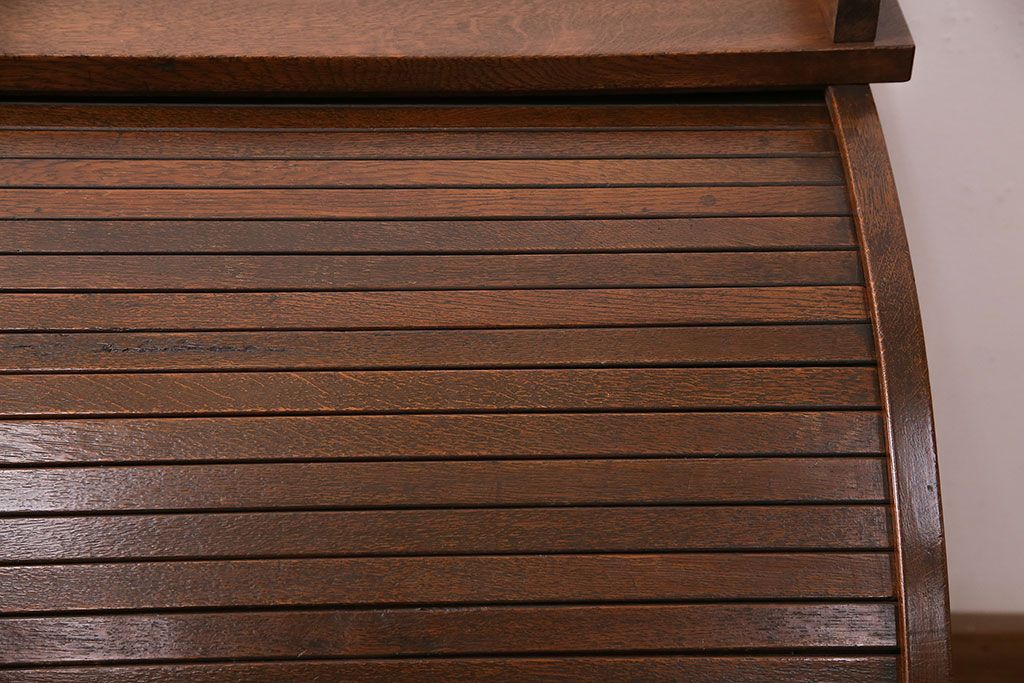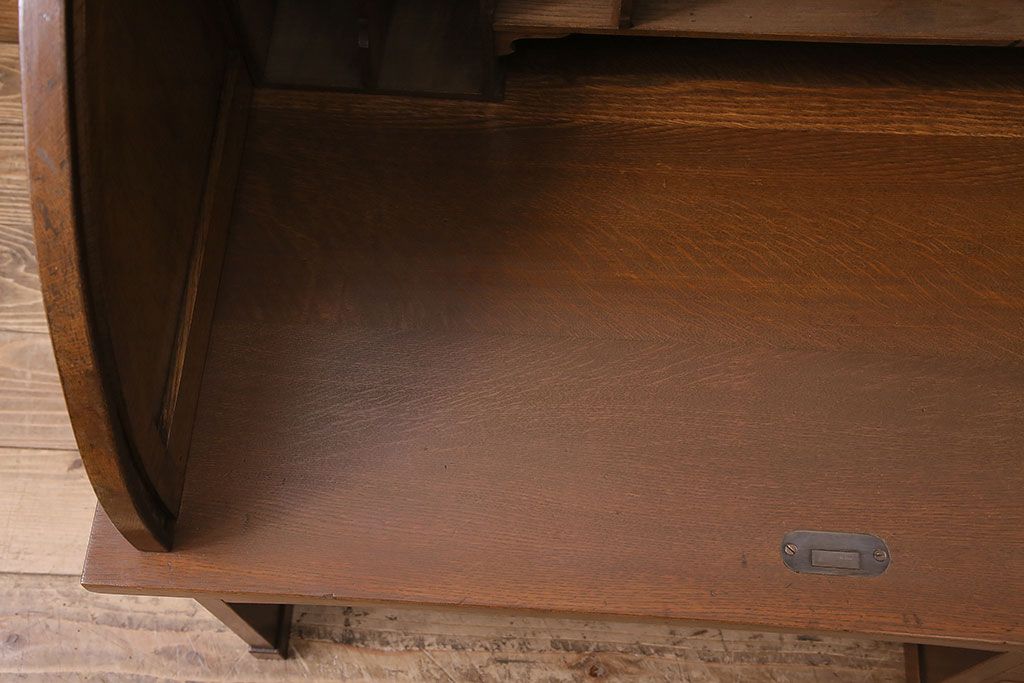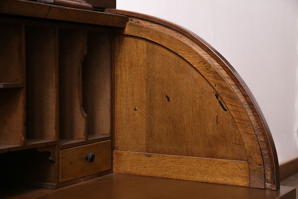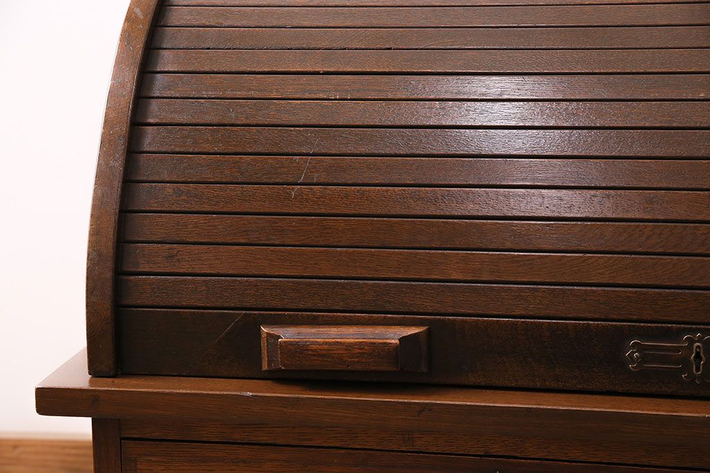 和製アンティーク ロータイプが珍しい、ナラ材製のロールトップデスク(片袖デスク、座卓、座机、在宅ワーク、在宅用ワークデスク)(R-047575)