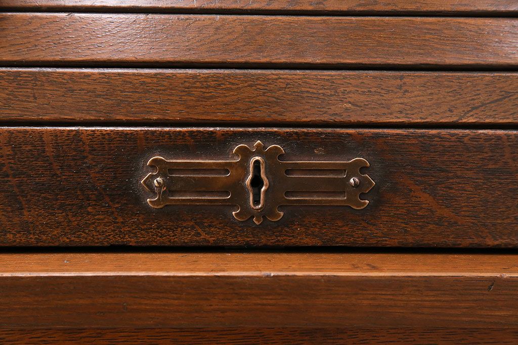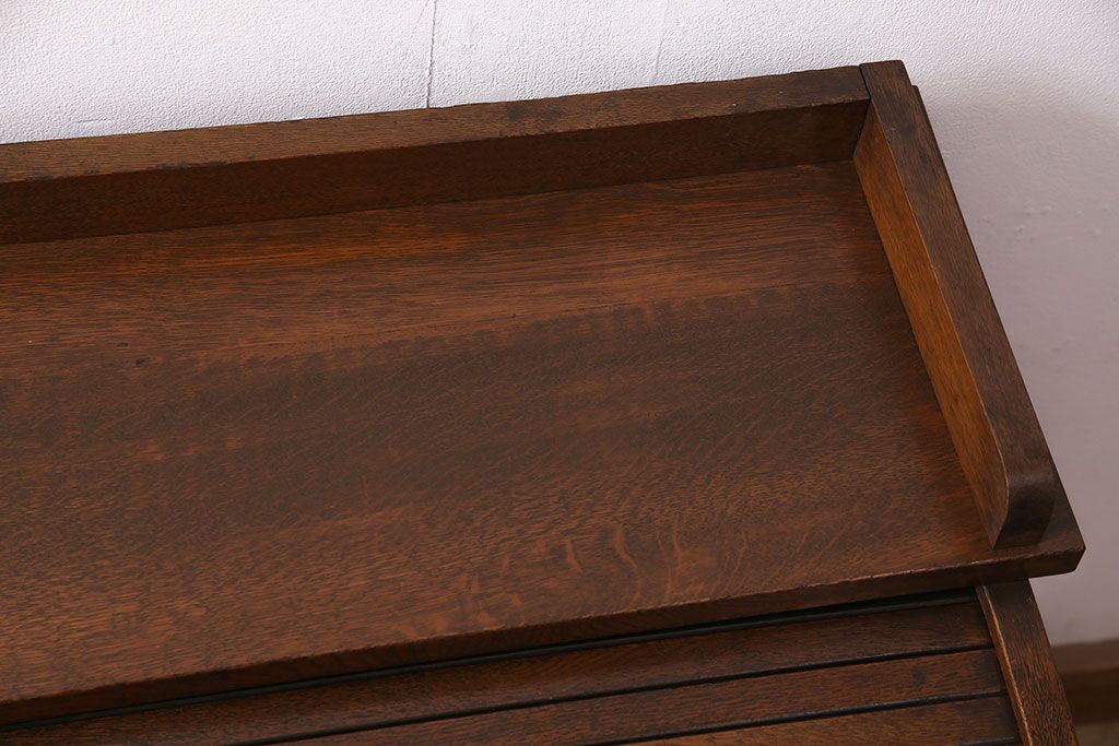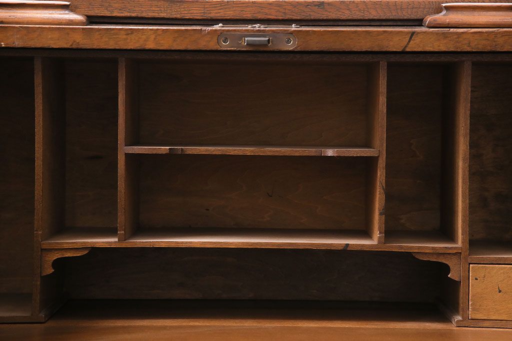デスク> 片袖机・両袖机 > 和製アンティーク ロータイプが珍しい、ナラ材製のロールトップデスク(片袖デスク、座卓、座机、在宅ワーク、在宅用ワークデスク)(R-047575)